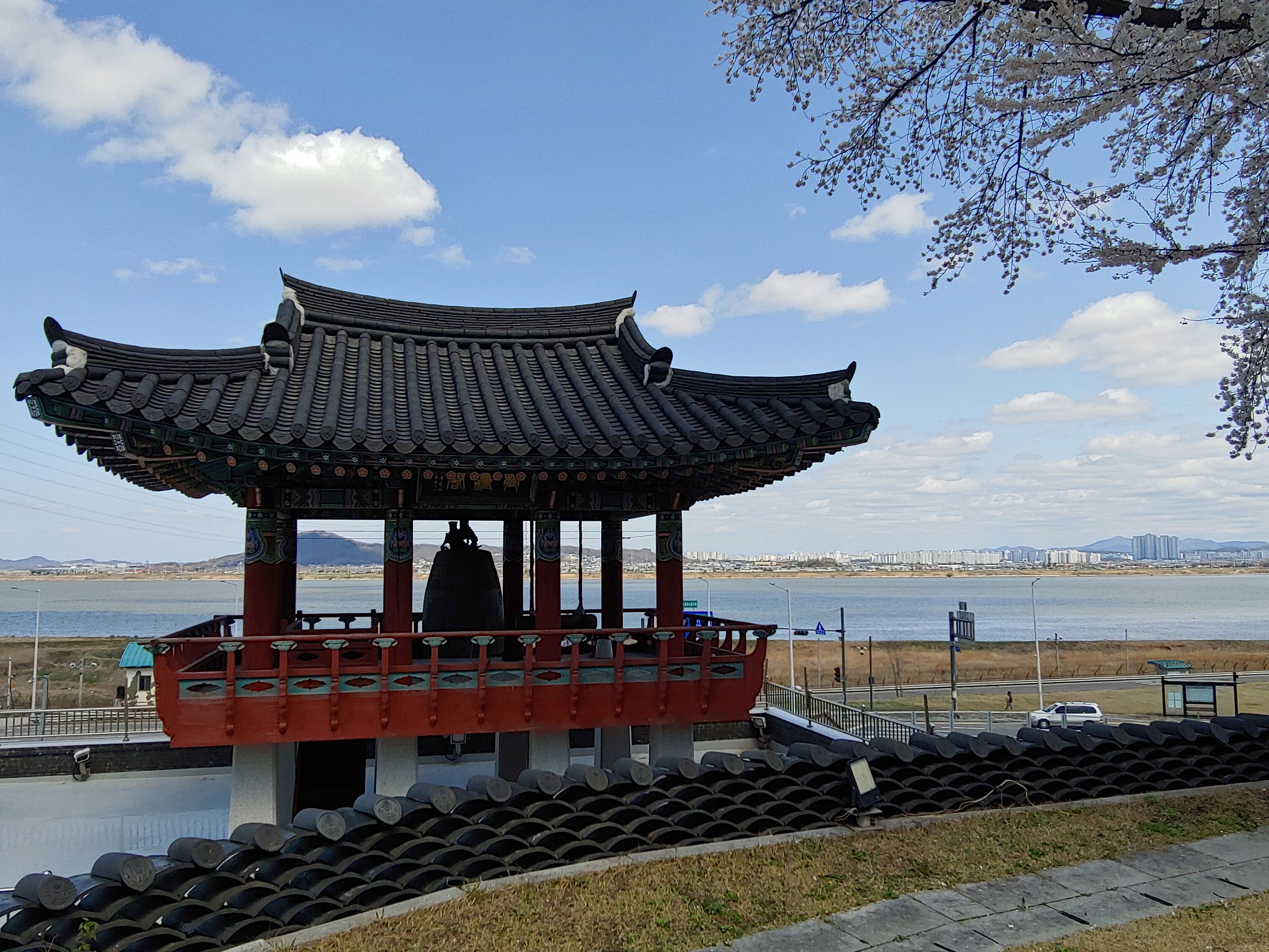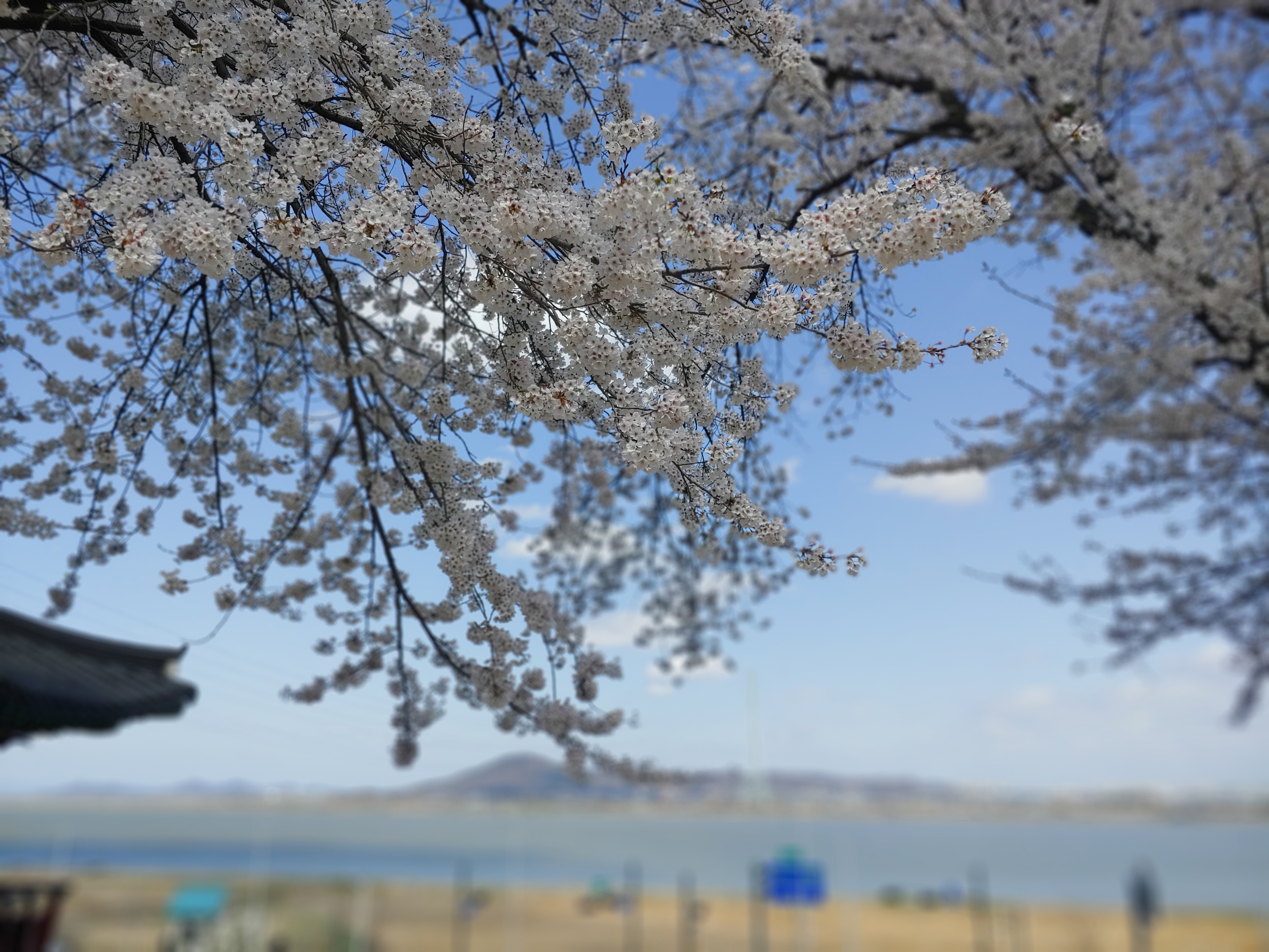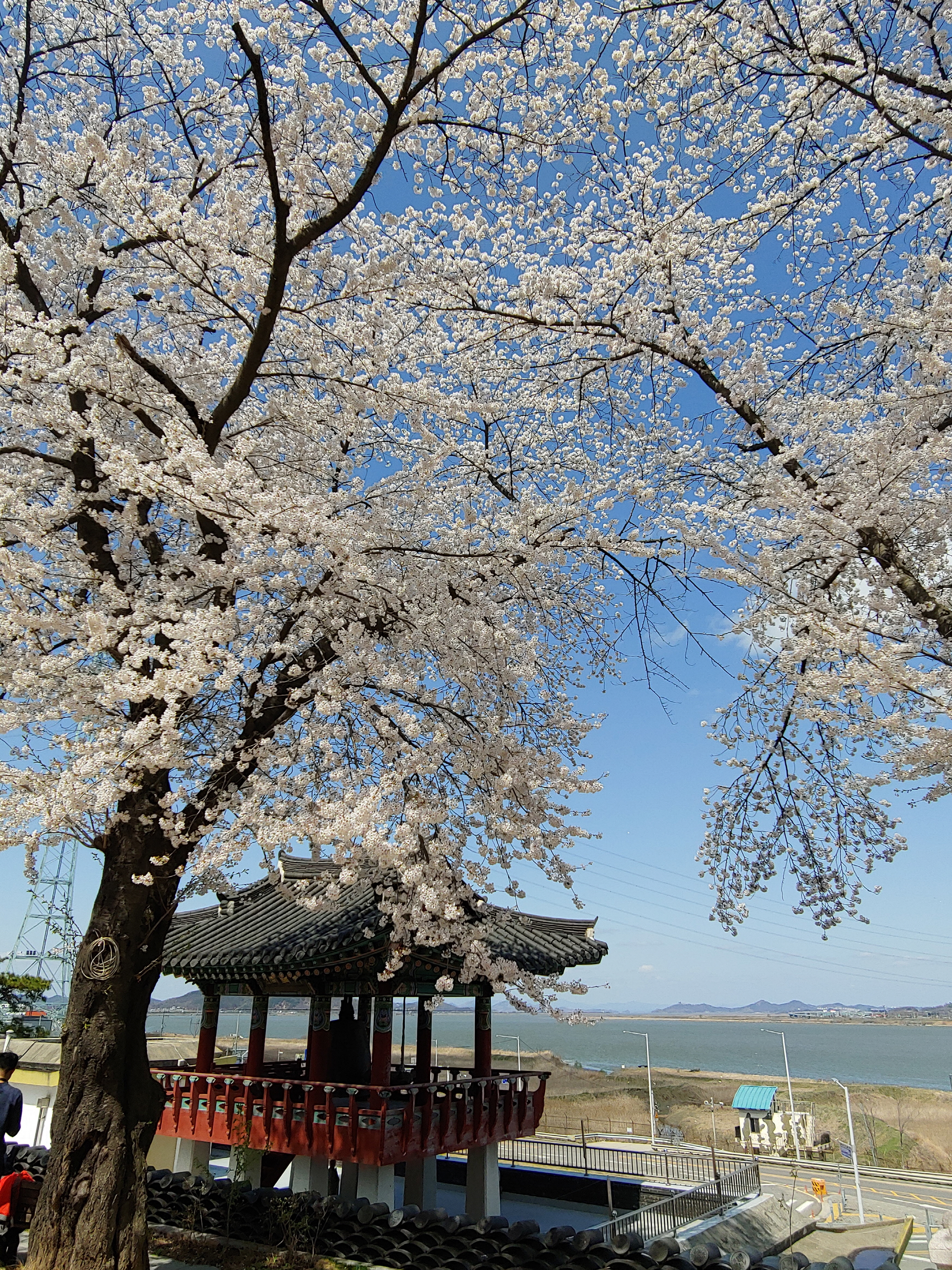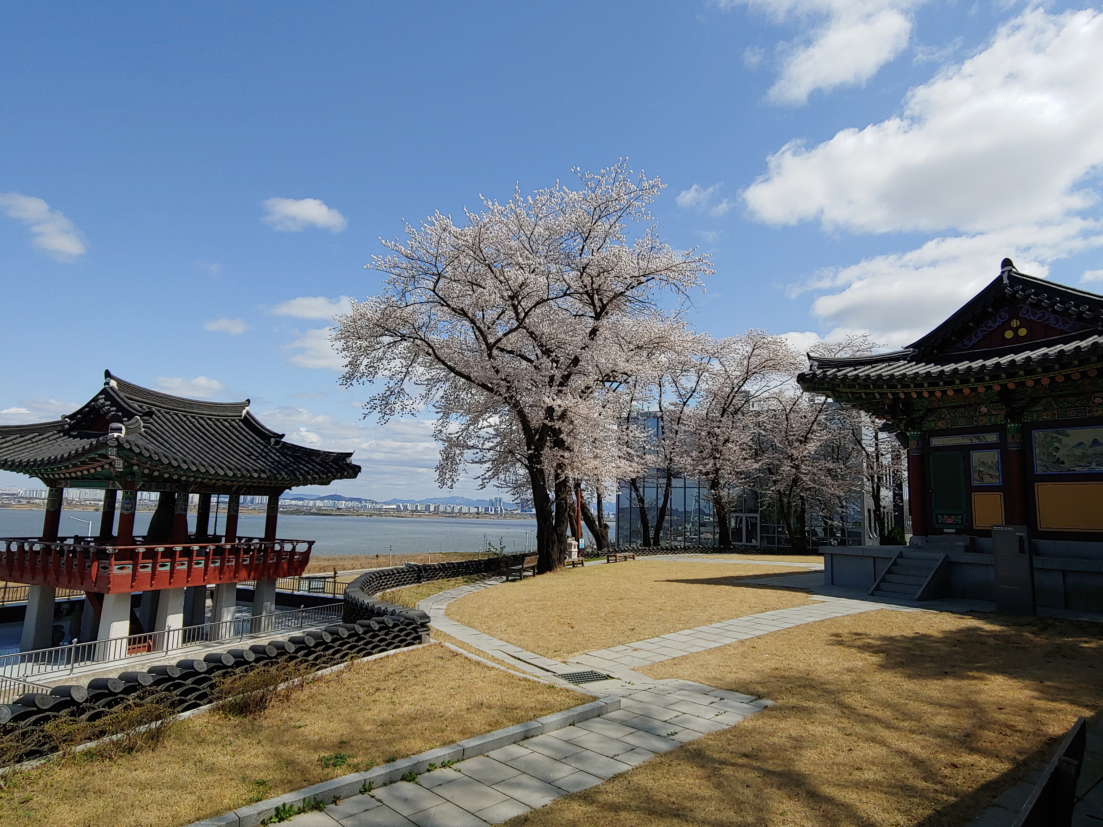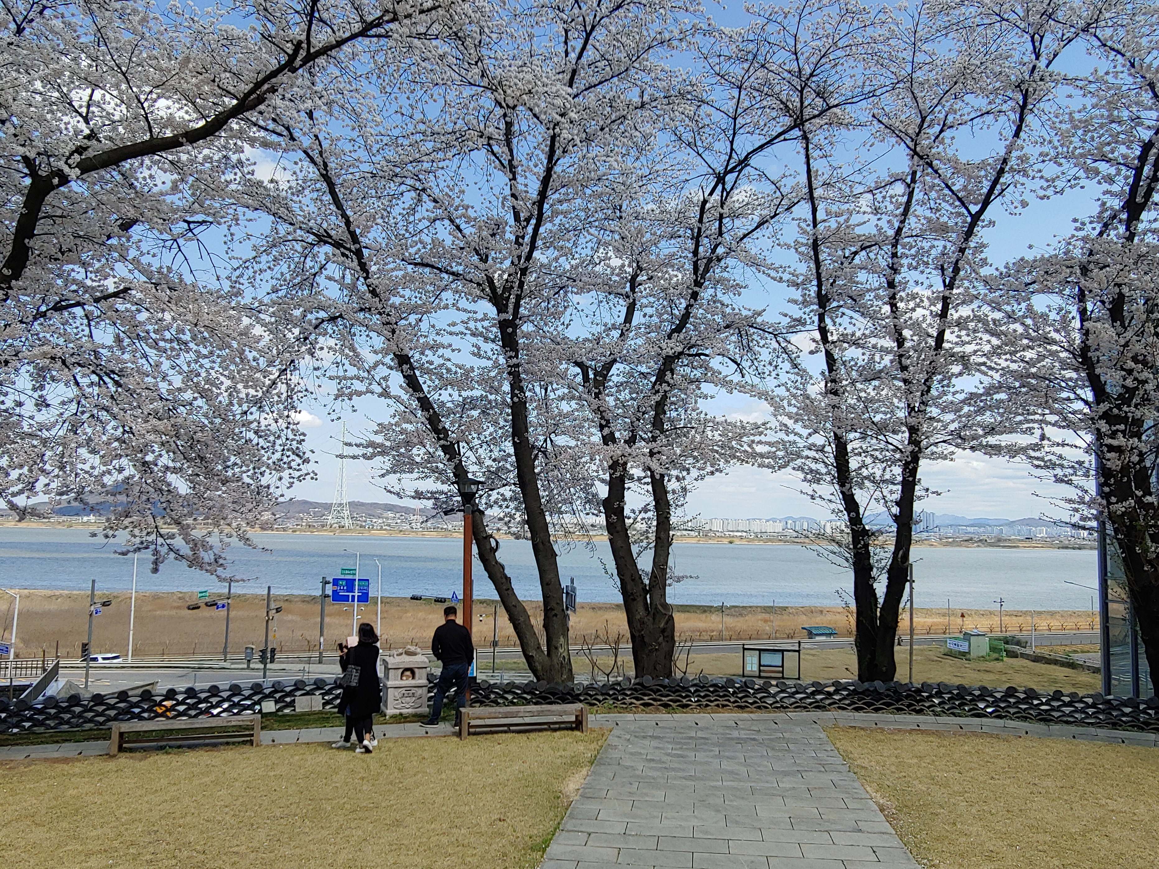 조선시대에 세워진 김포 용화사 사찰의 벚꽃과 한강전망을 담았습니다.