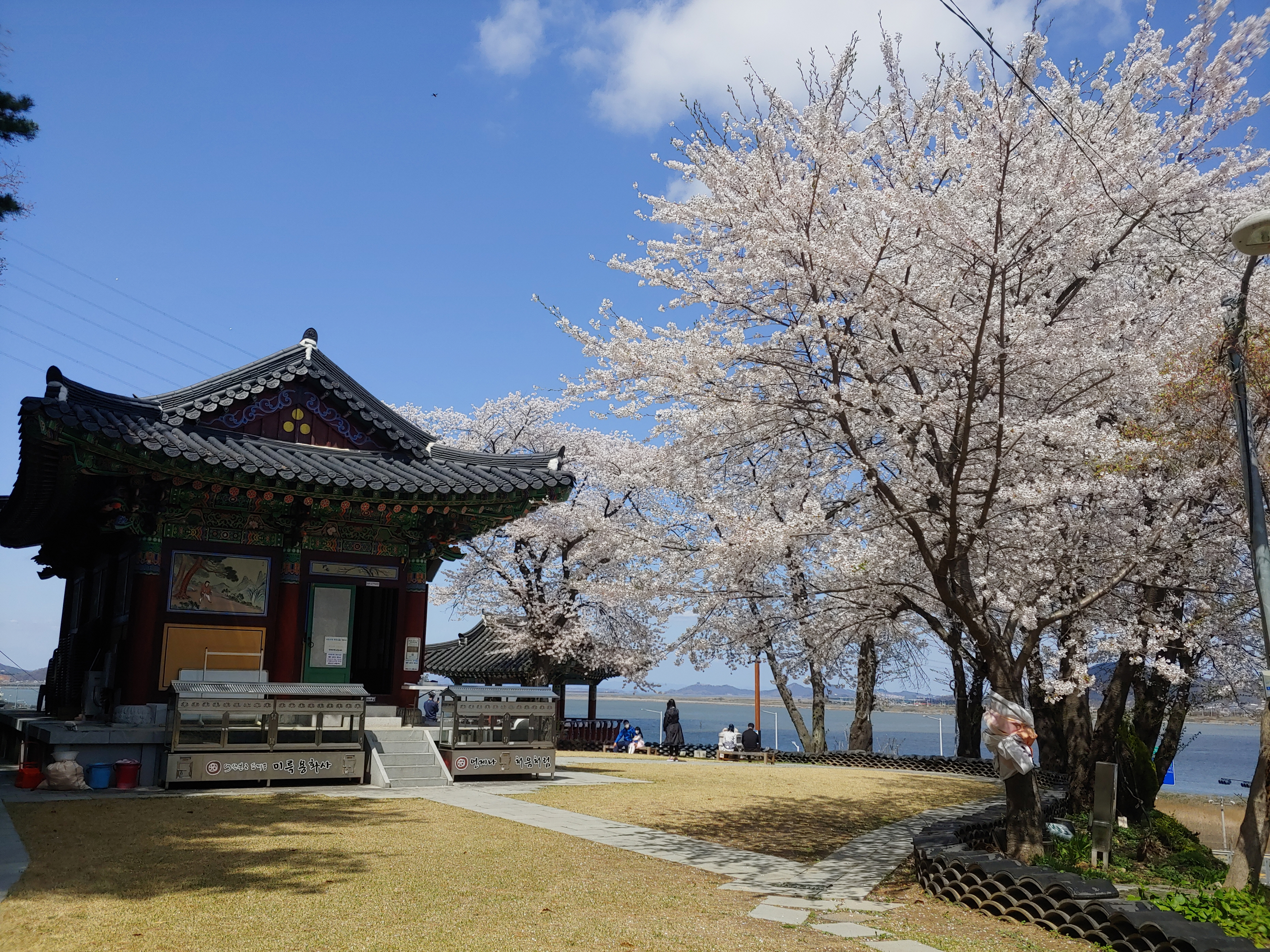 용화전과 앞마당엔 벚꽃이 예쁘게 만개를 한 상태입니다.