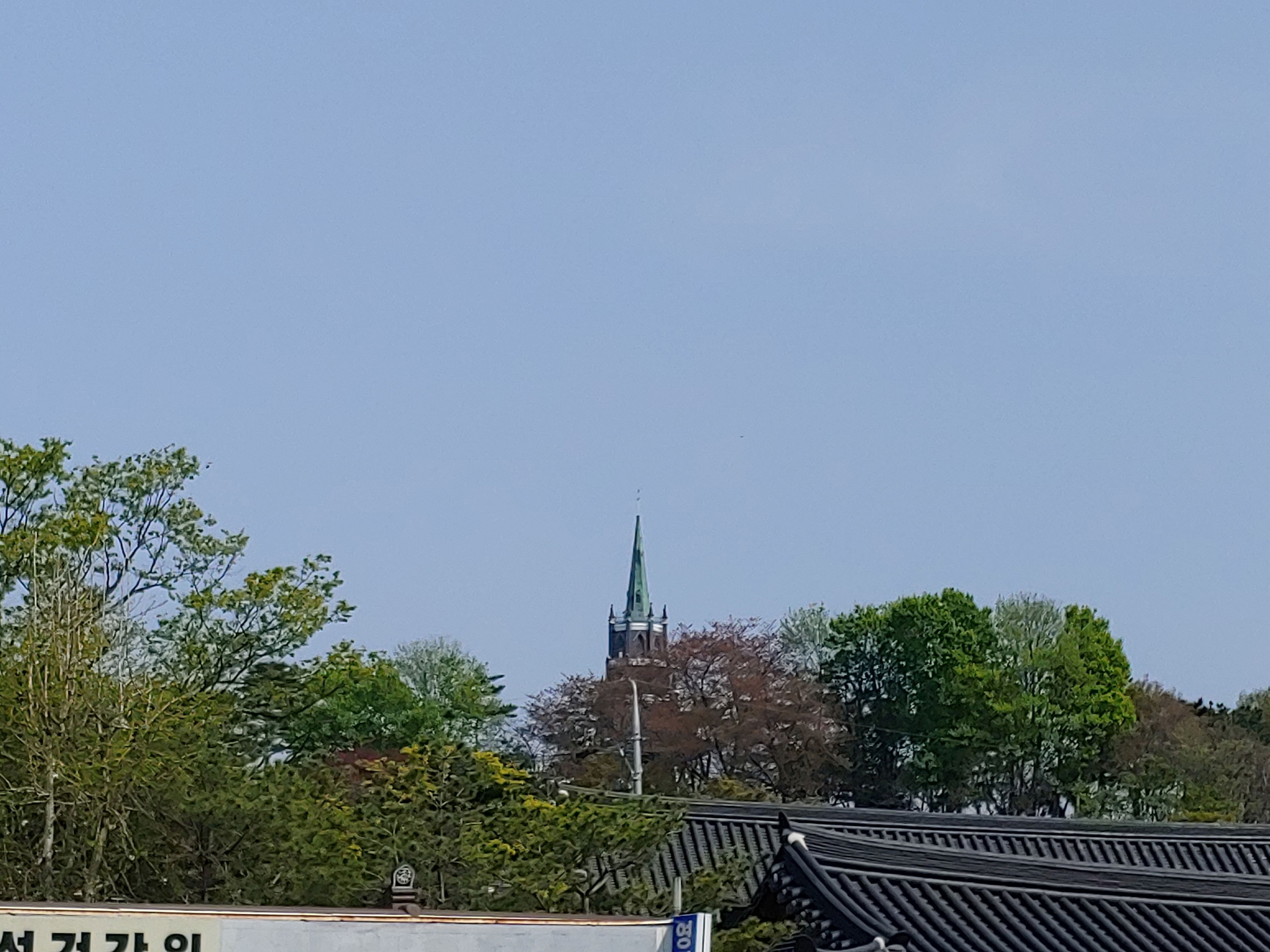 조금 떨어진 곳에 수원 제일교회 철탑이 보입니다.