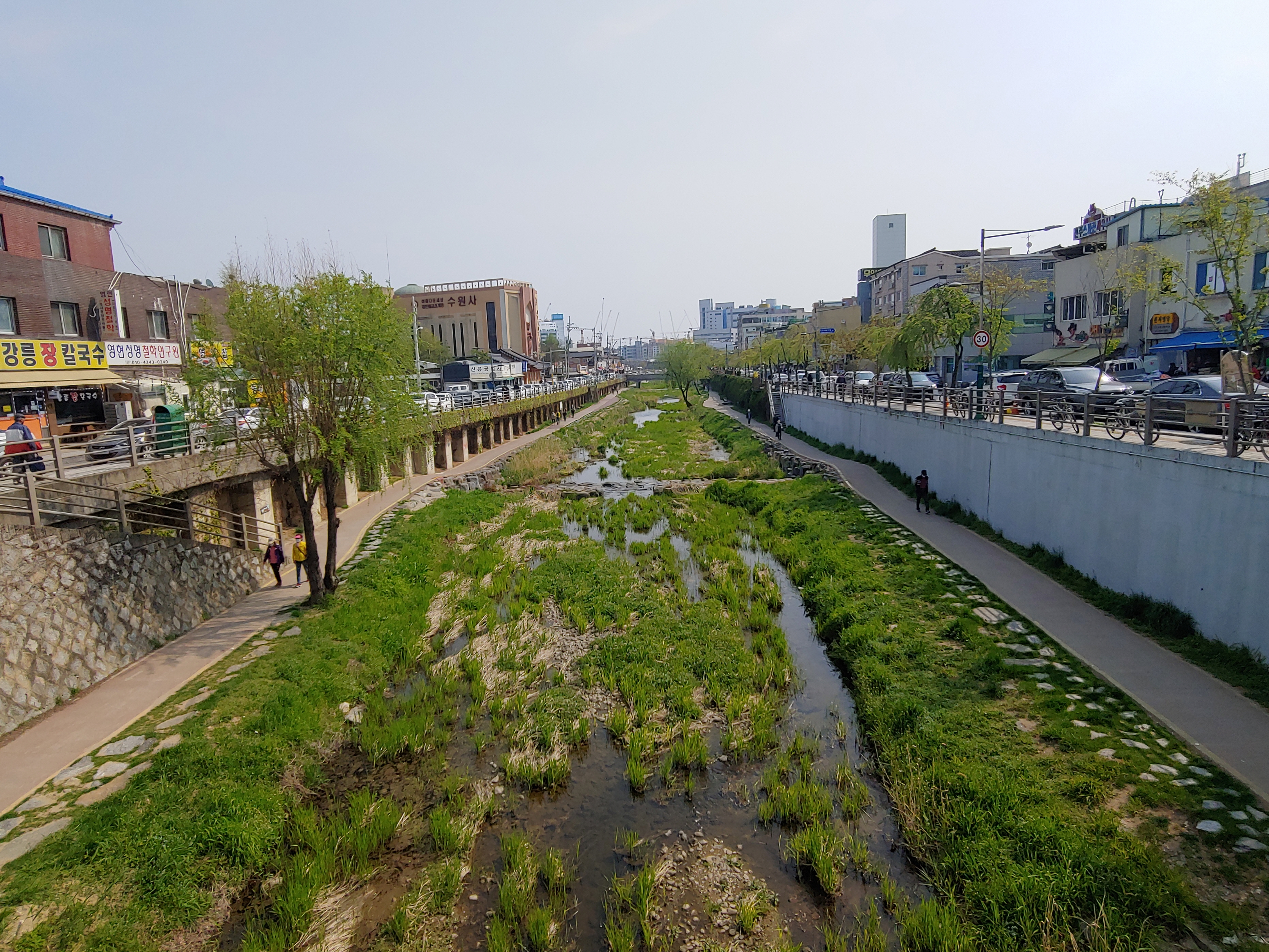 수원통닭거리가 시작되는 수원천 모습