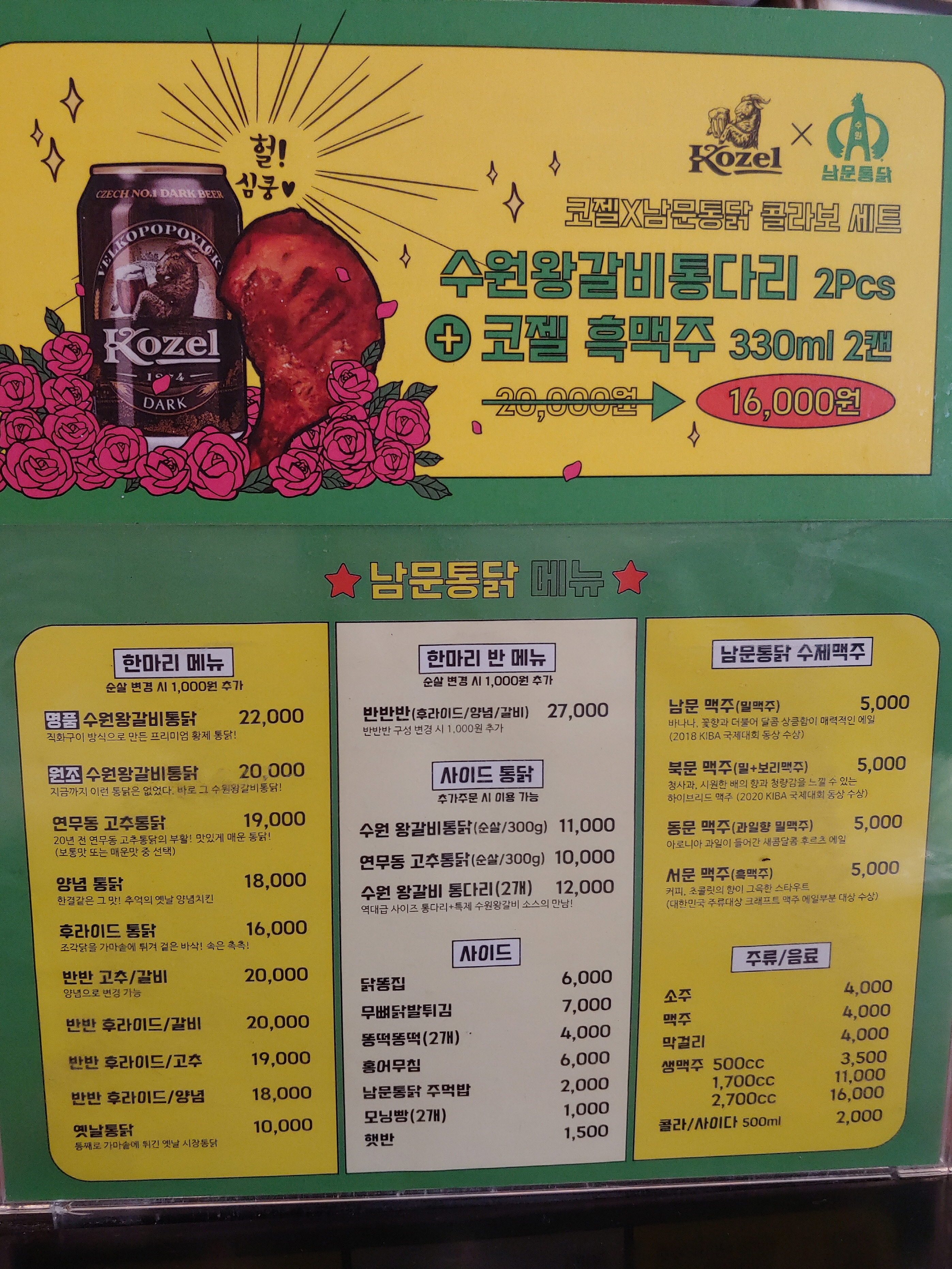 남문통닭 메뉴