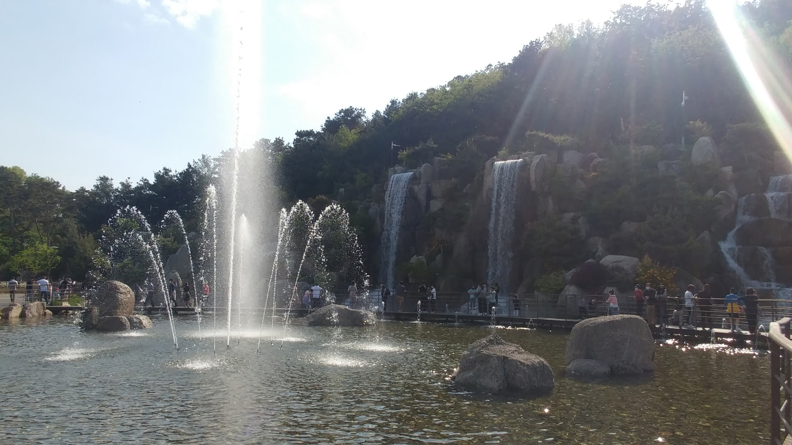 노적봉폭포 앞의 노래하는 분수
