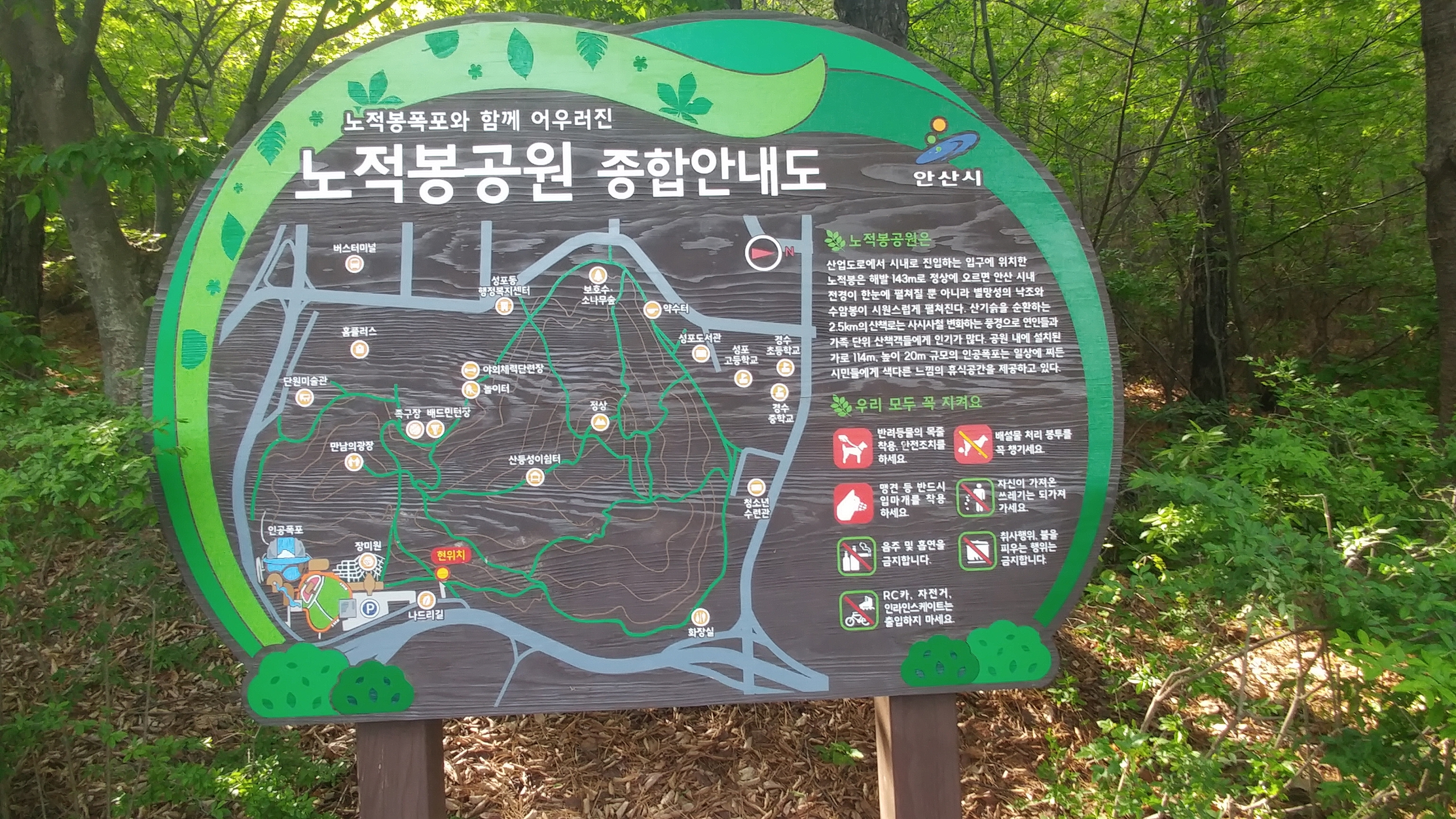 노적봉폭포와 함께 어우러진 노적봉공원 안내도