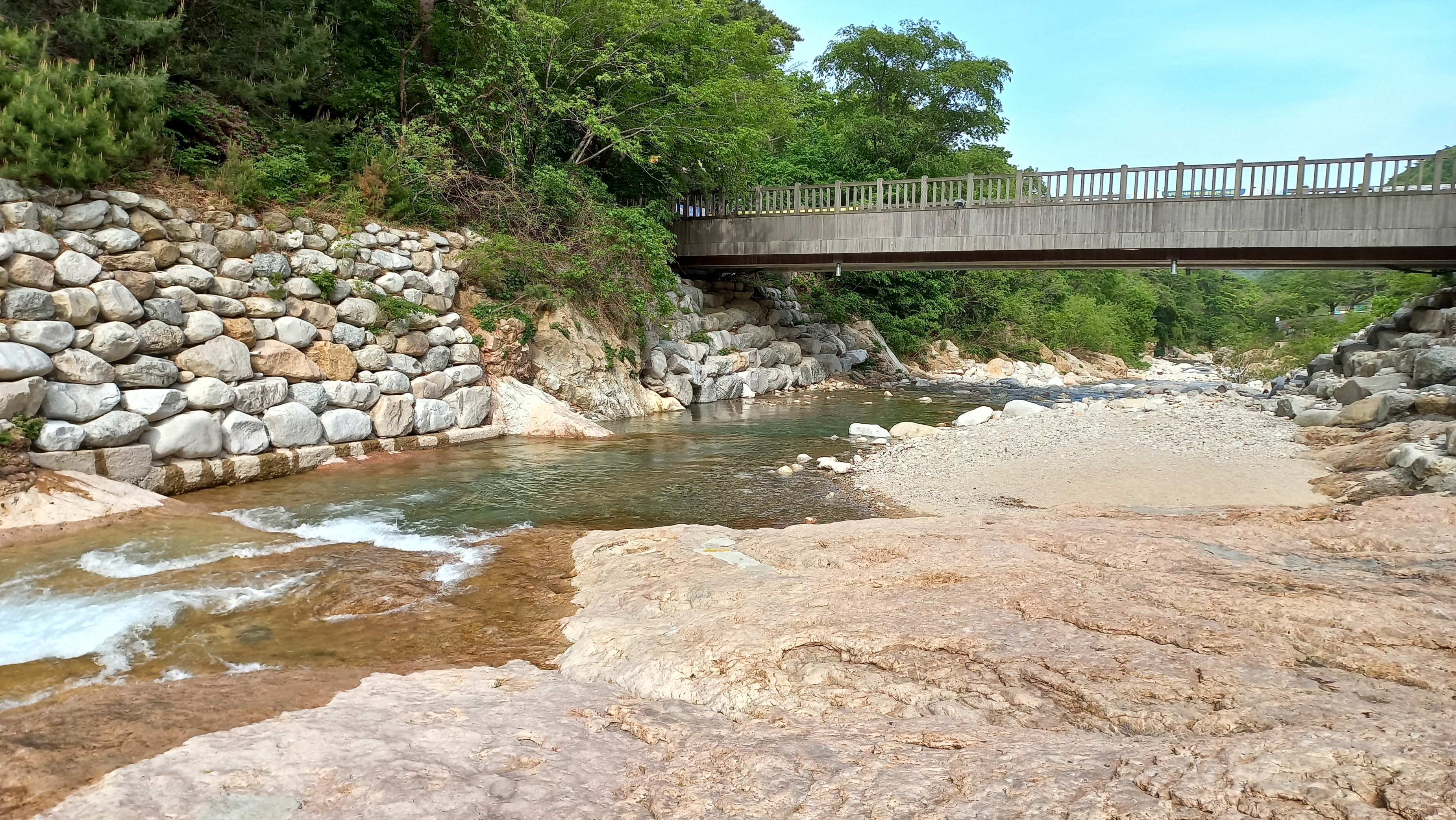 계곡을 가로지르는 다리는 약수교입니다.