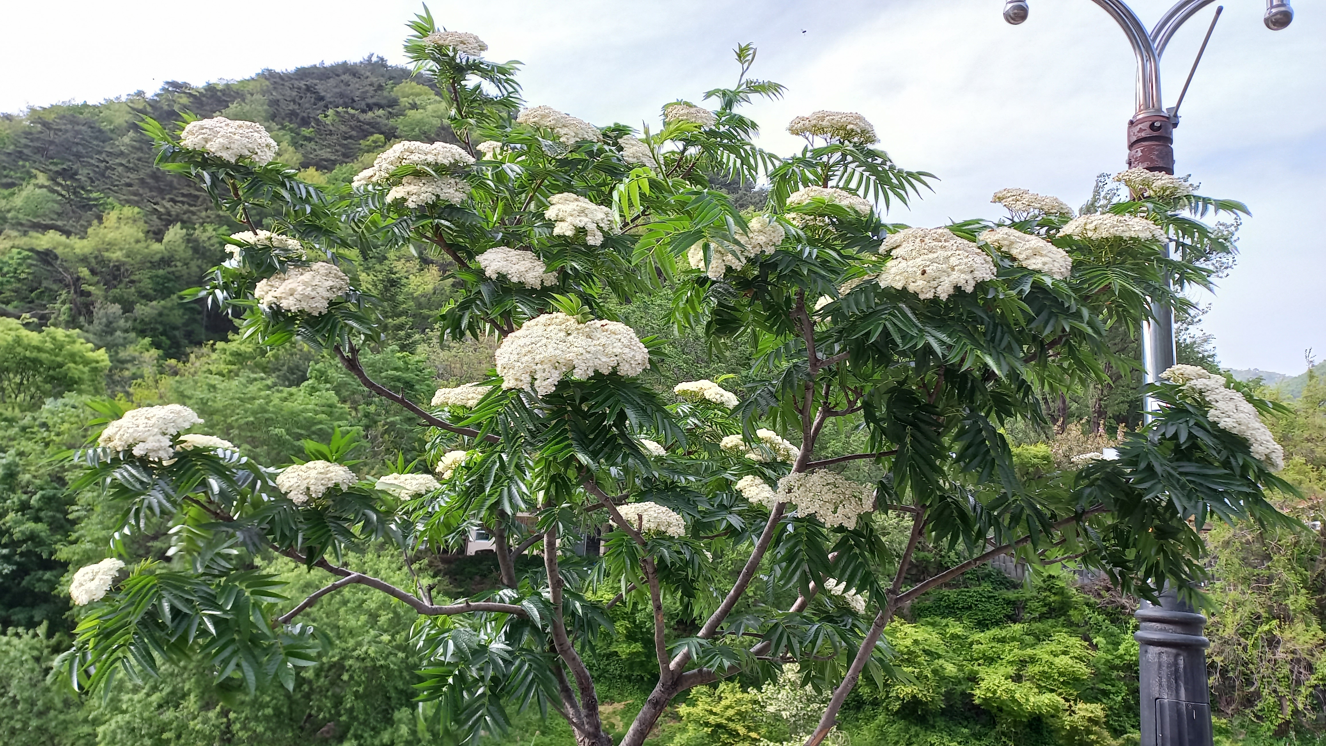 무슨 꽃일까 싶어 다음 앱으로 검색해보니 마가목 꽃이라고 알려줍니다.