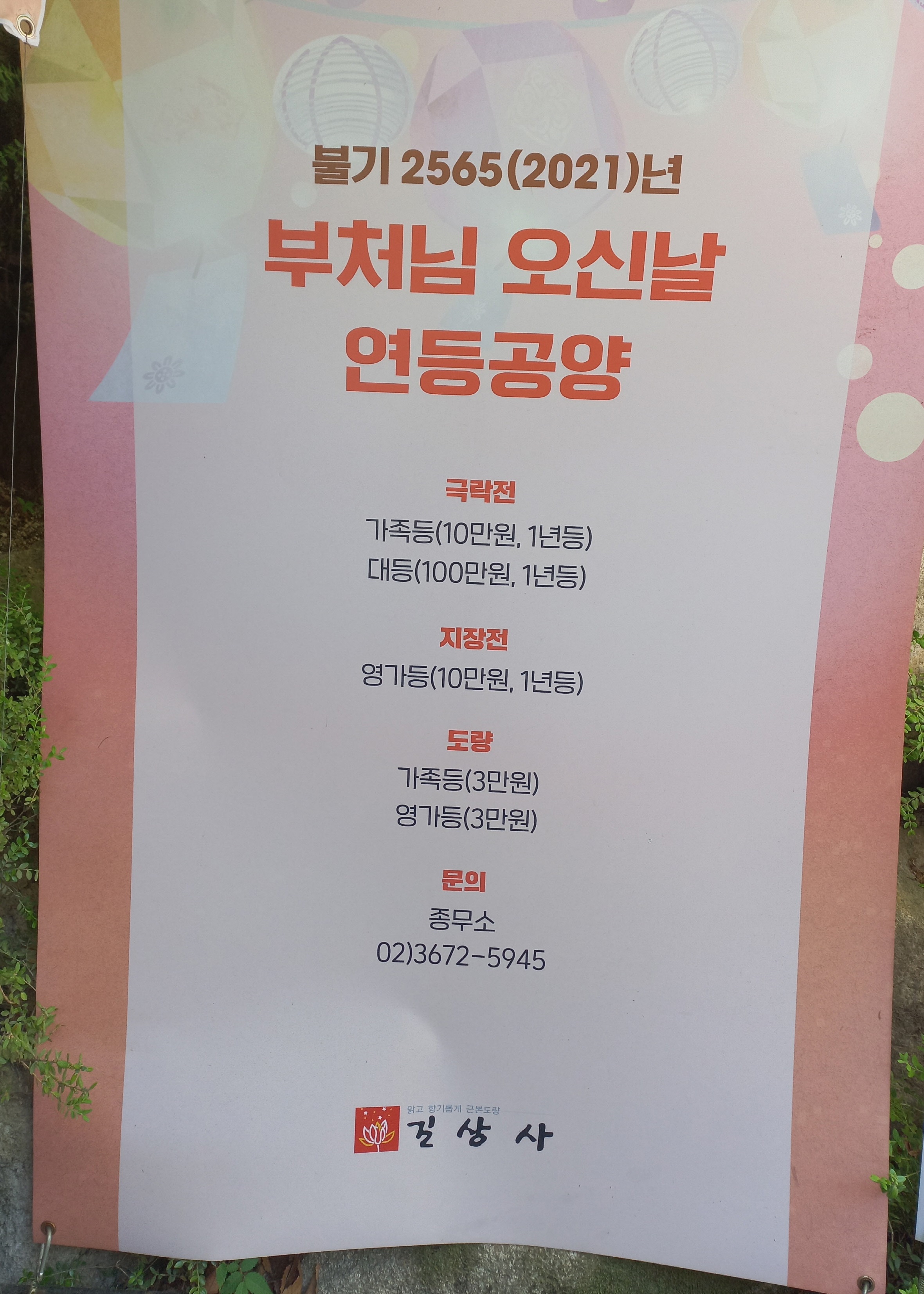 길상사 일주문 우측 종무소에서는 부처님 오신날 연등공양을 받고 있습니다.