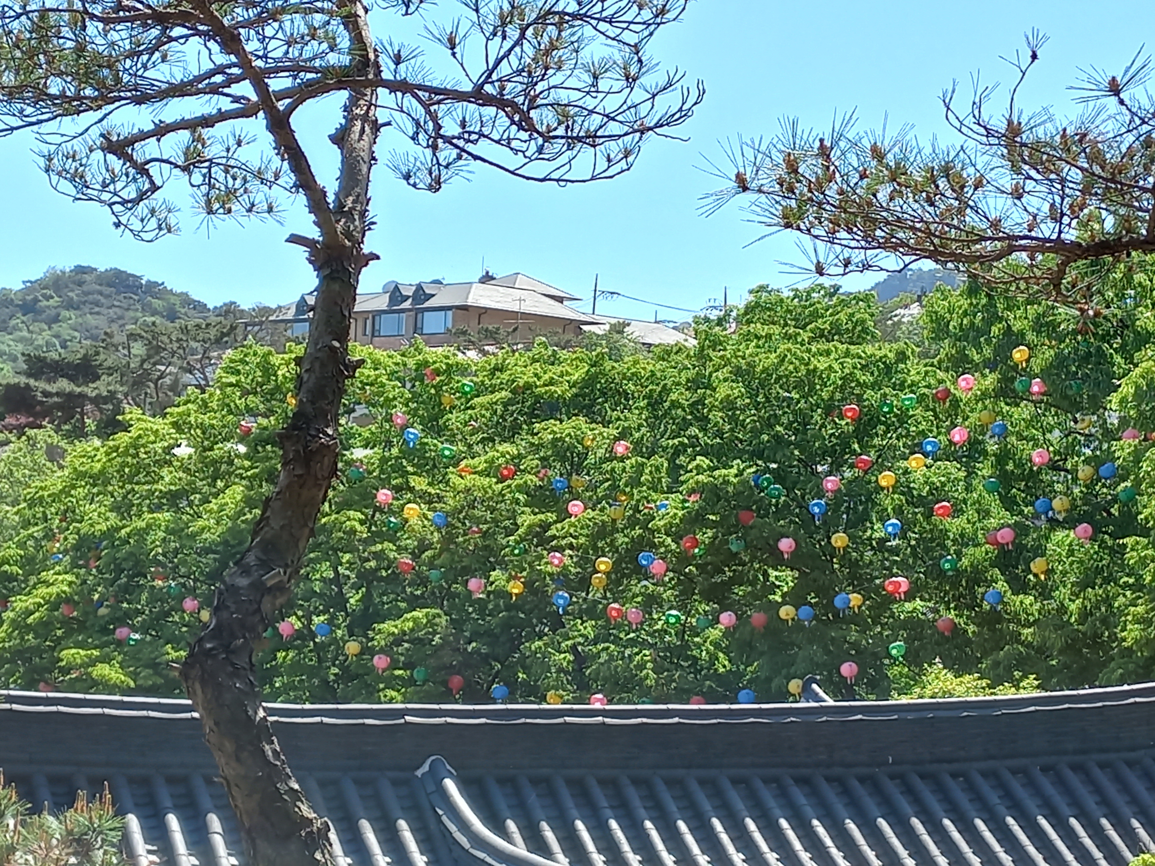 나무 위에도 연등이 가득 걸려 있습니다.