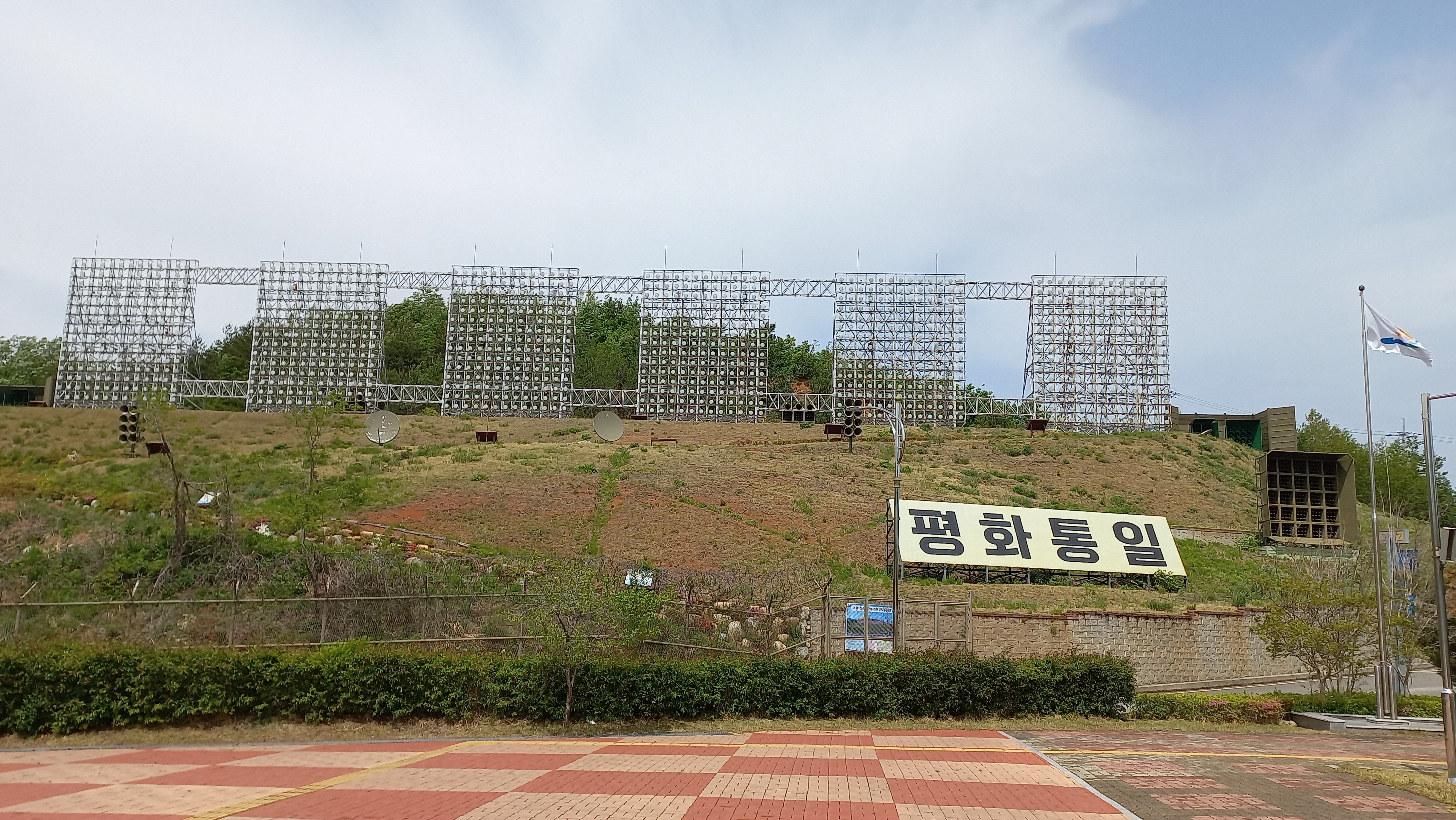 DMZ 박물관 외부에는 대북심리전 확성기와 전광판이 설치되어 있습니다.