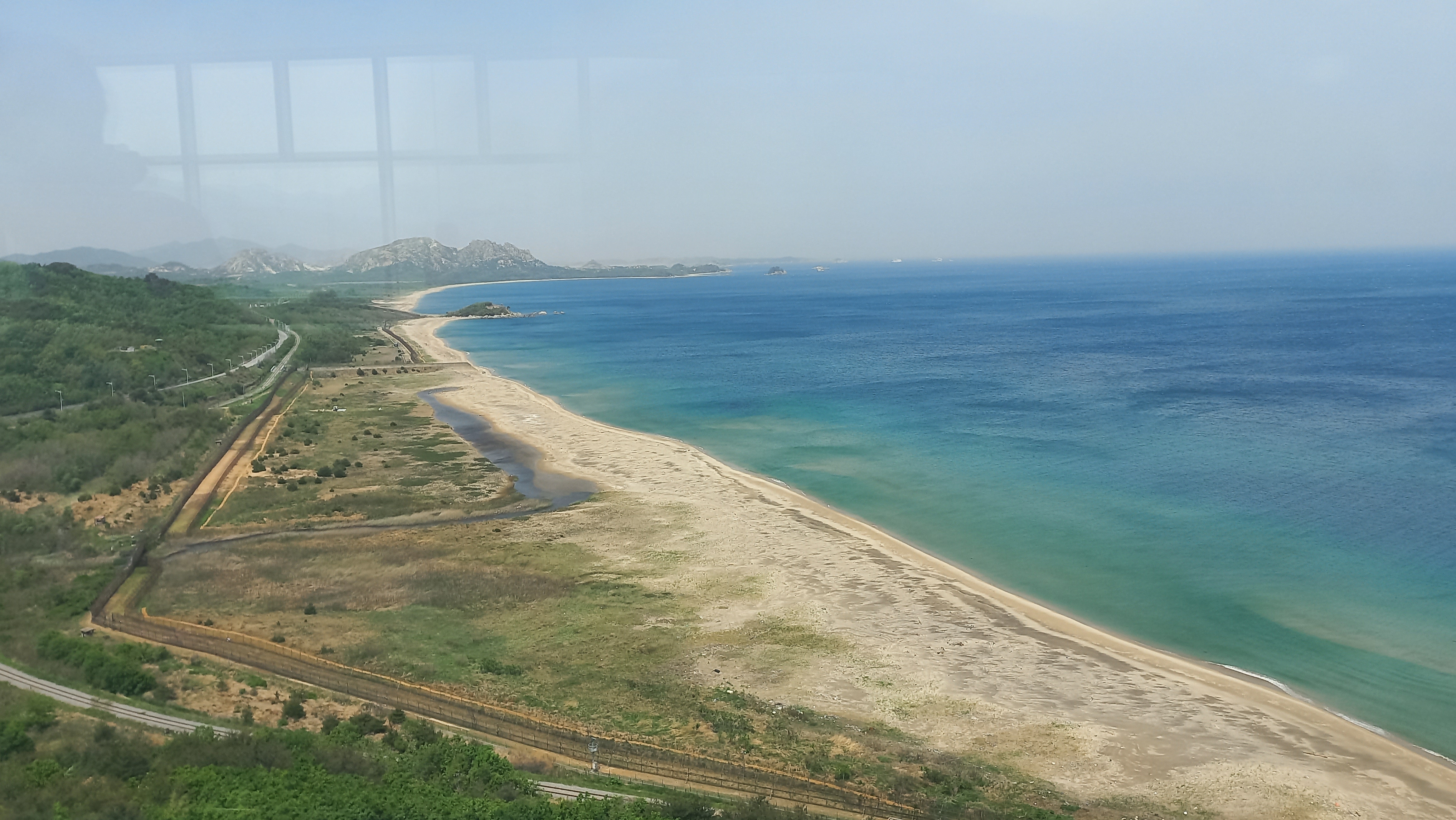 좌측의 희미하게 보이는 산이 바로 금강산.