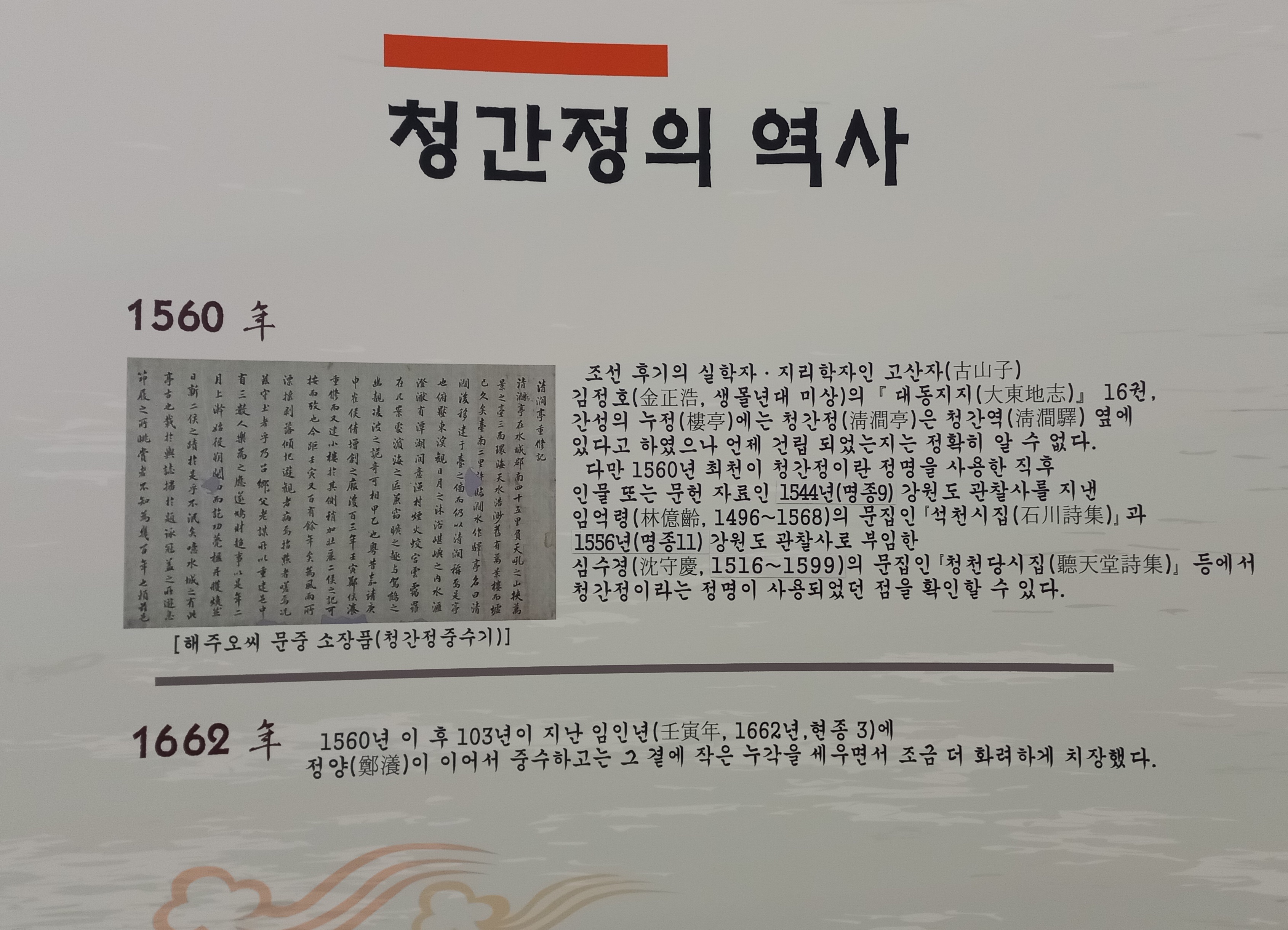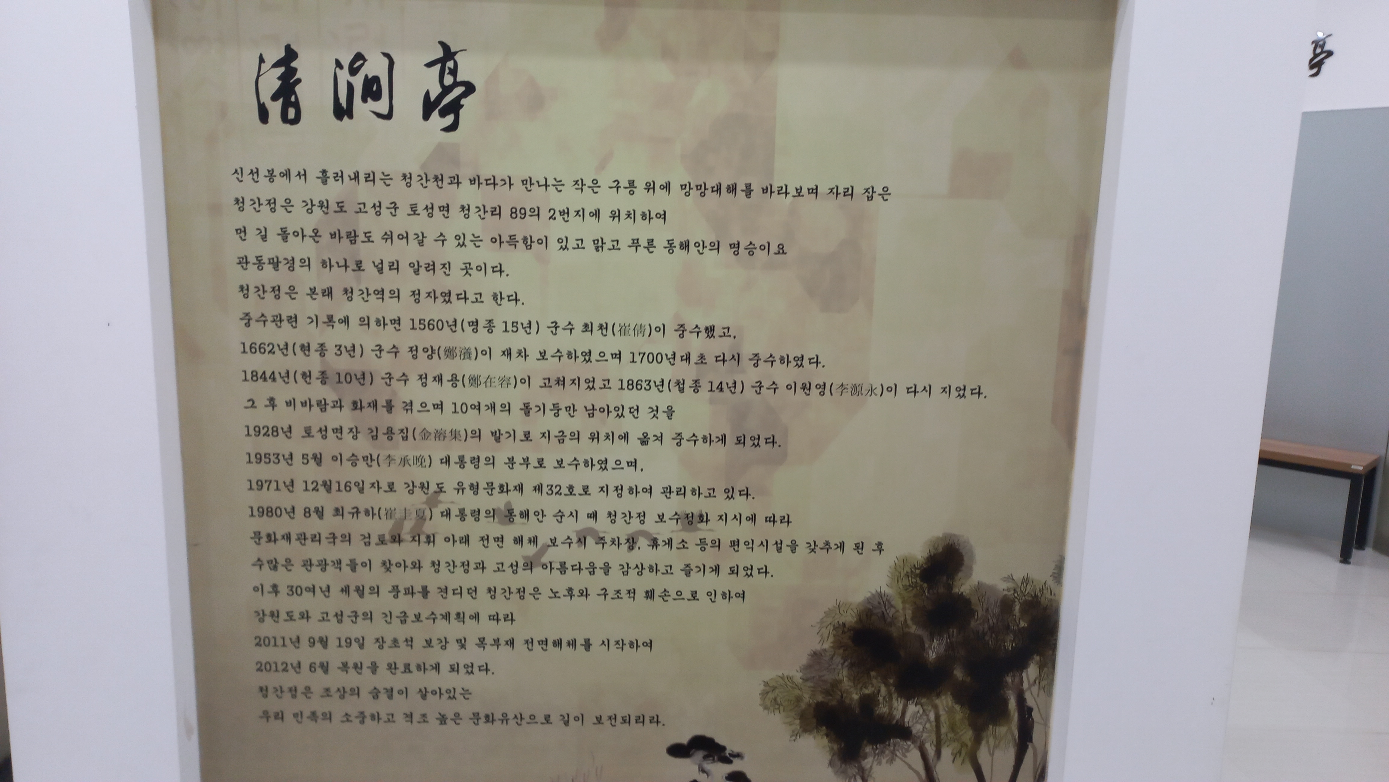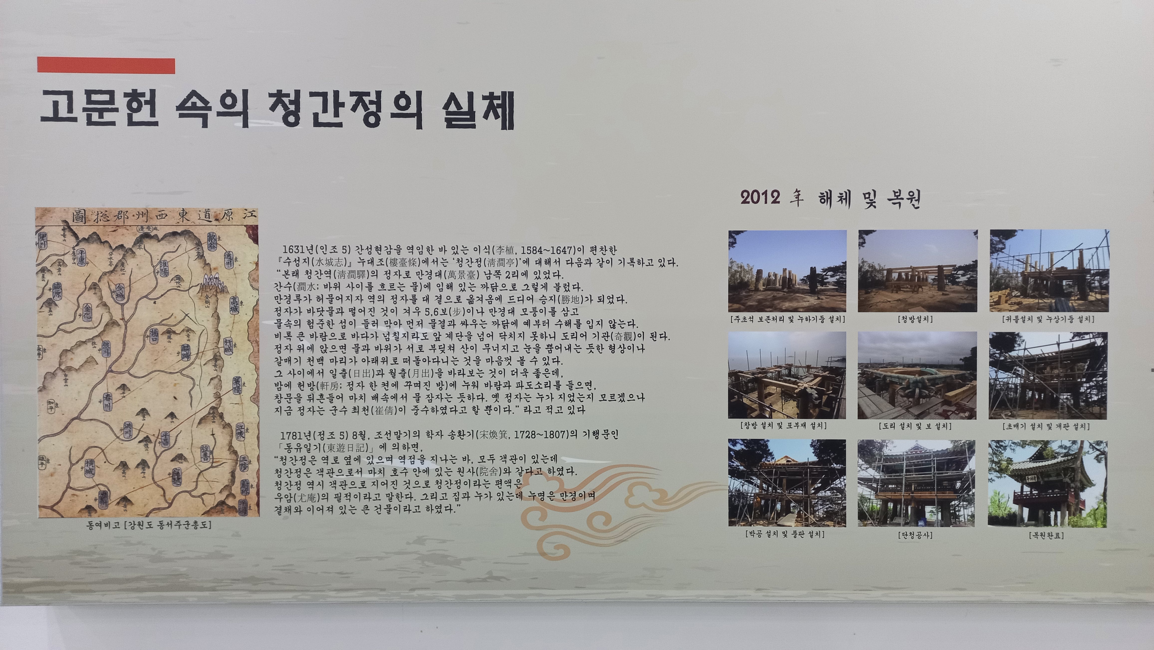청간정의 내력을 보여주고 있습니다.