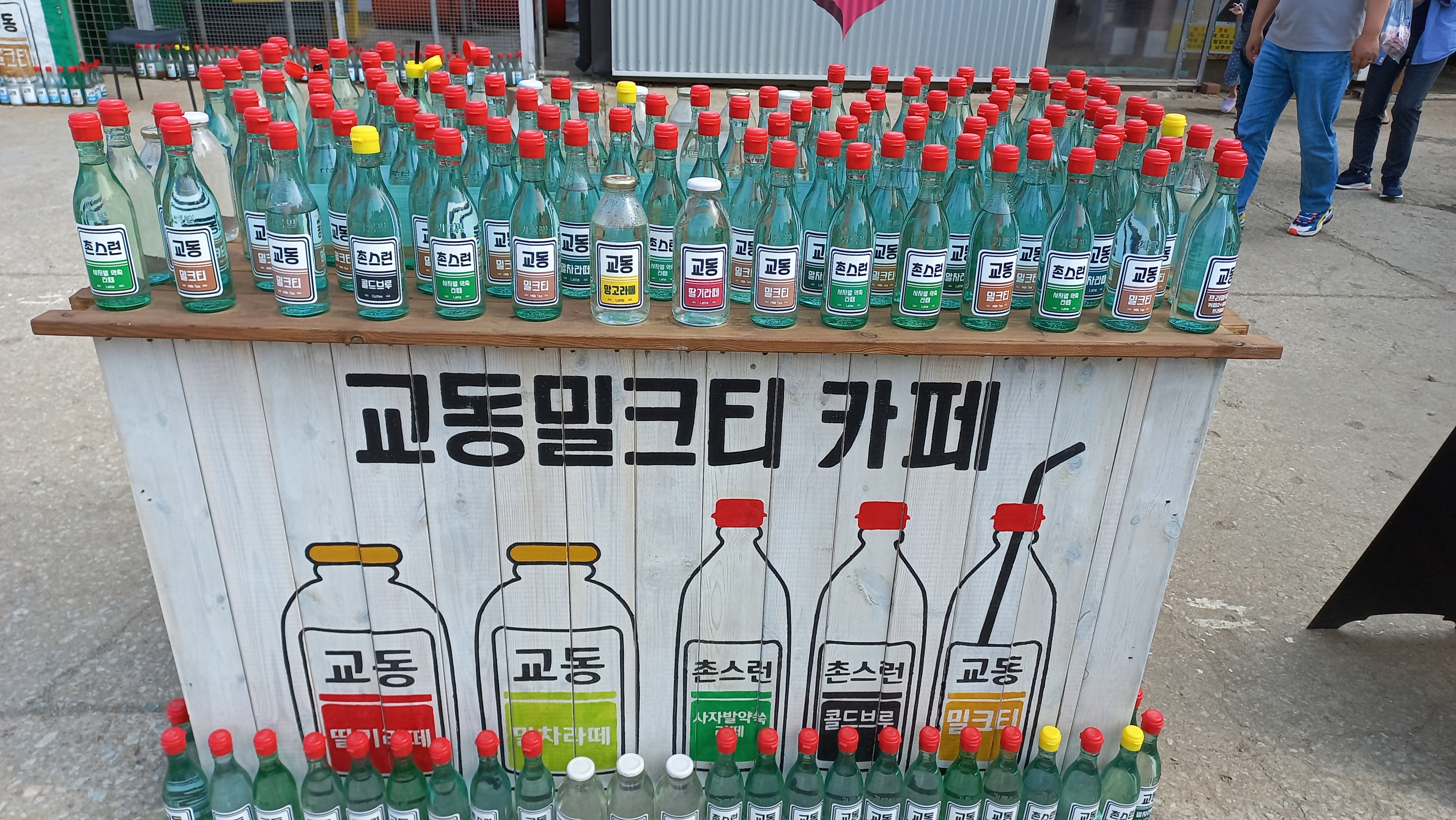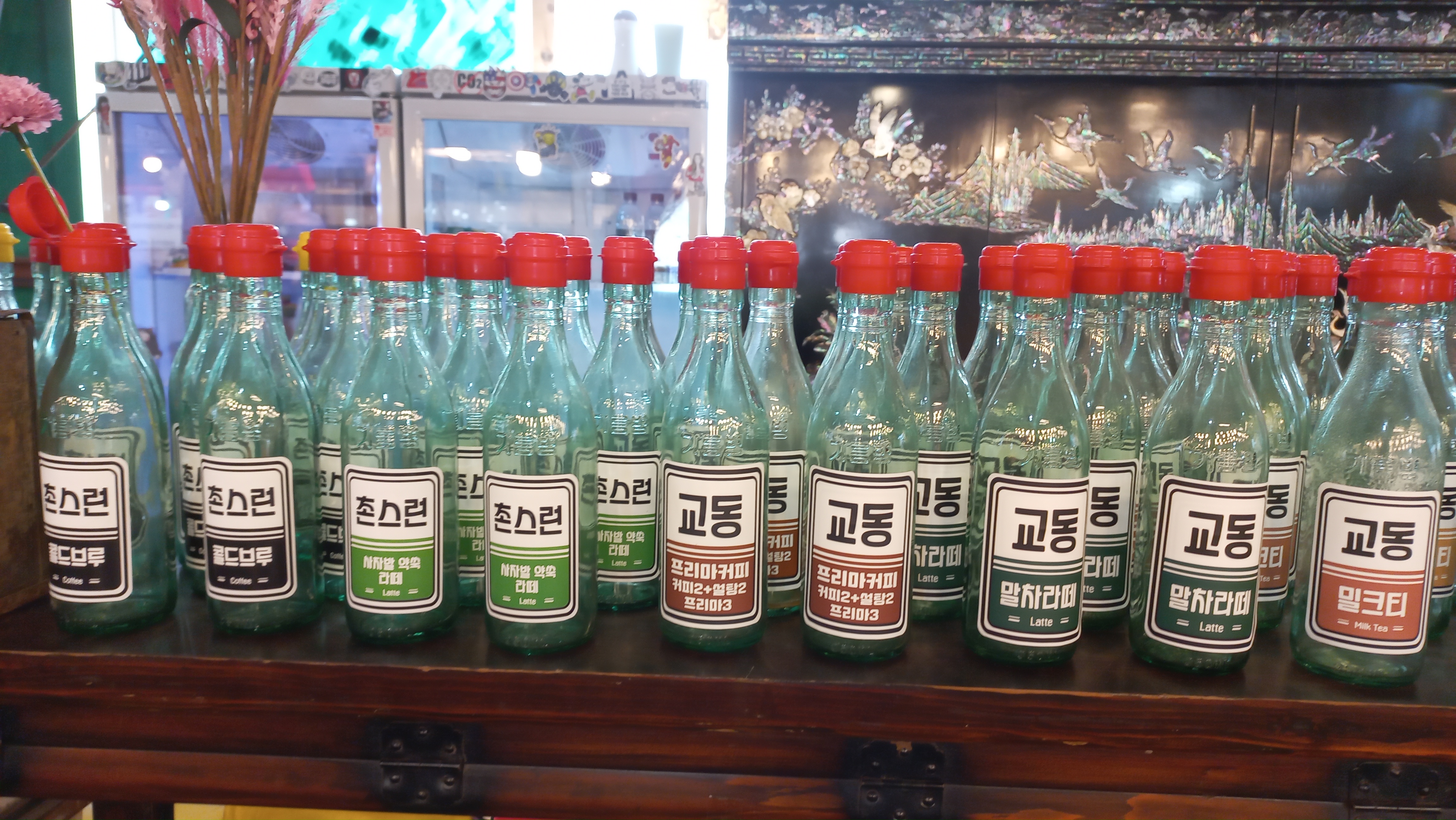 각종 음료를 참기름병처럼 생긴 곳에 넣어 팔고 있어서 이색적이더군요.