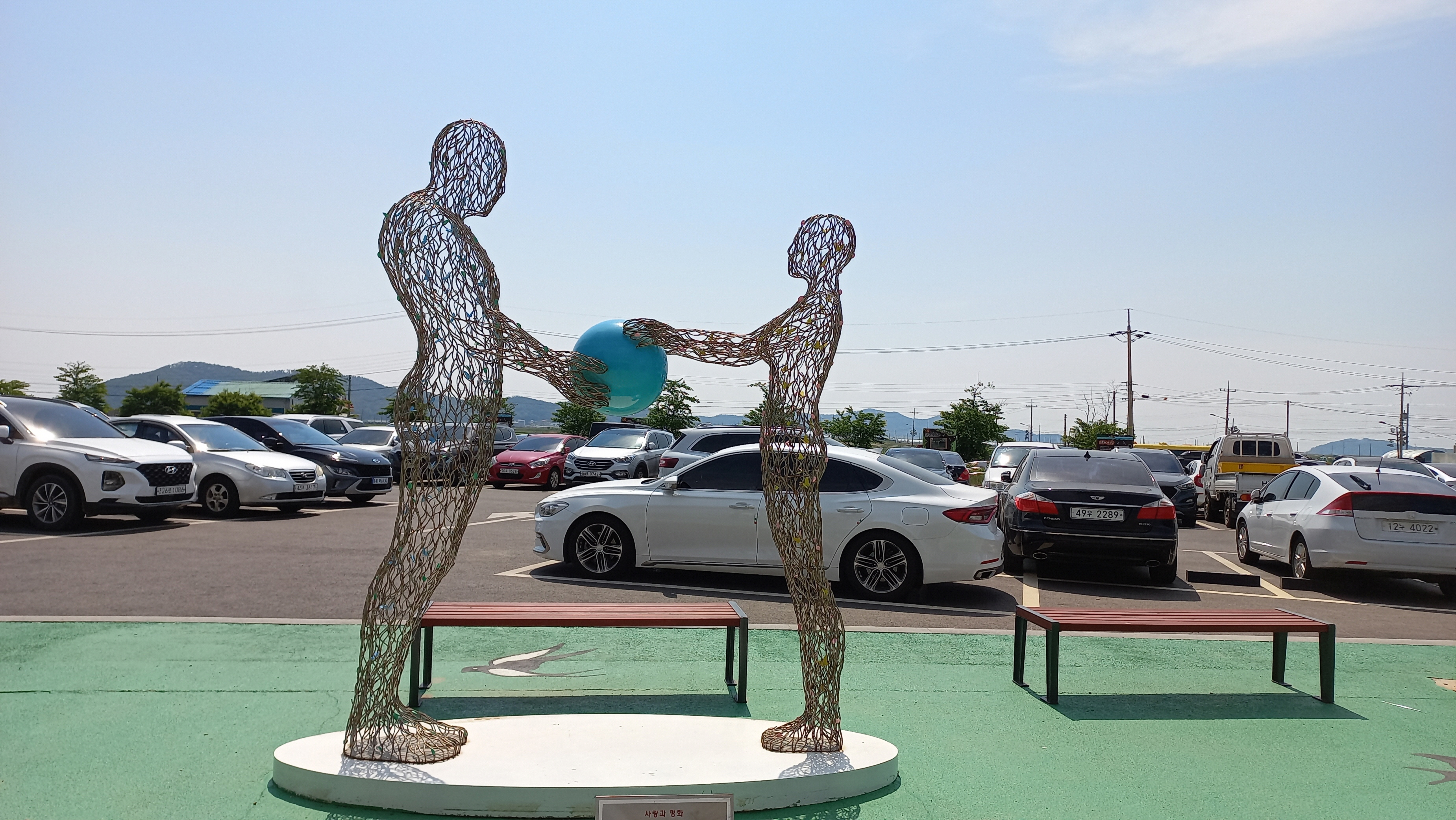 대룡시장 주차장에 차를 세우고 교동 제비집 앞에 있는 조형물이 눈이 띕니다.