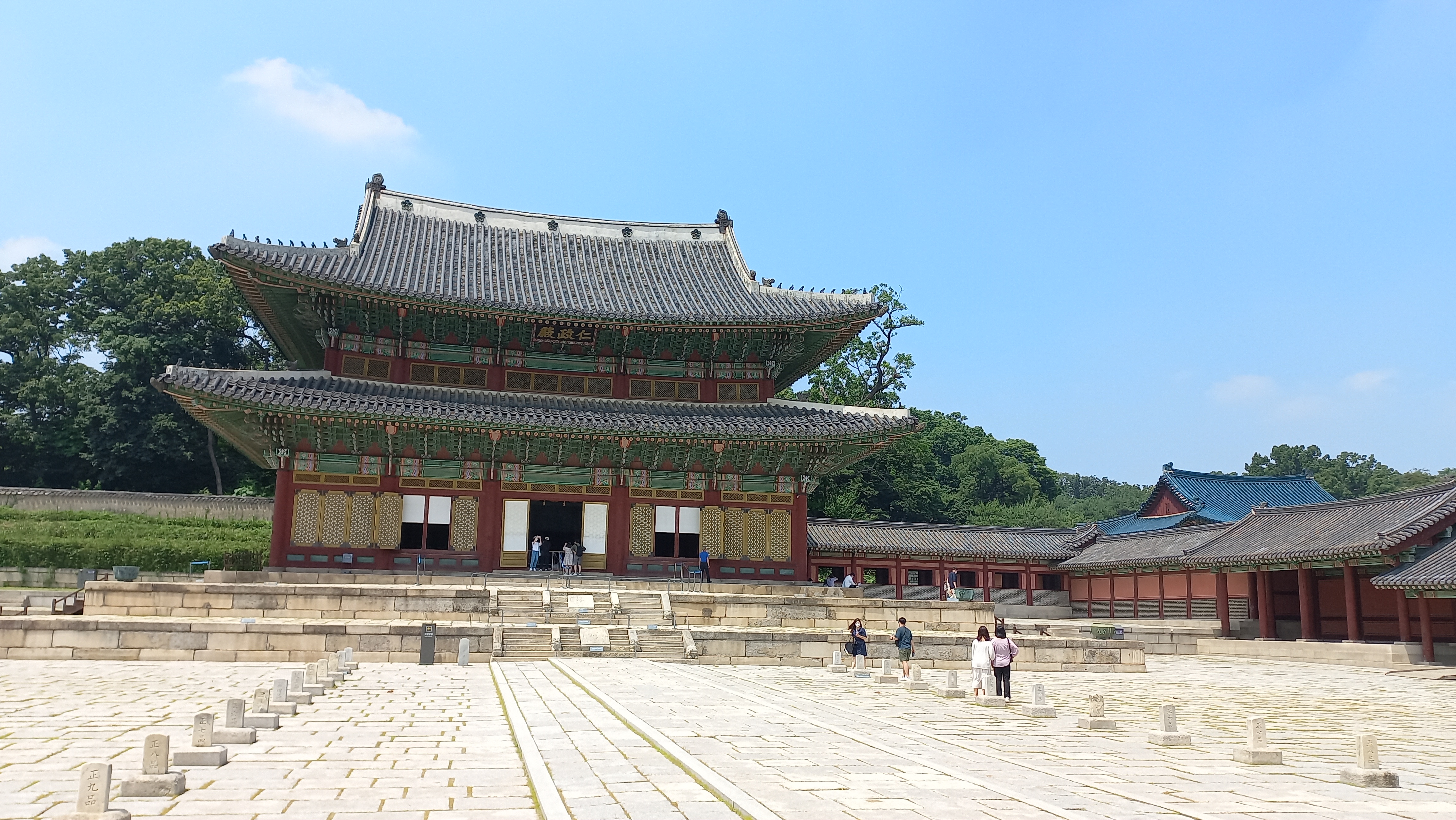 이듬해 1804년(순조 4) 다시 건립하였고, 인정전의 앞마당에는 박석을 깔았고 품계석을 설치하여 조선왕조의 법전으로 역할했습니다.