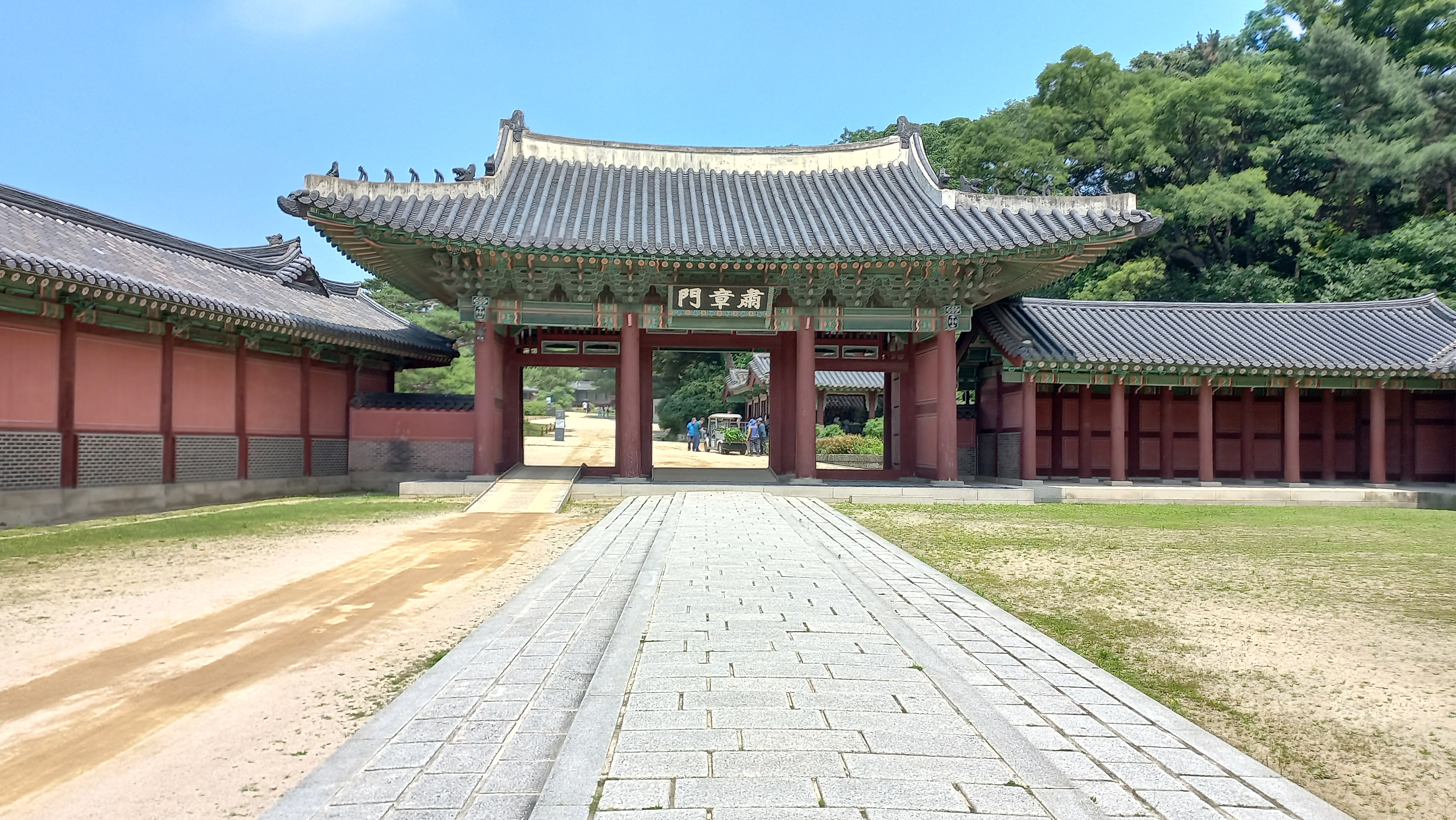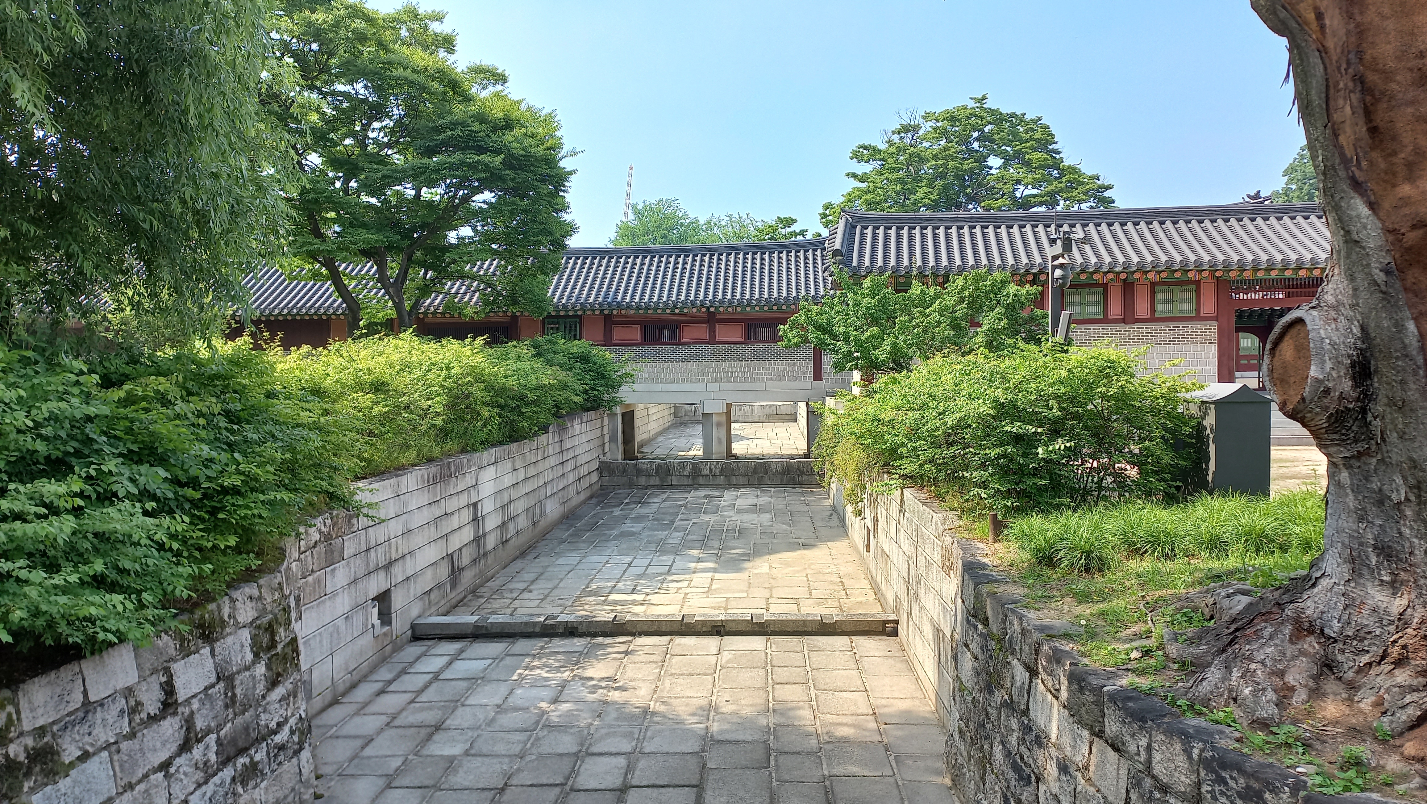 진선문을 들어서면 직사각형의 넓은 마당이 펼쳐져 있으며 마당에는 어로가 나 있습니다.