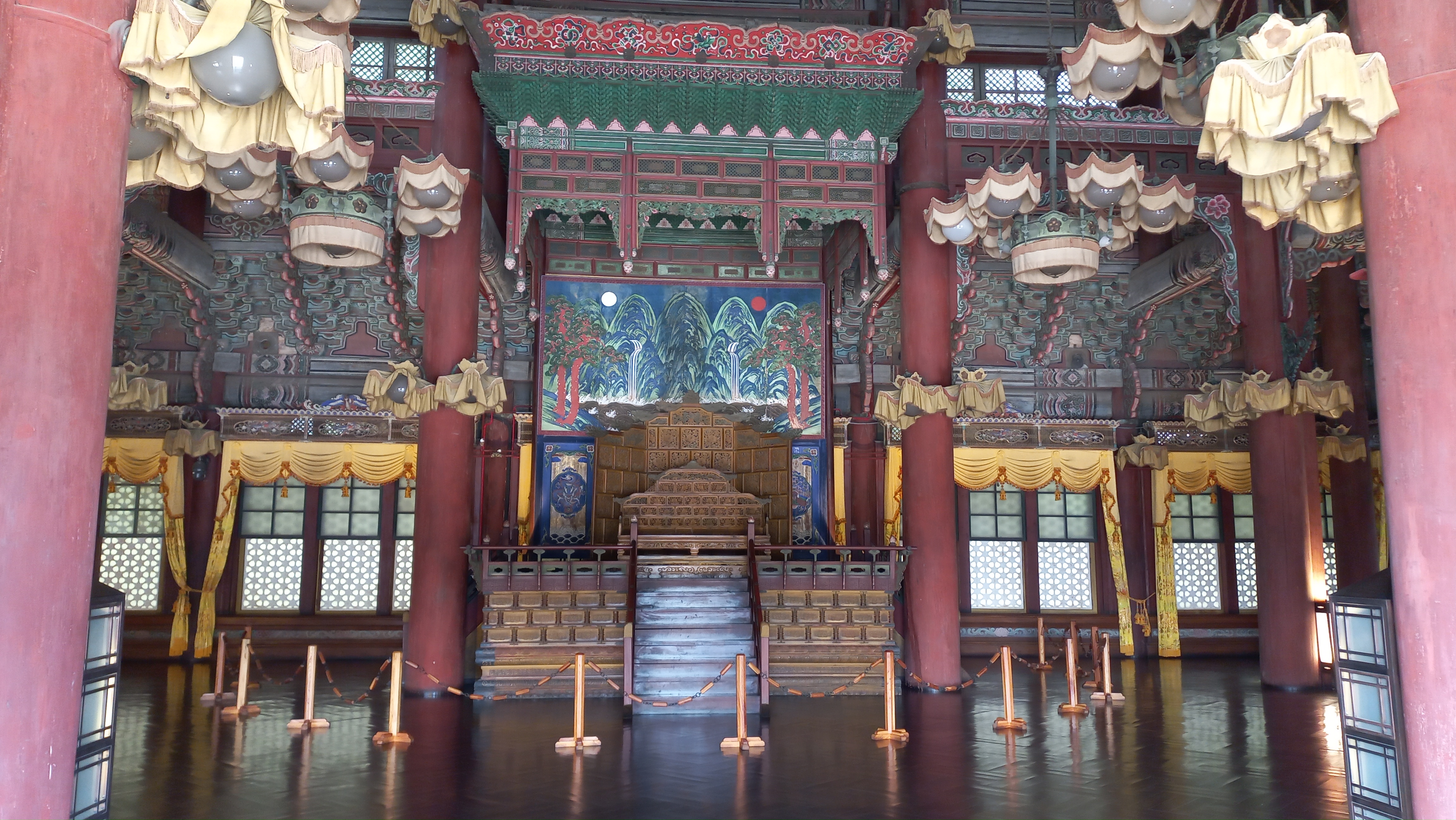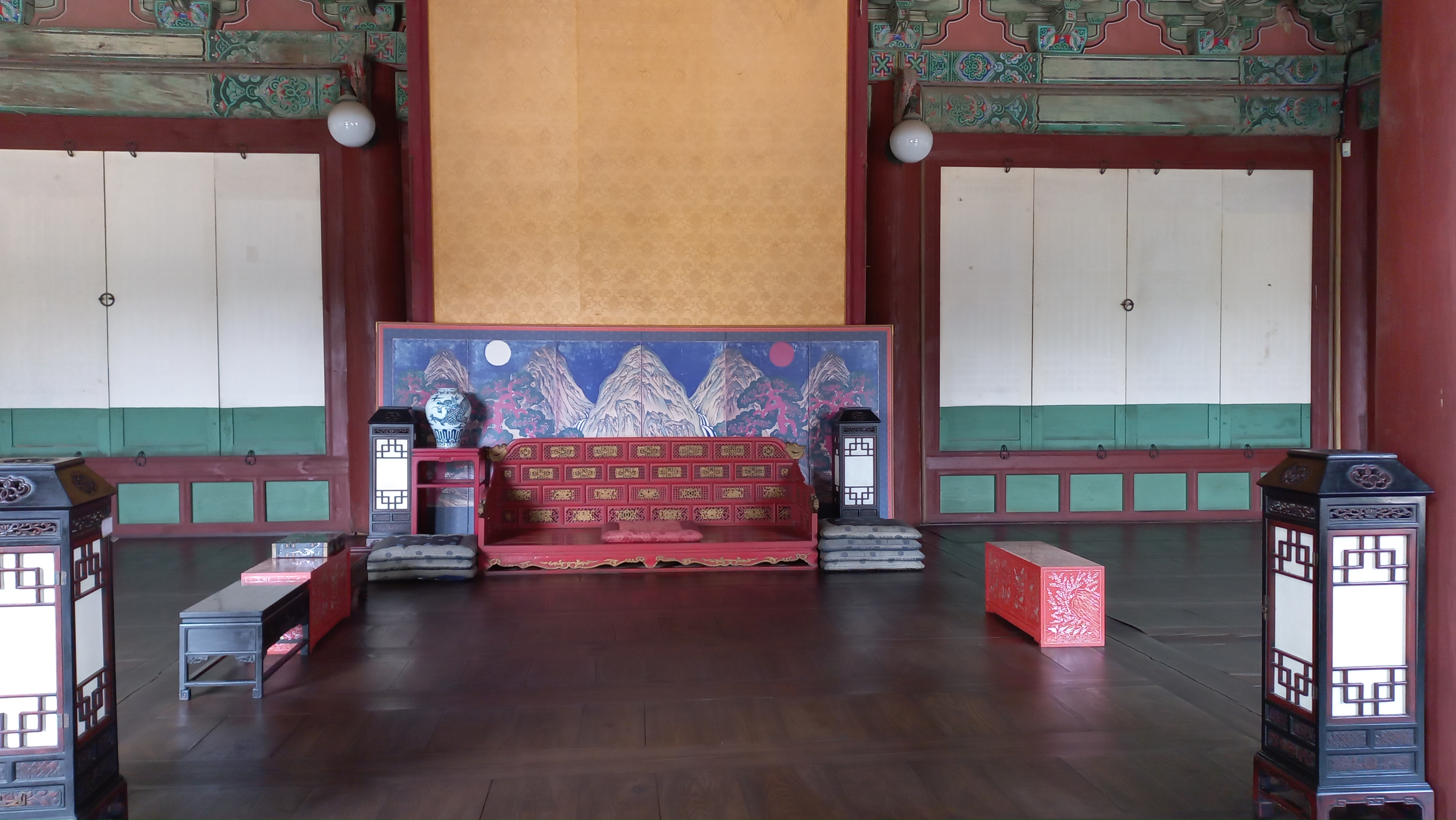 인정전의 일월오악도 아래에 있는 임금의 용상 모습