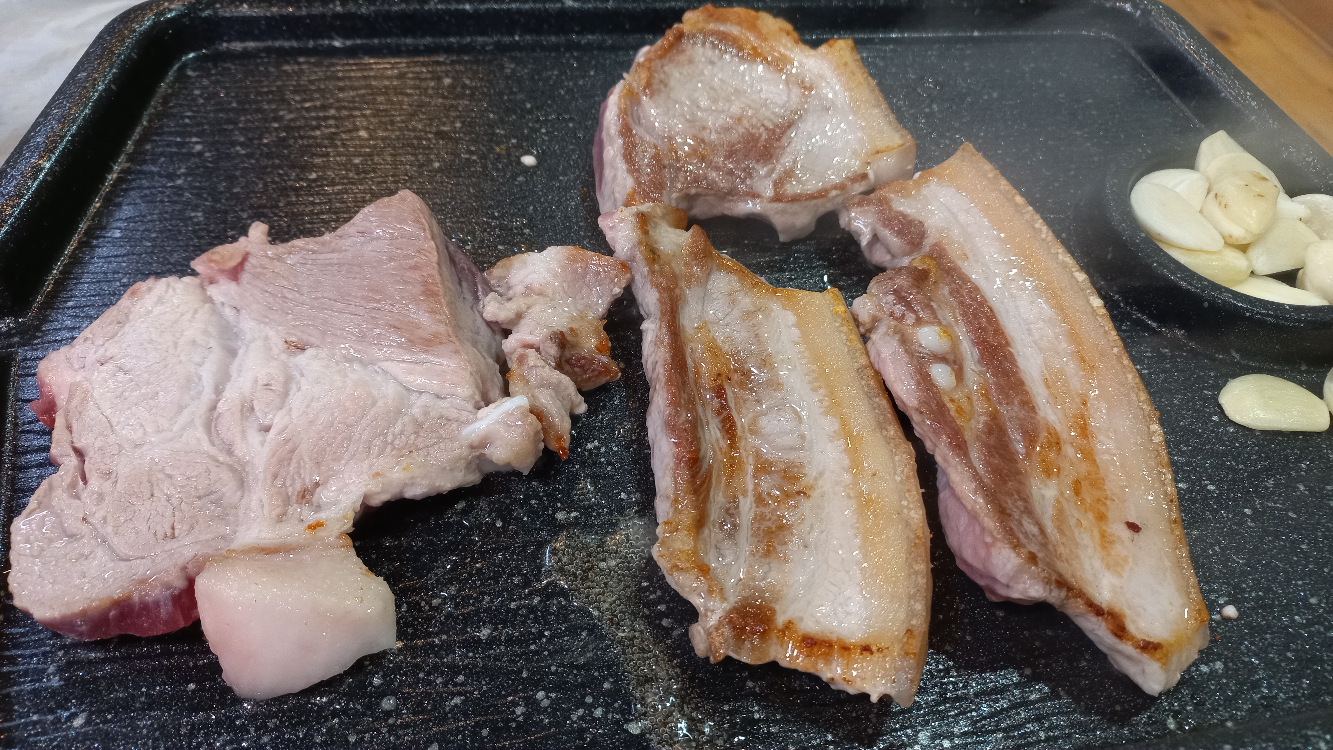 약돌돼지 생고기가 두툼한 게 양도 많고 먹음직스럽네요.