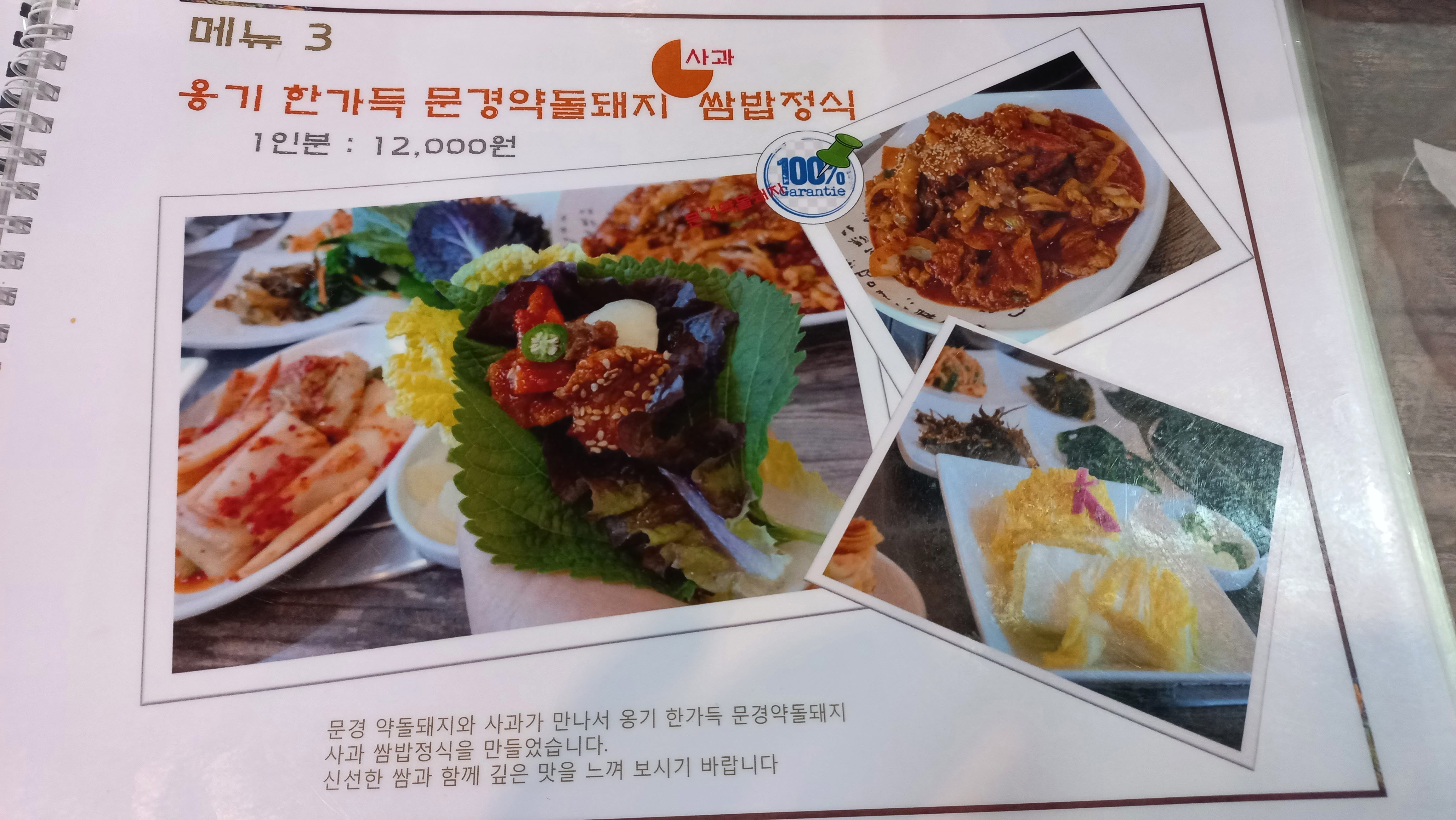 메뉴판에는 나와 있지 않는데 옹기한가득 + 약돌한우(130g) 세트로 45,000원? 43,000원? 하는 메뉴도 있으니 약돌 한우와 약돌돼지를 모두 드시고 싶으면 참고하면 좋겠습니다.