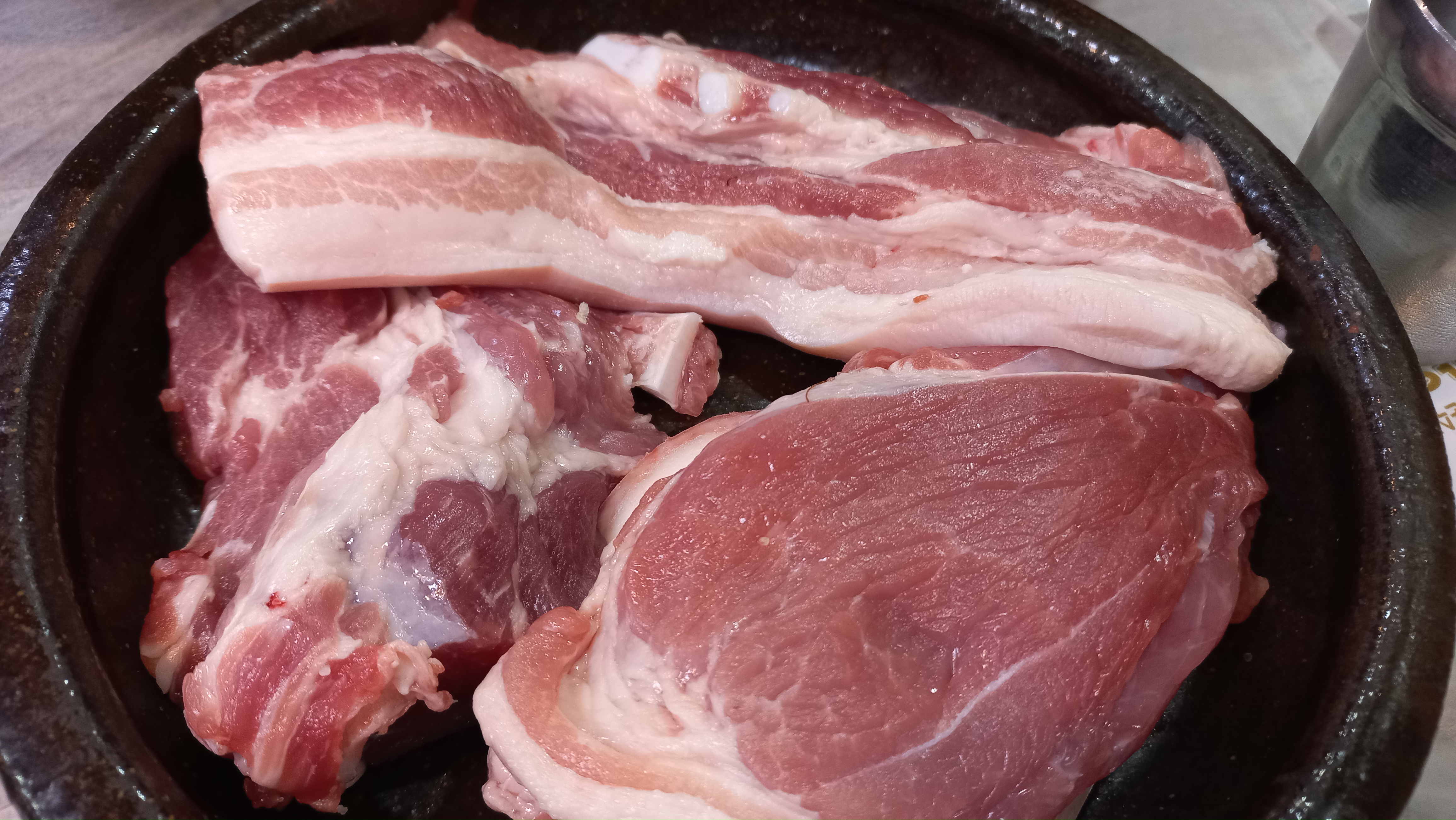 질 좋은 문경 약돌돼지 생고기를 먹을 수 있는 옹기에 한가득