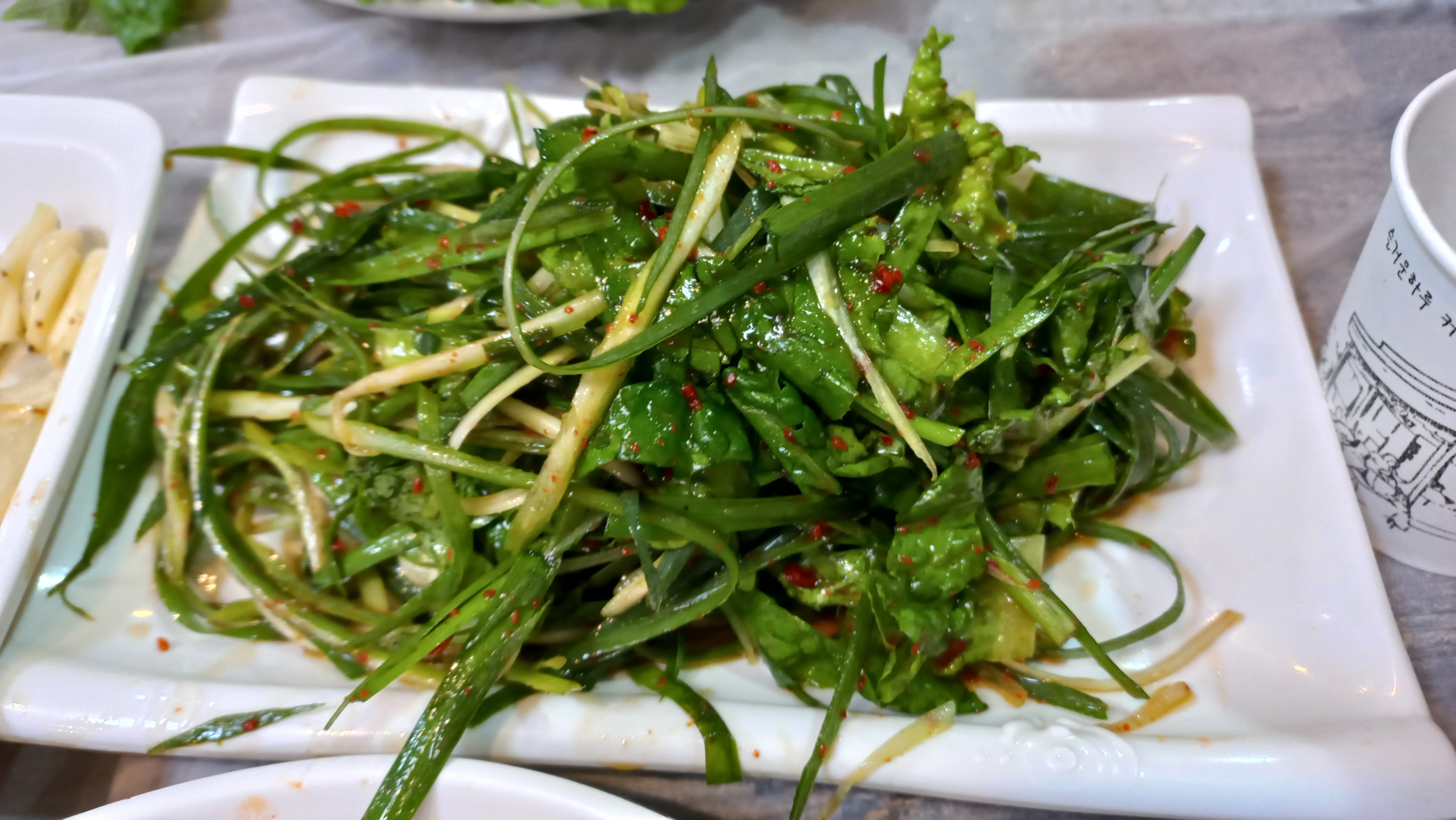 파와 야채로 버무린 겉절이는 고소하고 고기와 무척 잘 어울렸습니다.