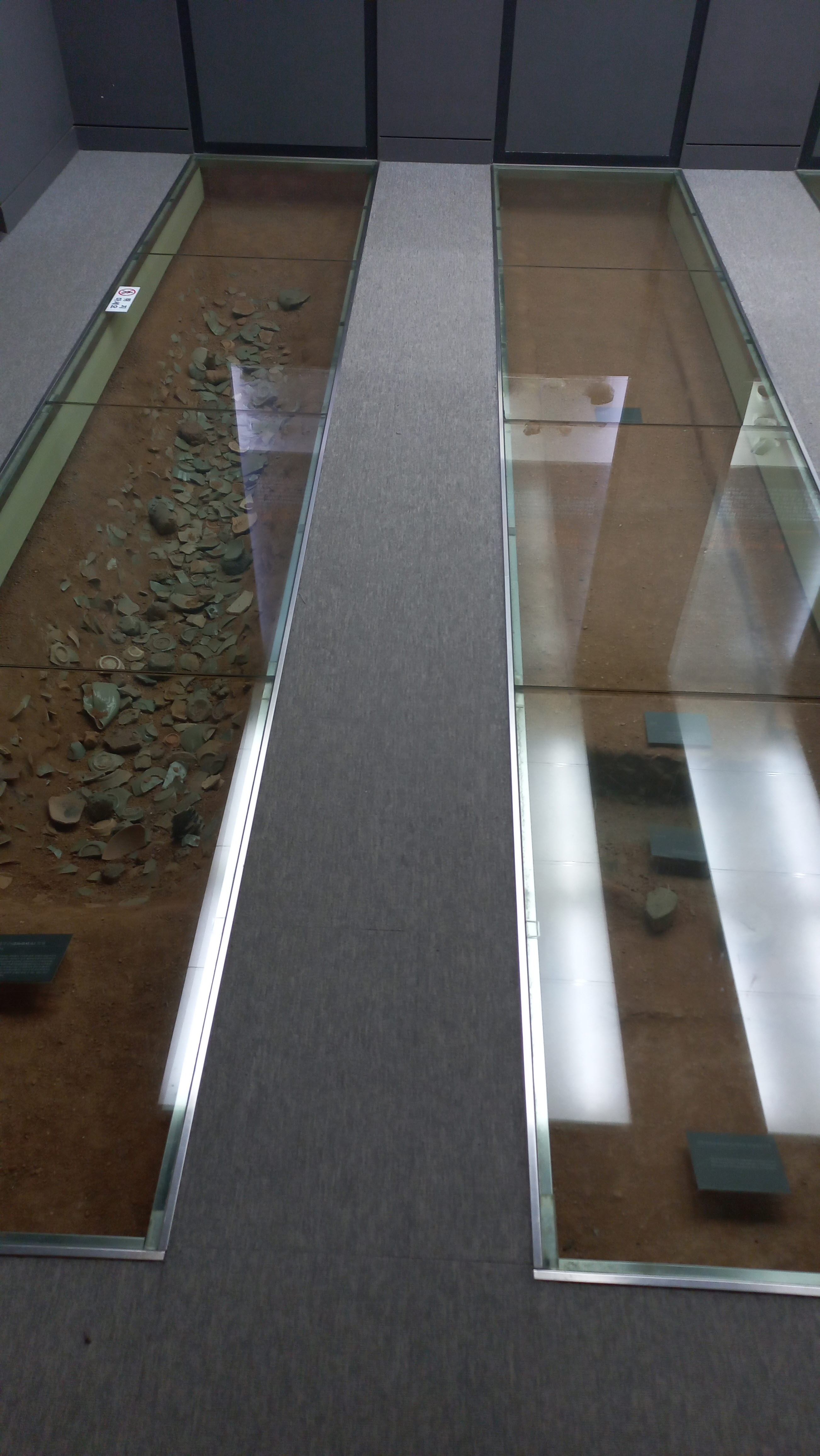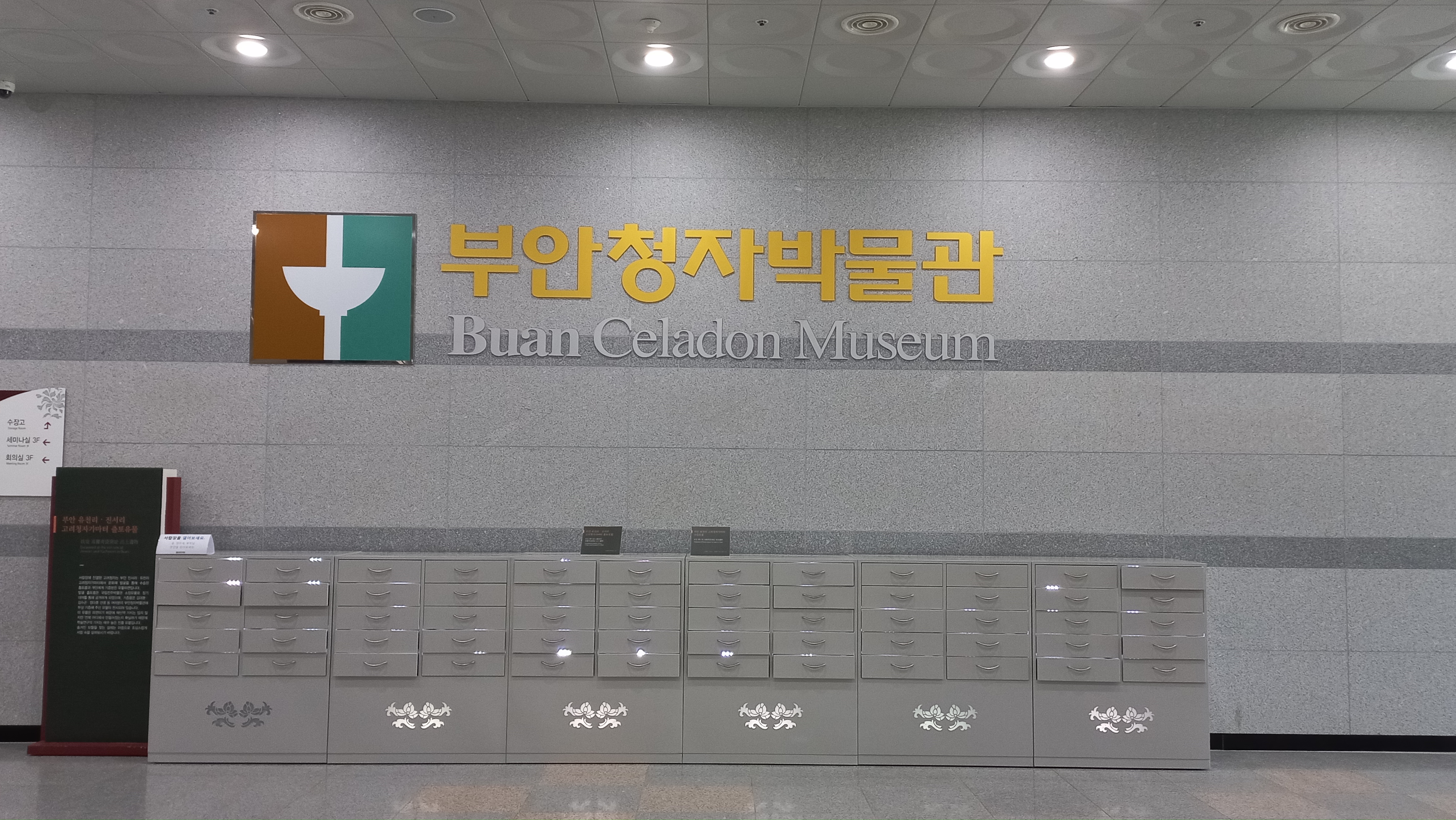 2층 로비에는 부안 유천리와 진서리의 고려청자 가마터에서 출토된 유물들을 서랍에 전시하고 있습니다.