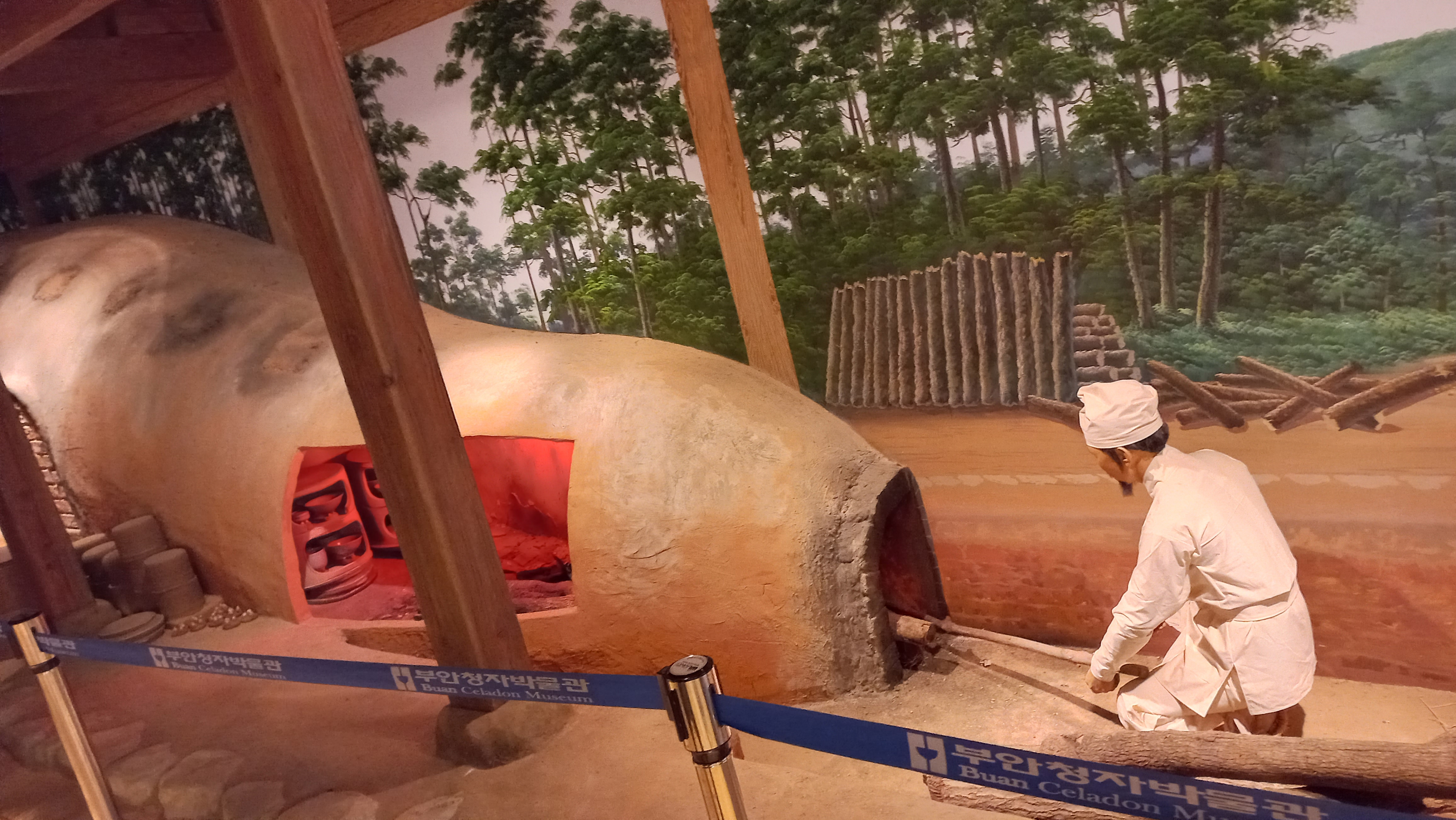 부안에서 발견된 가마터의 원형을 복원하여 전시하고 있는 모습입니다.