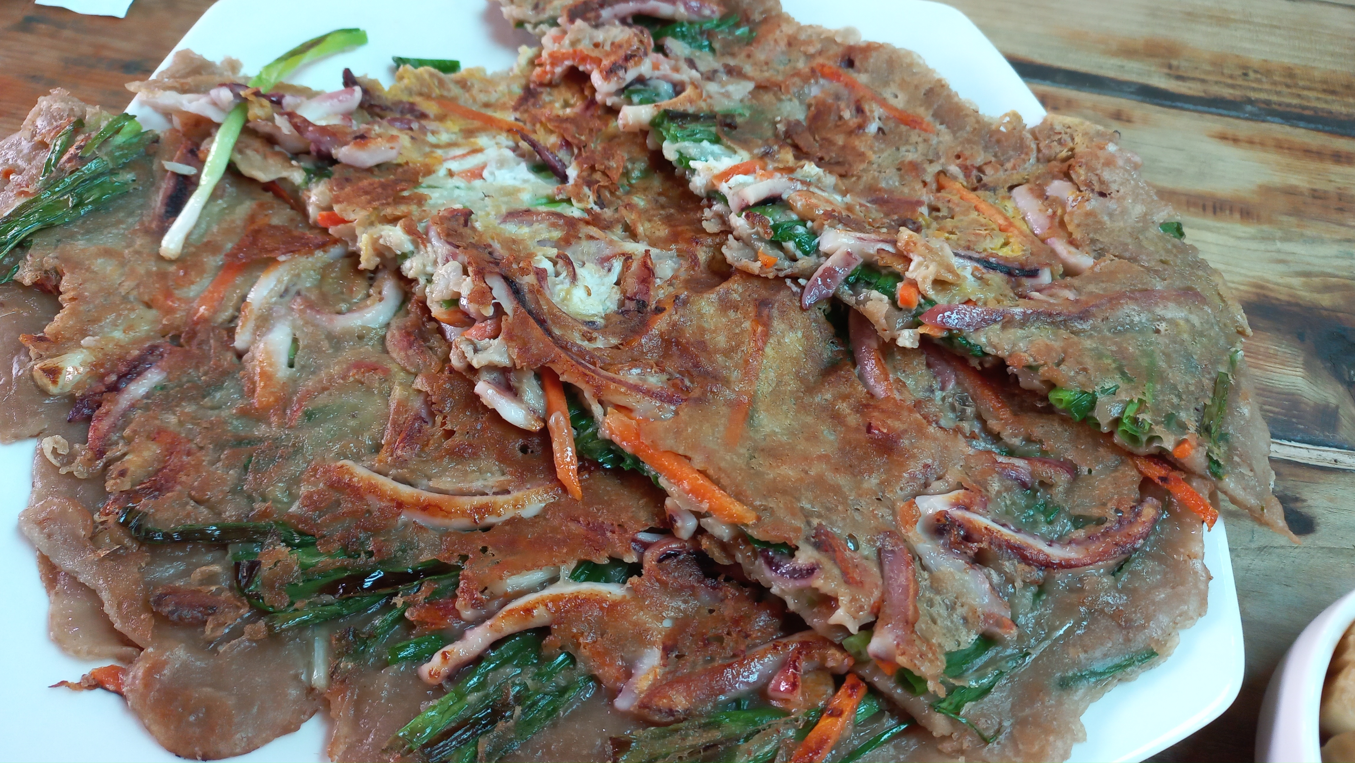 겉바속촉~, 야채와 계란, 오징어 등 해물이 들어가서 정말 맛이 좋은 해물파전입니다.