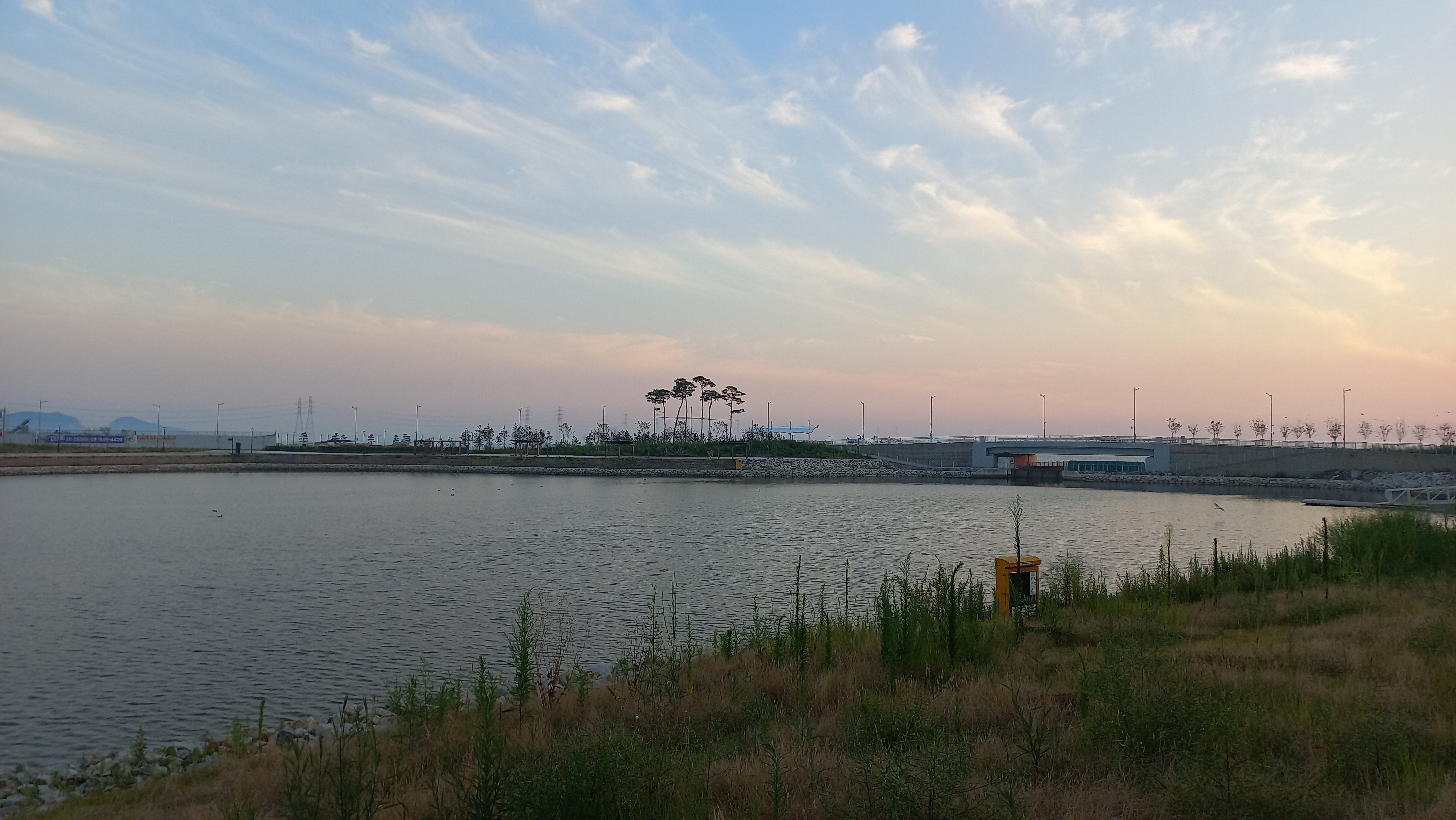 시화호 서쪽으로는 해가 지려는 시각이네요.