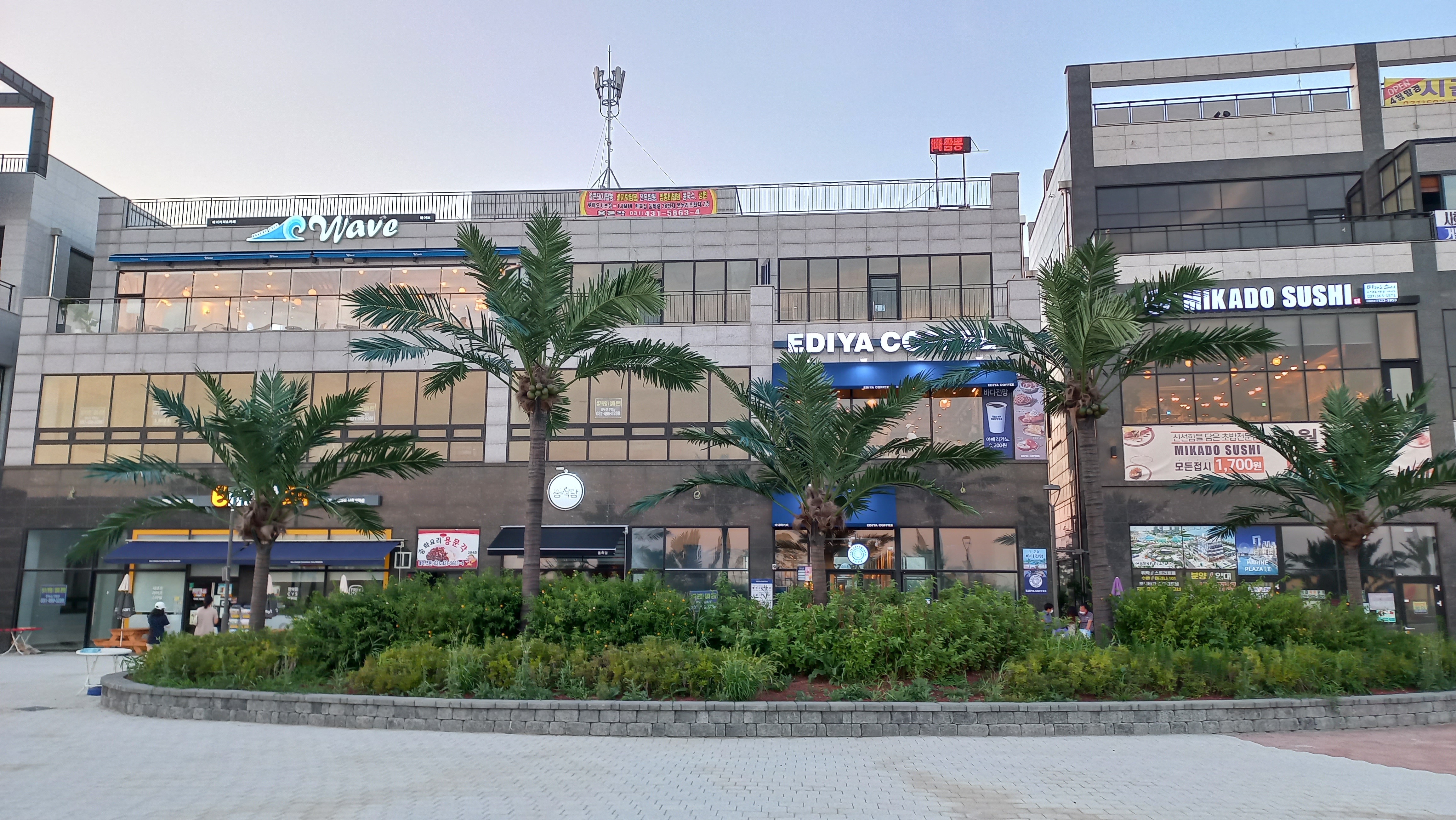 2~3층에 멋진 카페들이 있는데. 웨이브파크 일대를 조망할 수 있어서 인기가 많은 카페들이 있다고 합니다.