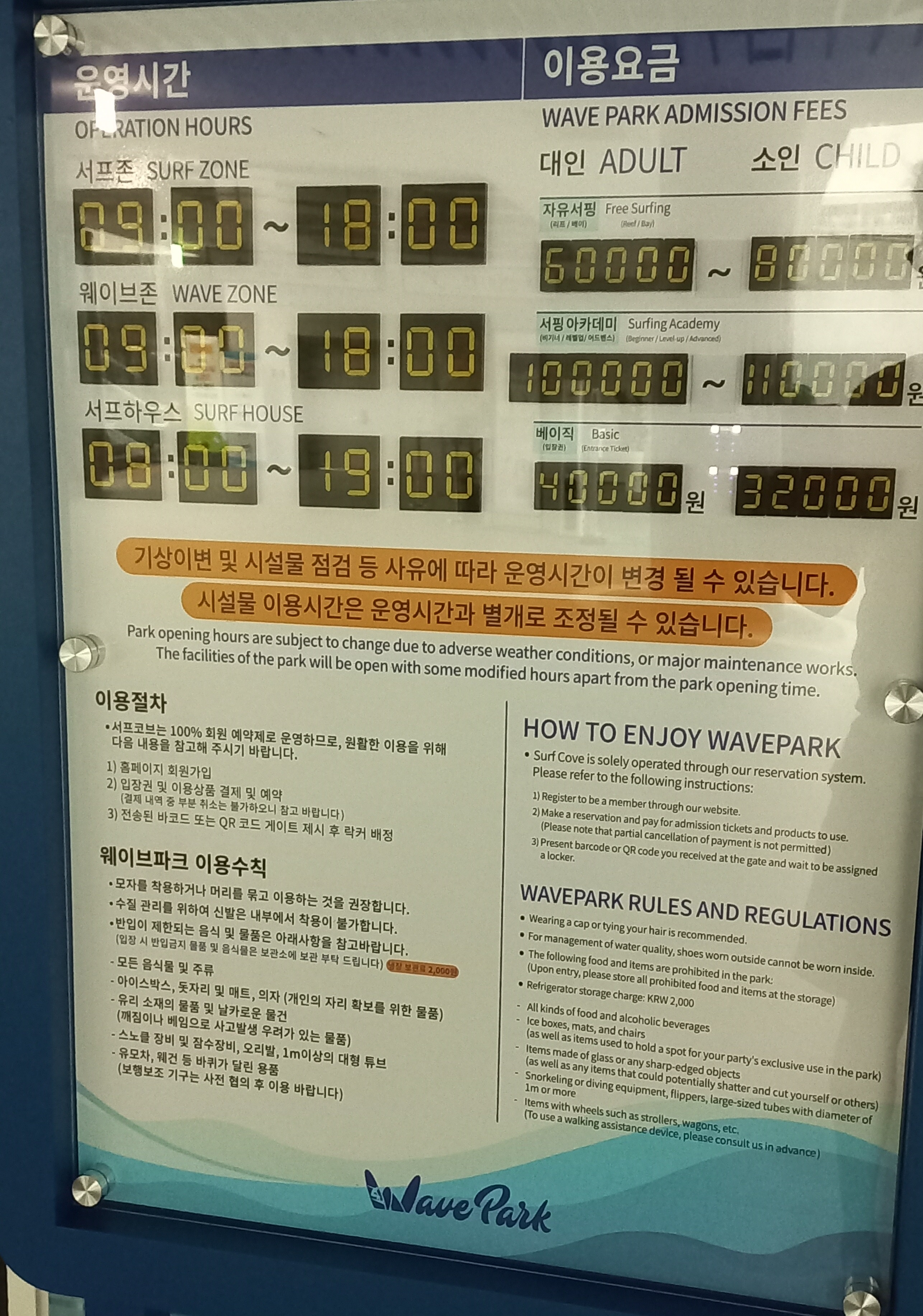 웨이브파크를 이용할 경우 미리 운영시간을 확인하고 방문하면 좋겠습니다.