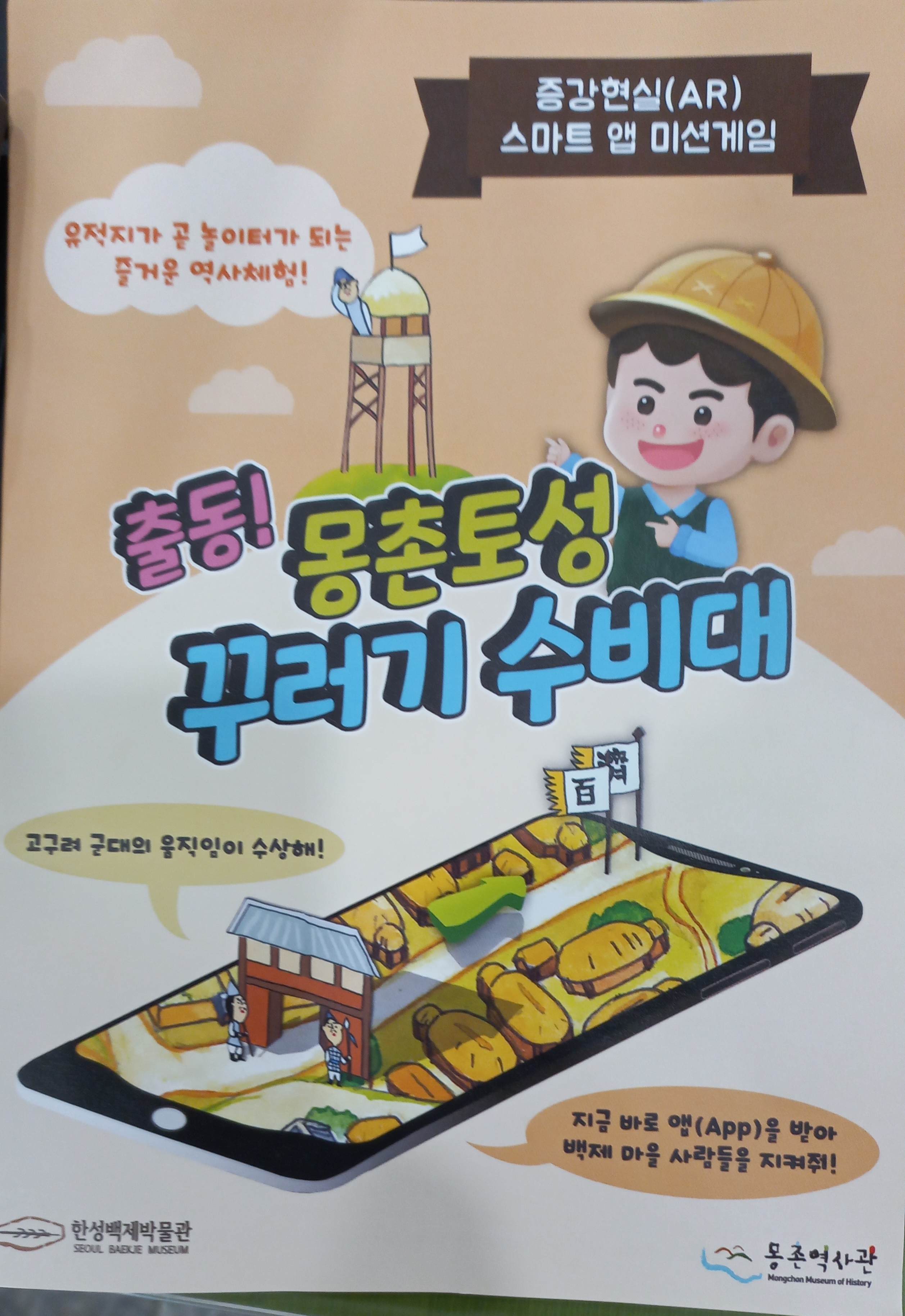 올림픽공원 몽촌토성 일대를 30분 정도 10곳의 방문지에 방문해 증강현실을 이용한 체험과 게임 등을 즐길 수 있습니다.