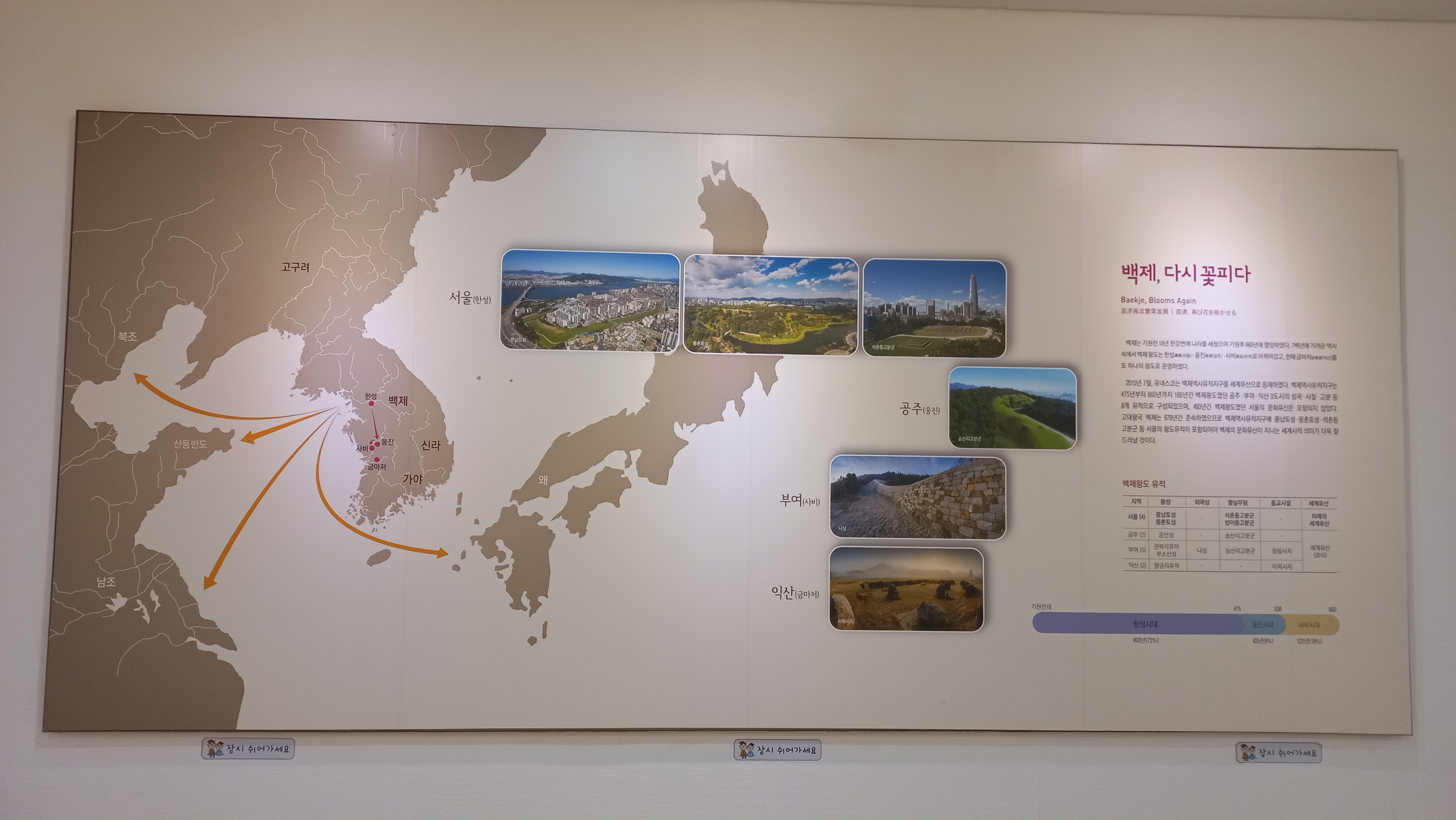 2015년에 유네스코는 공주 부여, 익산 세 개 도시의 성곽, 사찰, 고분 등 8개 유적을 백제역사유적지구로 세계문화유산에 등재되었습니다.