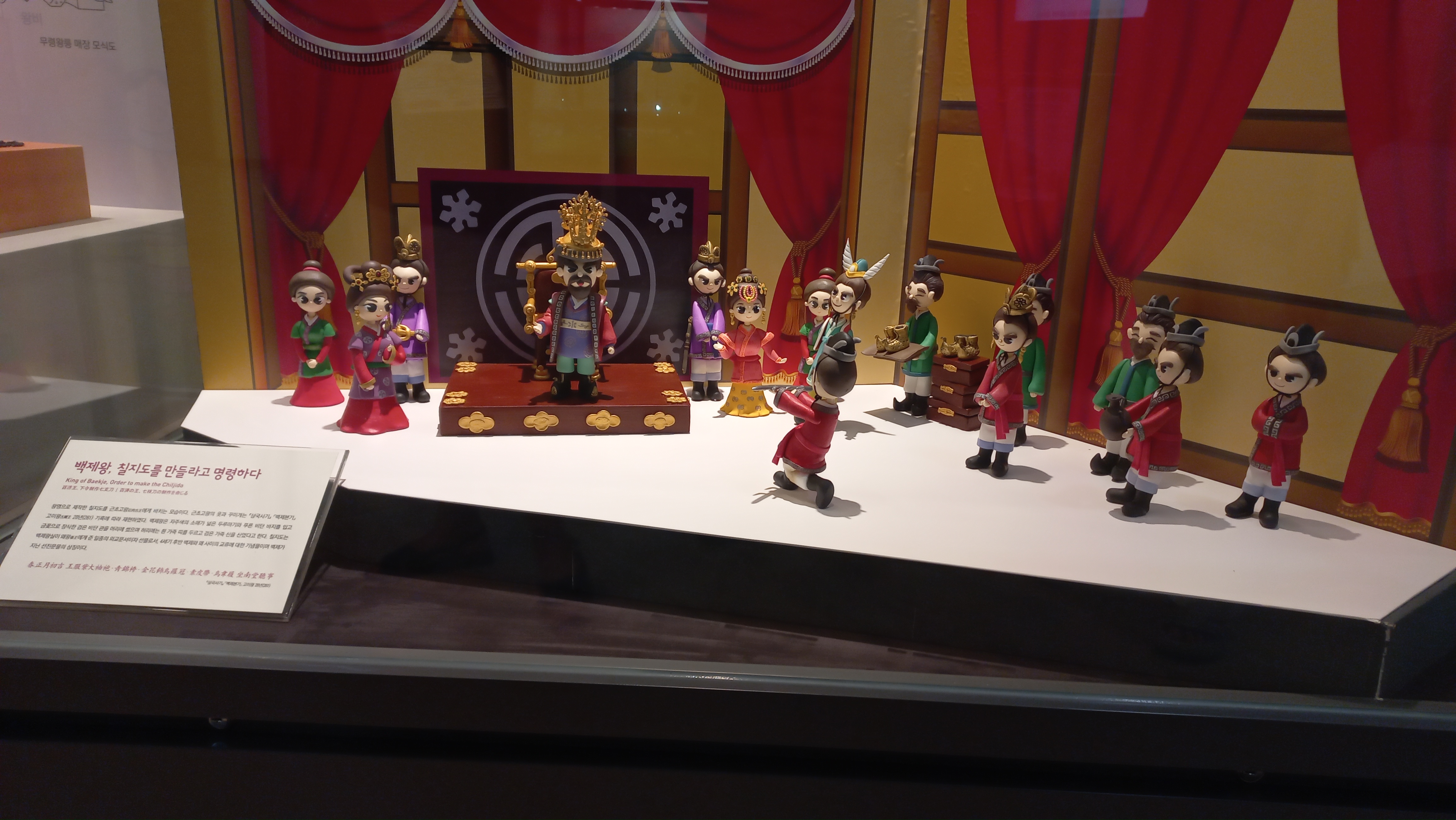필지도는 백제 왕이 왜 왕에게 준 일종의 외교문서이자 선물로 4세기 후반 백제와 왜 사이의 교류에 관한 기념물이자 선진문물의 상징입니다.