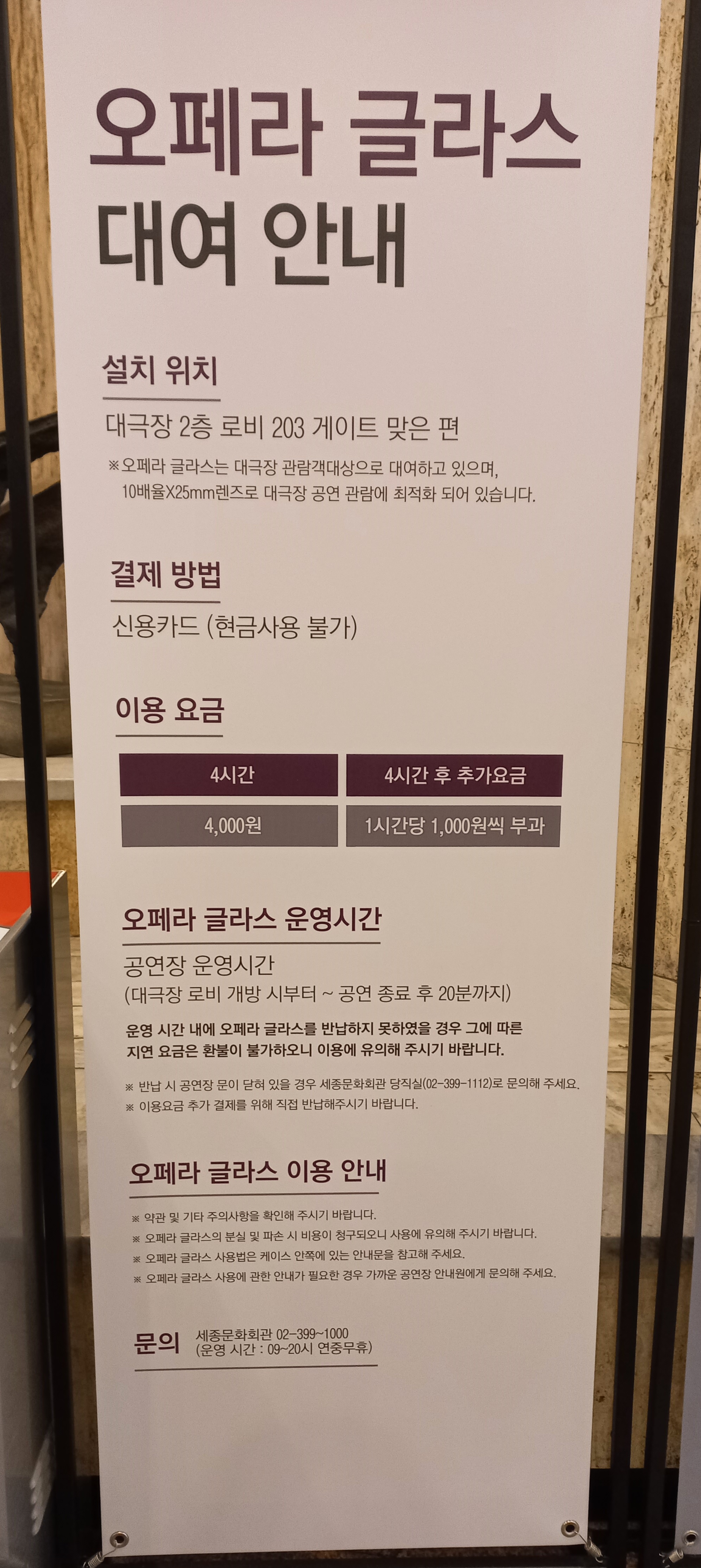 세종문화회관에서는 오페라글라스를 대여해주고 있습니다.