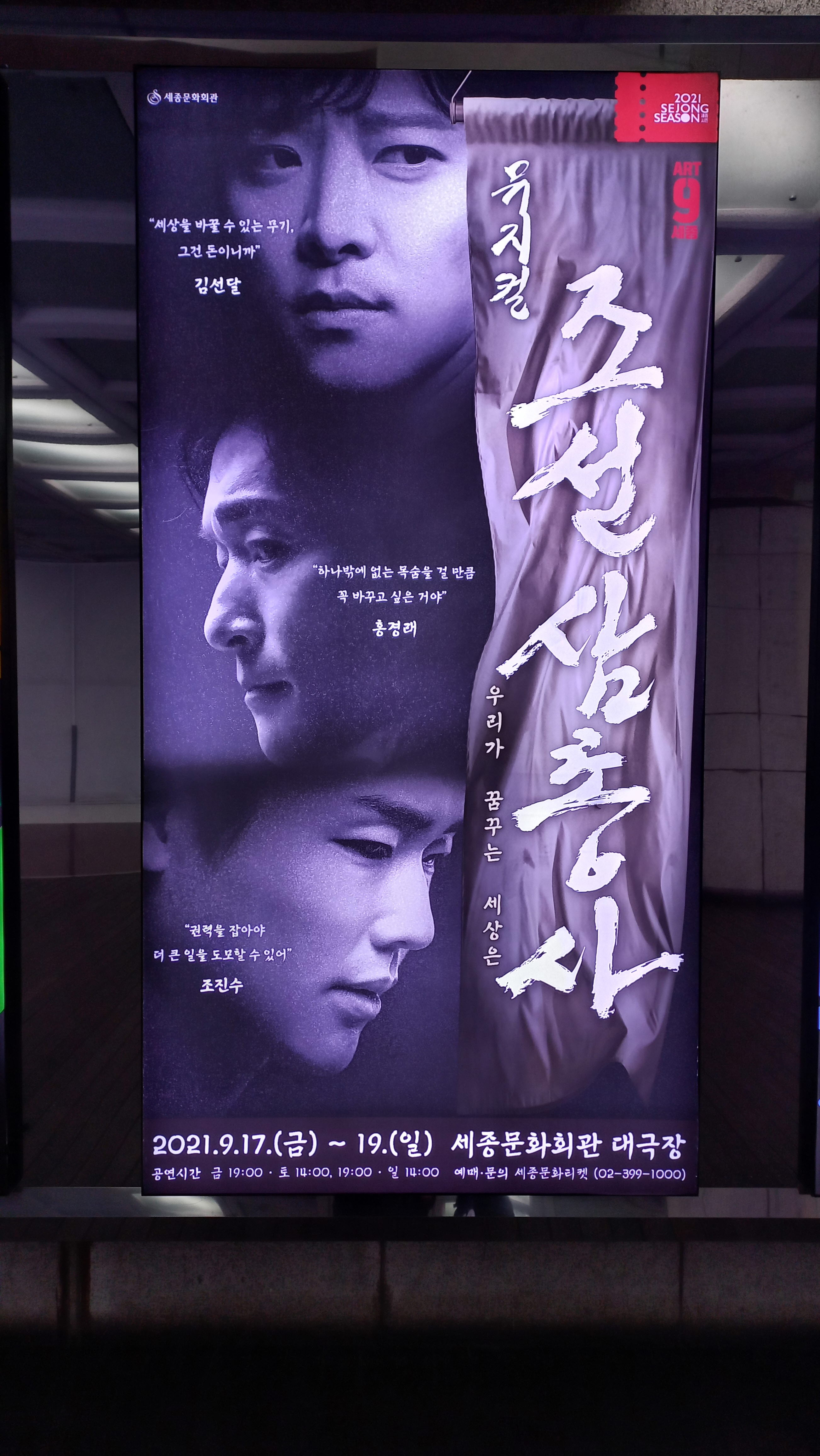 그리고 네 번째 마지막 공연은 9월에 진행되는 뮤지컬로 '조선삼총사'도 안내되어 있습니다.