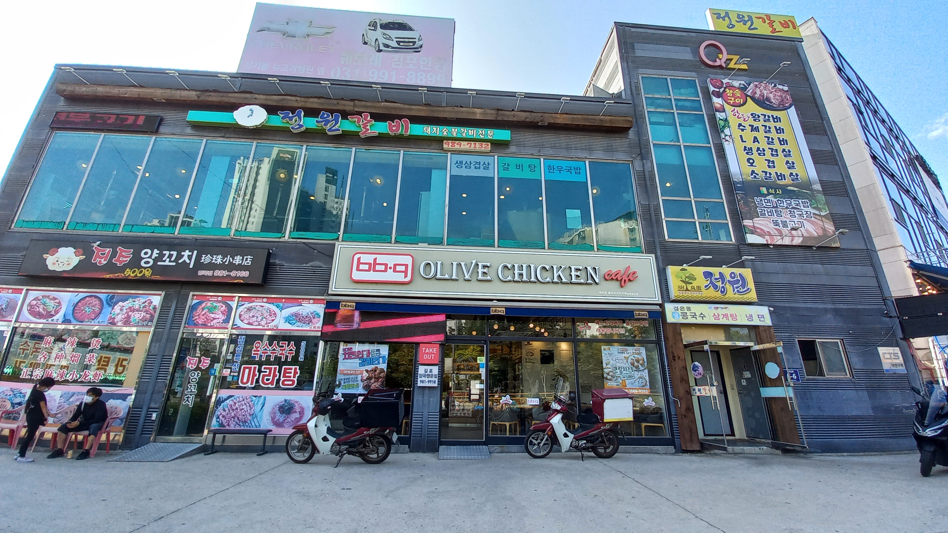 1층엔 bbq 올리브치킨과 진주양꼬치가 있고, 정원식당은 2층으로 올라가면 됩니다.