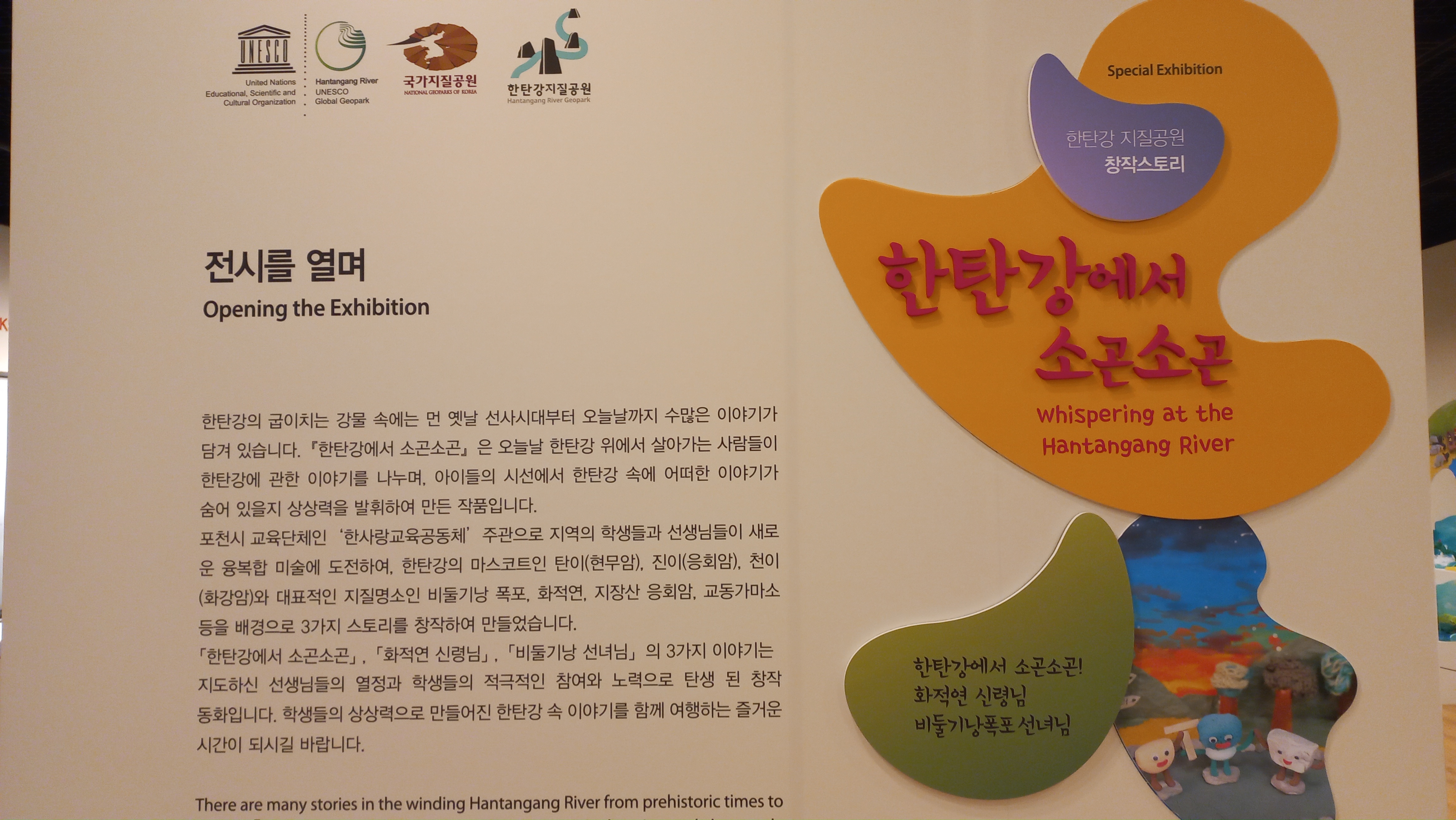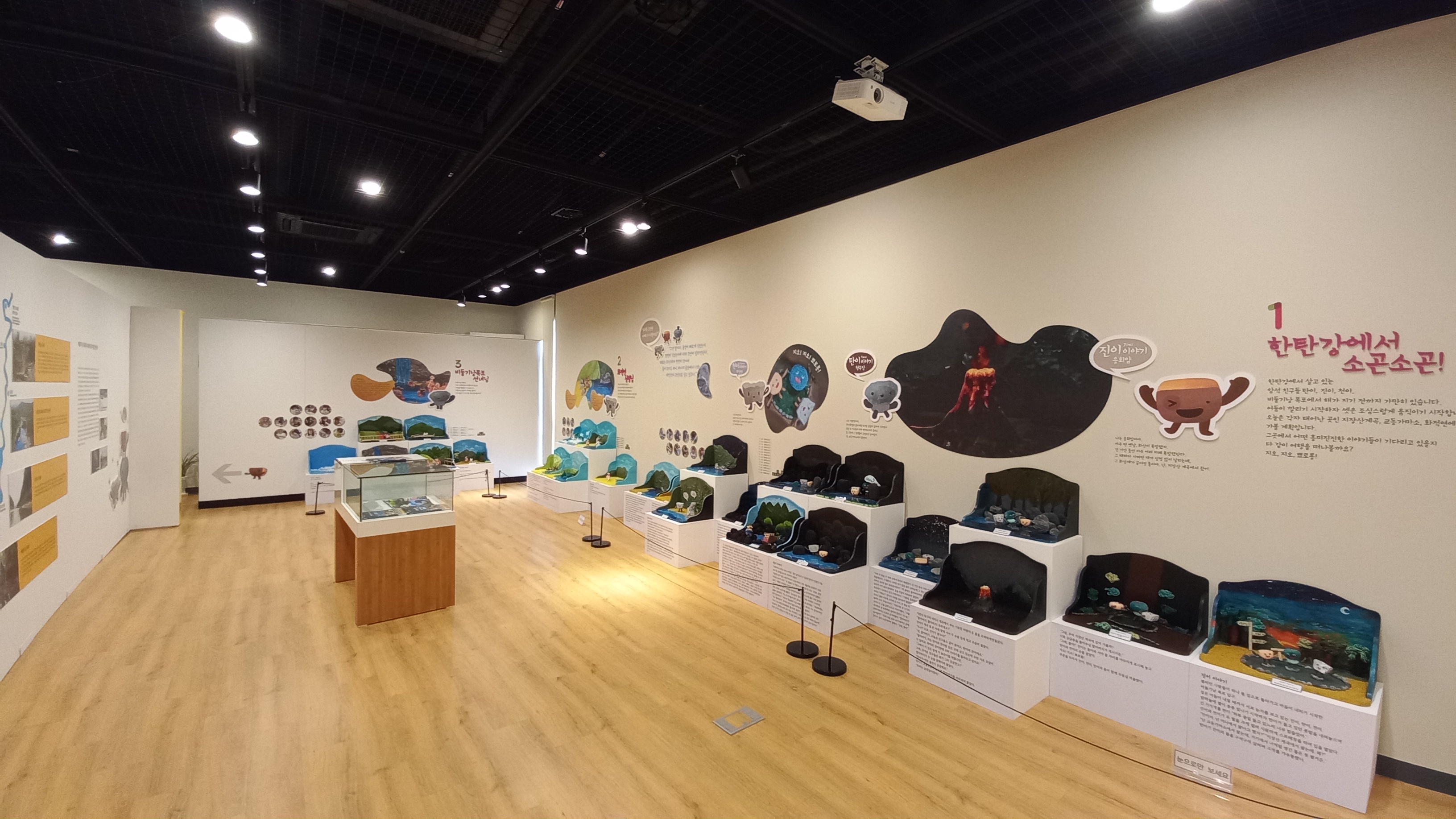 한탄강지질공원센터 기획전시관에는 유네스코 세계지질공원과 한탄강에서 소곤소곤이라는 창작스토리가 전시되고 있습니다.