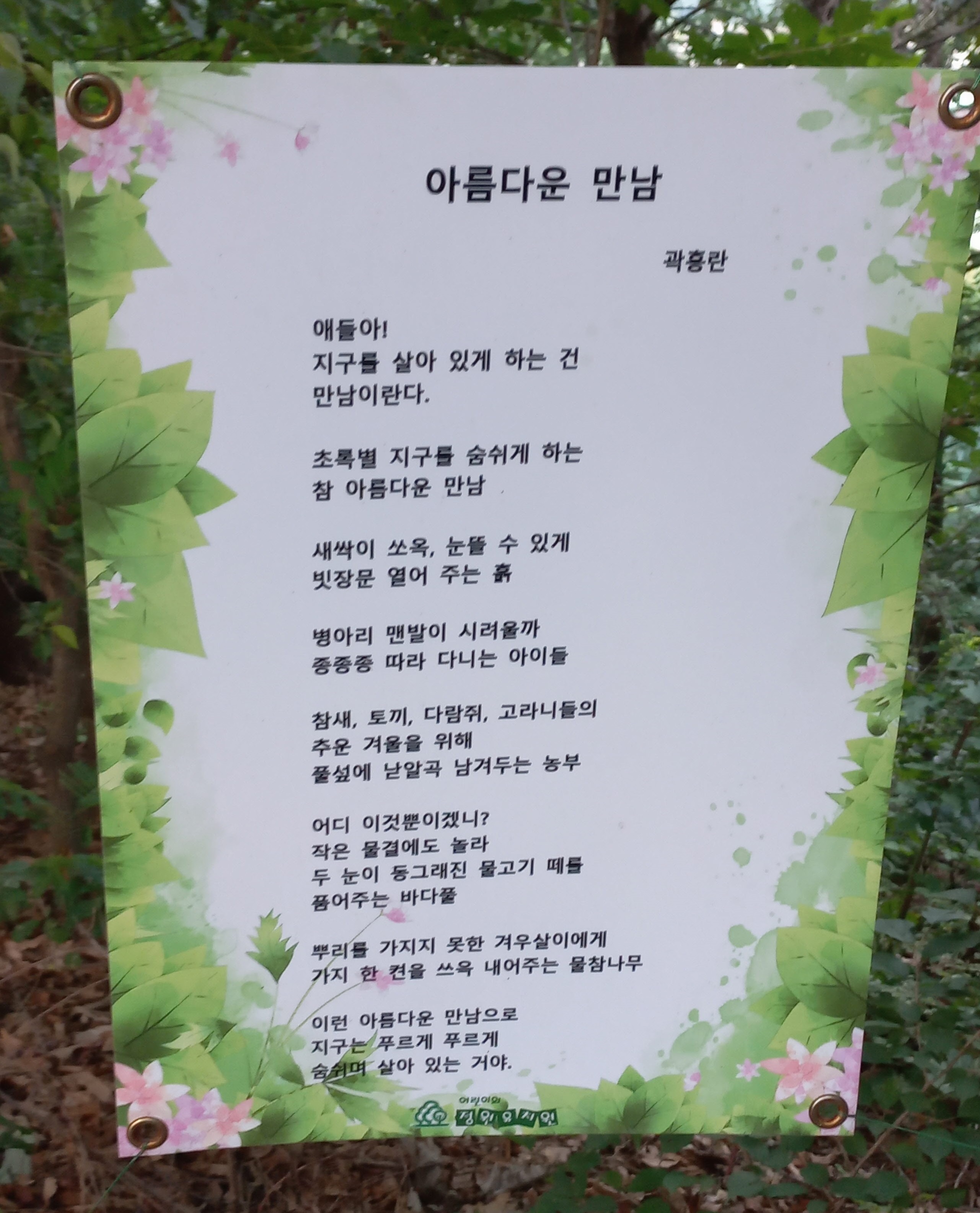 갈산 생태순환로에는 아름다운 산책길과 함께 좋은 시가 적혀있어 읽는 재미가 있습니다.
