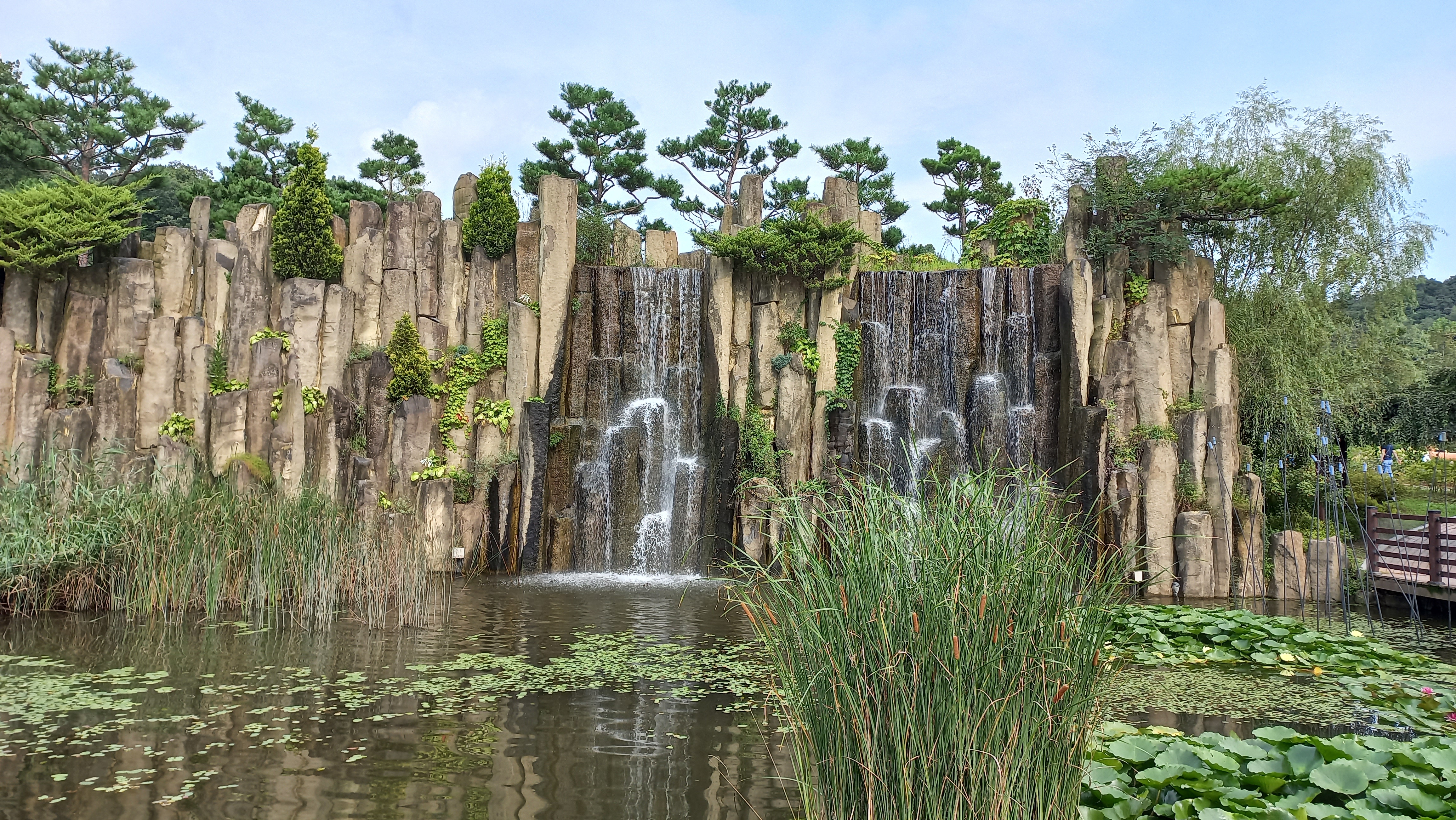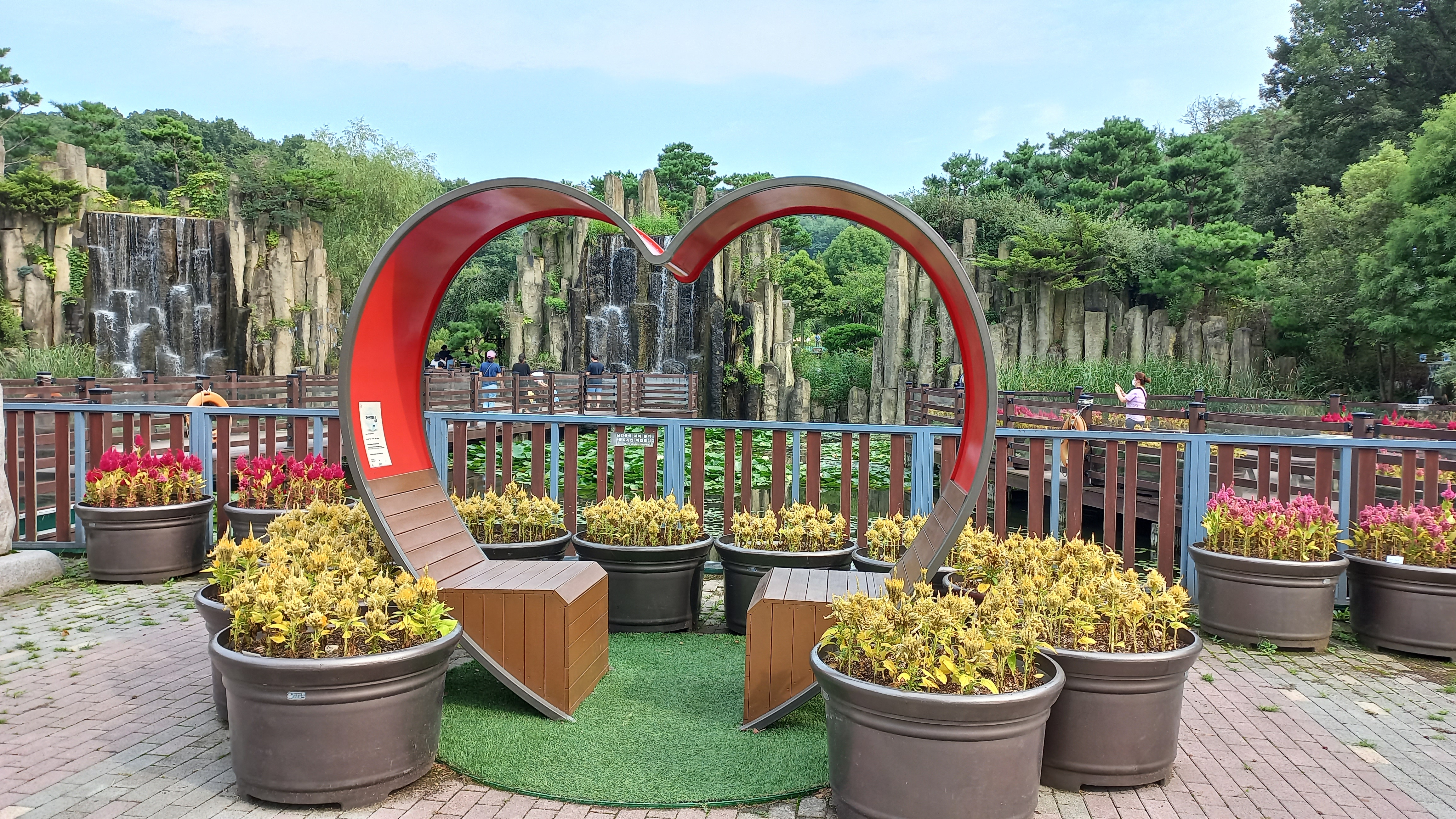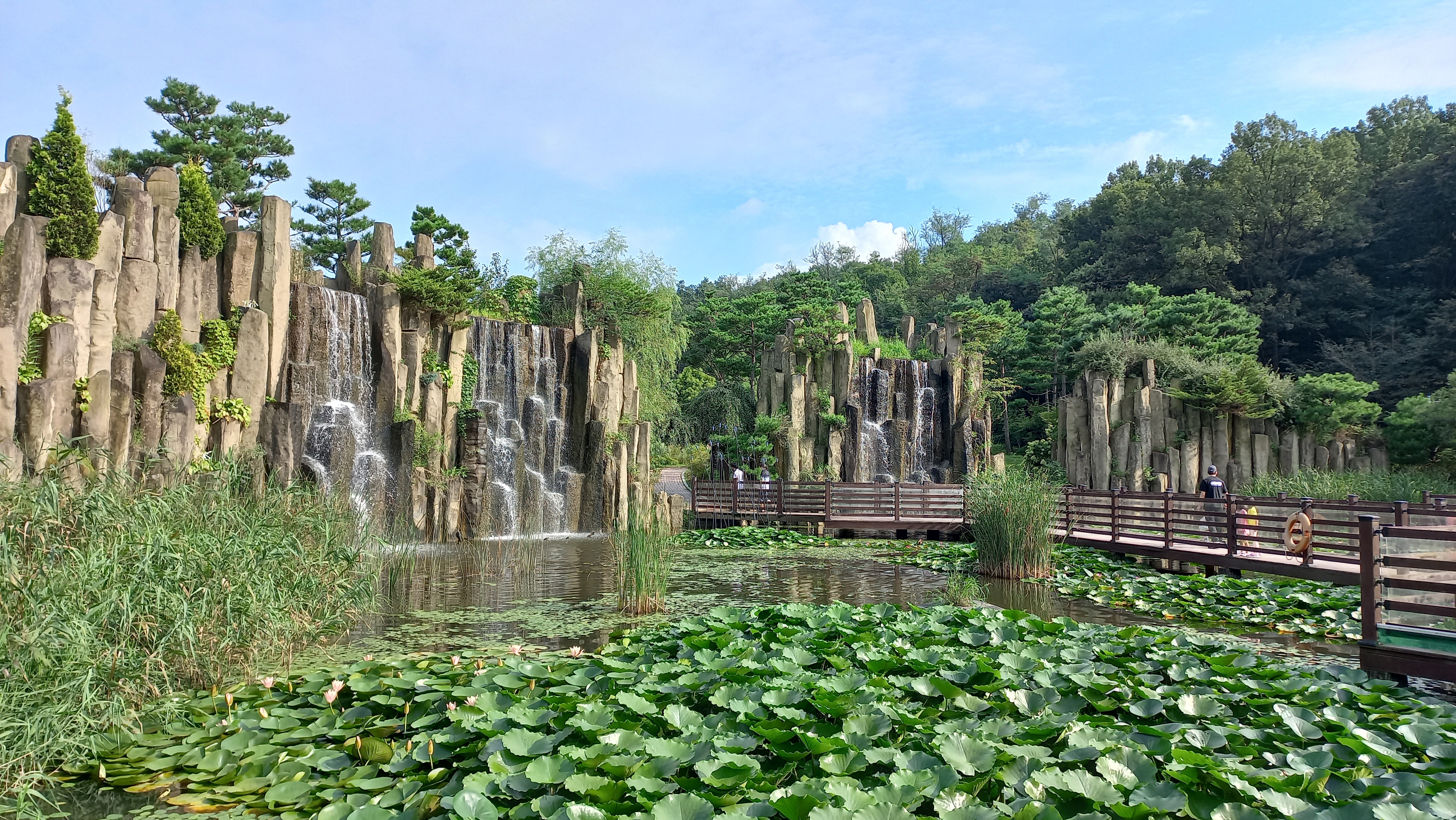 폭포를 배경으로 하는 포토존들이 마련되어 있습니다.