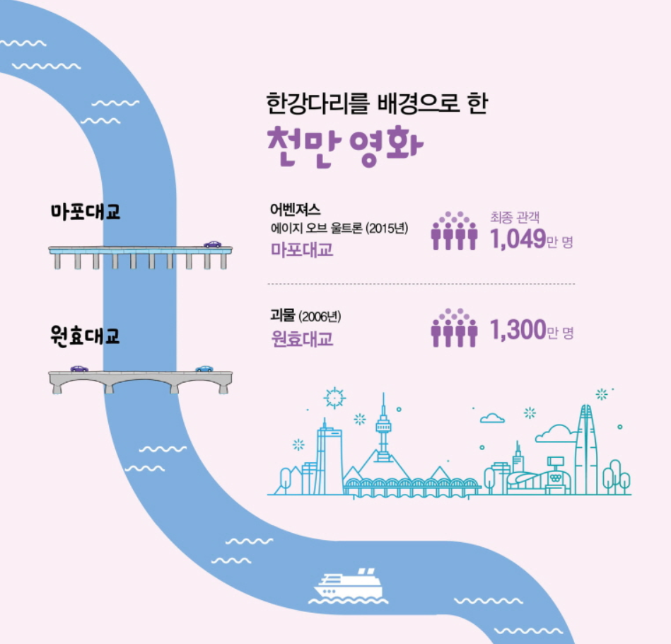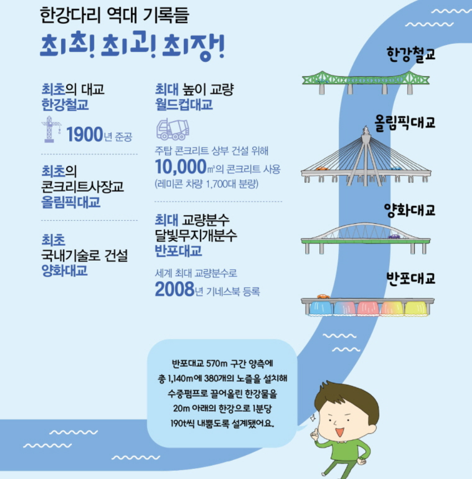 이번에 소개한 한강다리 TMI에서는 이런 한강다리의 최초, 최고, 최장 등 의미있는 한강다리 통계들이라 흥미로운 이야기들이니 살펴보시기 바랍니다.