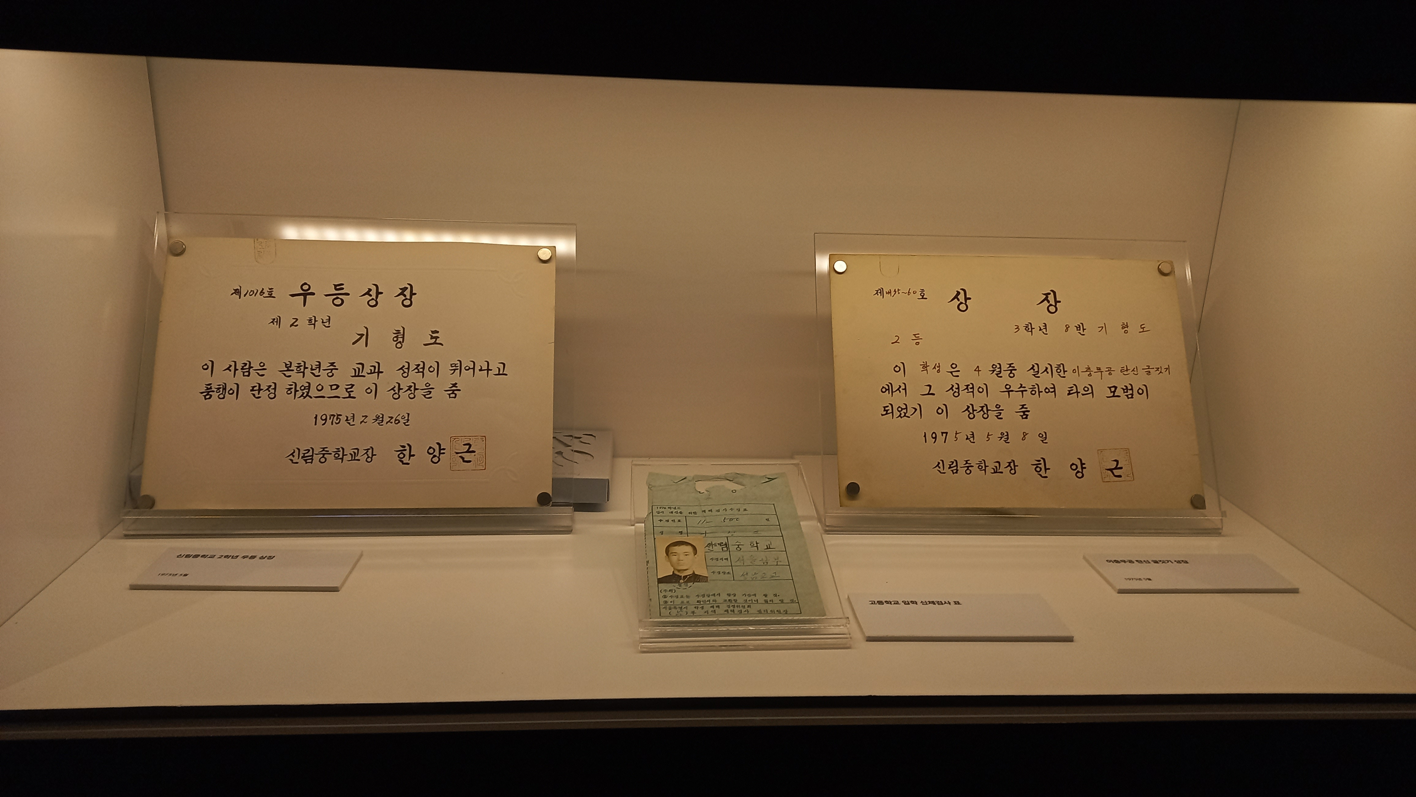신림중학교 시절 우등상과 글짓기대회 상장입니다.