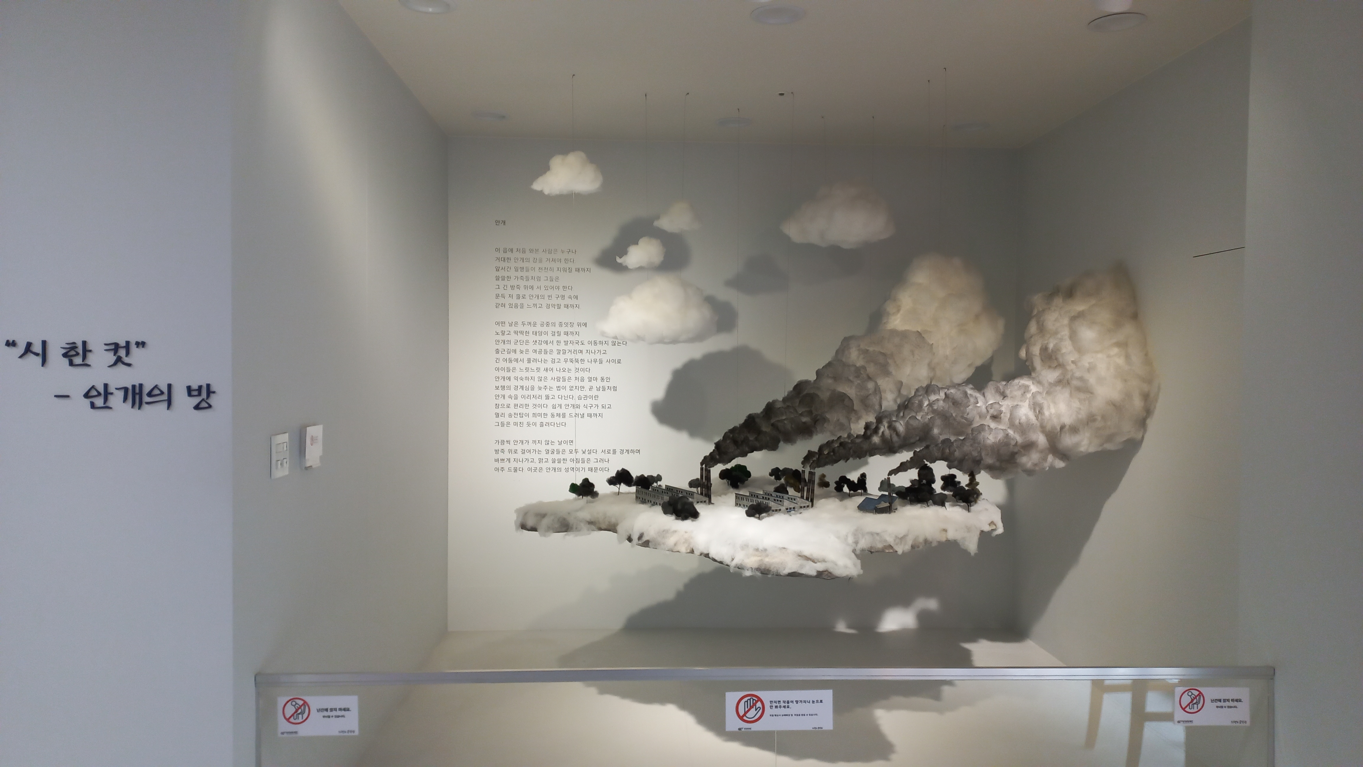 3층에서 문학강의를 듣는 몇 명을 제외하곤 관람객이라곤 우리 식구 세 명뿐이라 편안한 의자에 앉아 한참을 기형도 작품을 읽다가 나왔습니다.