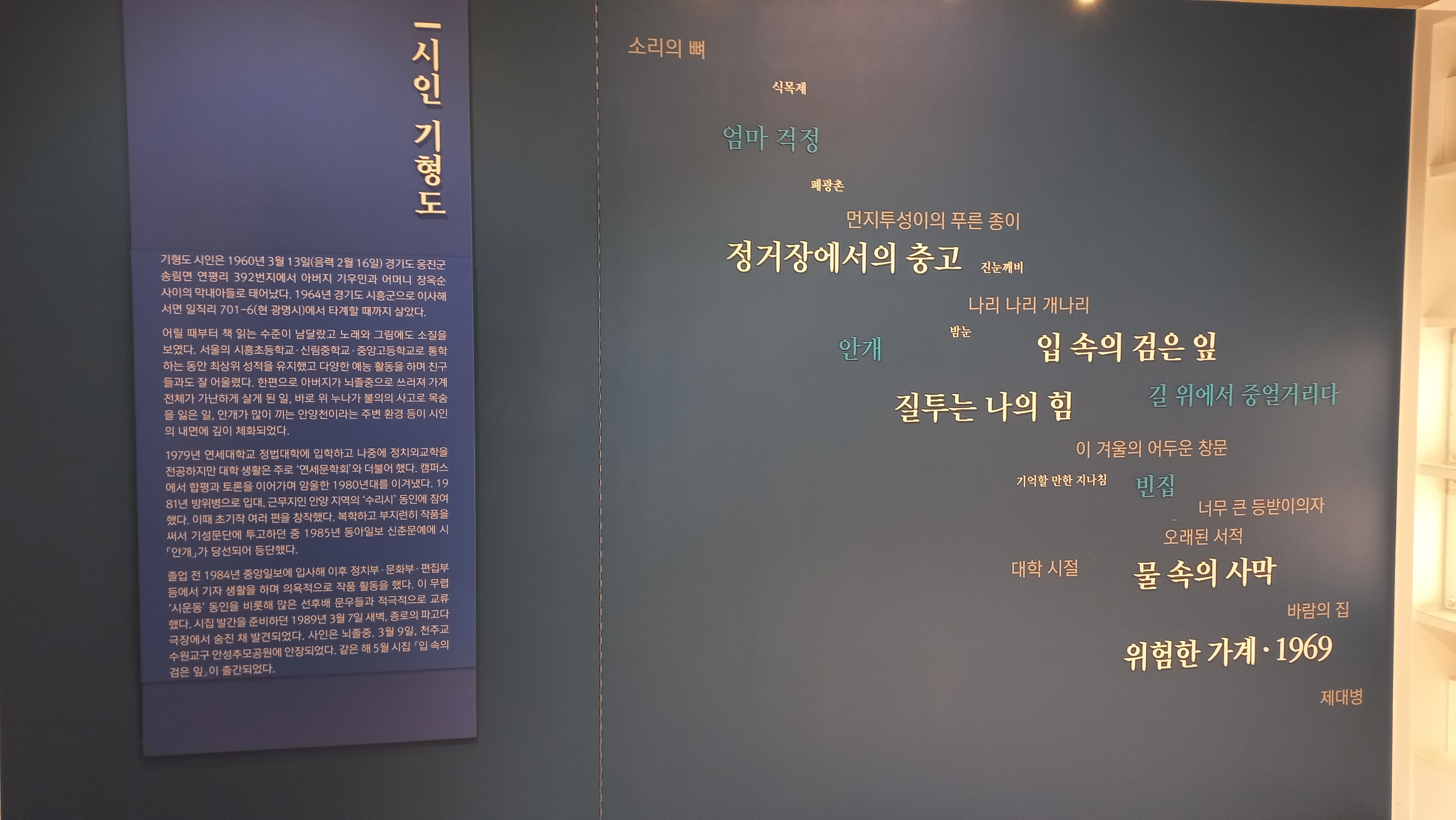 지난 주말 광명 나들이 갔다가 지나가는 길에 기형도 문학관이 보이길레 들러 문학관 관람을 하고 기형도의 문학집을 읽는 여유로운 시간을 보내고 왔습니다.