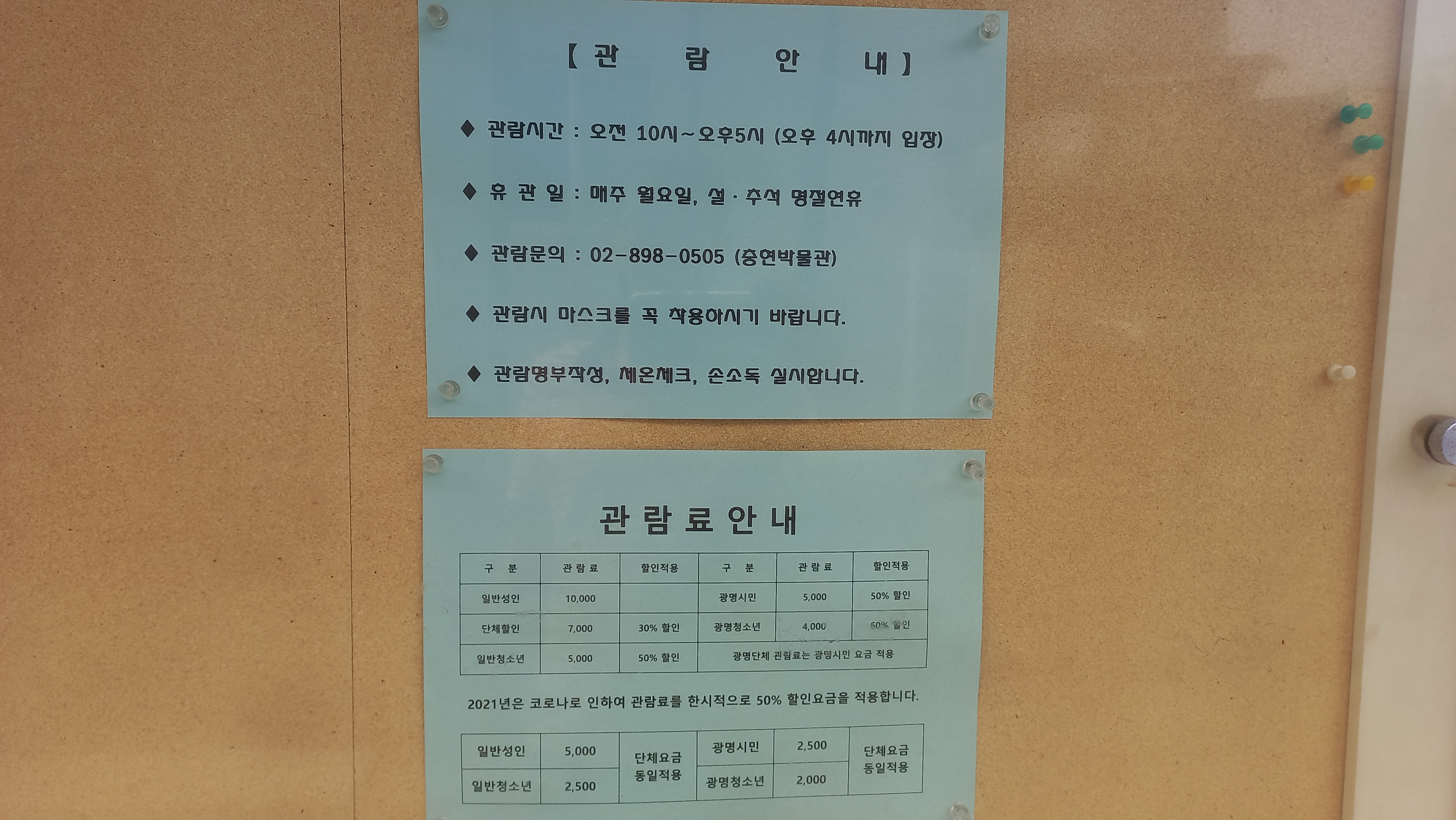 관람료(입장료) 성인 10,000원, 청소년 및 군인 5,000원, 광명시민 5,000원