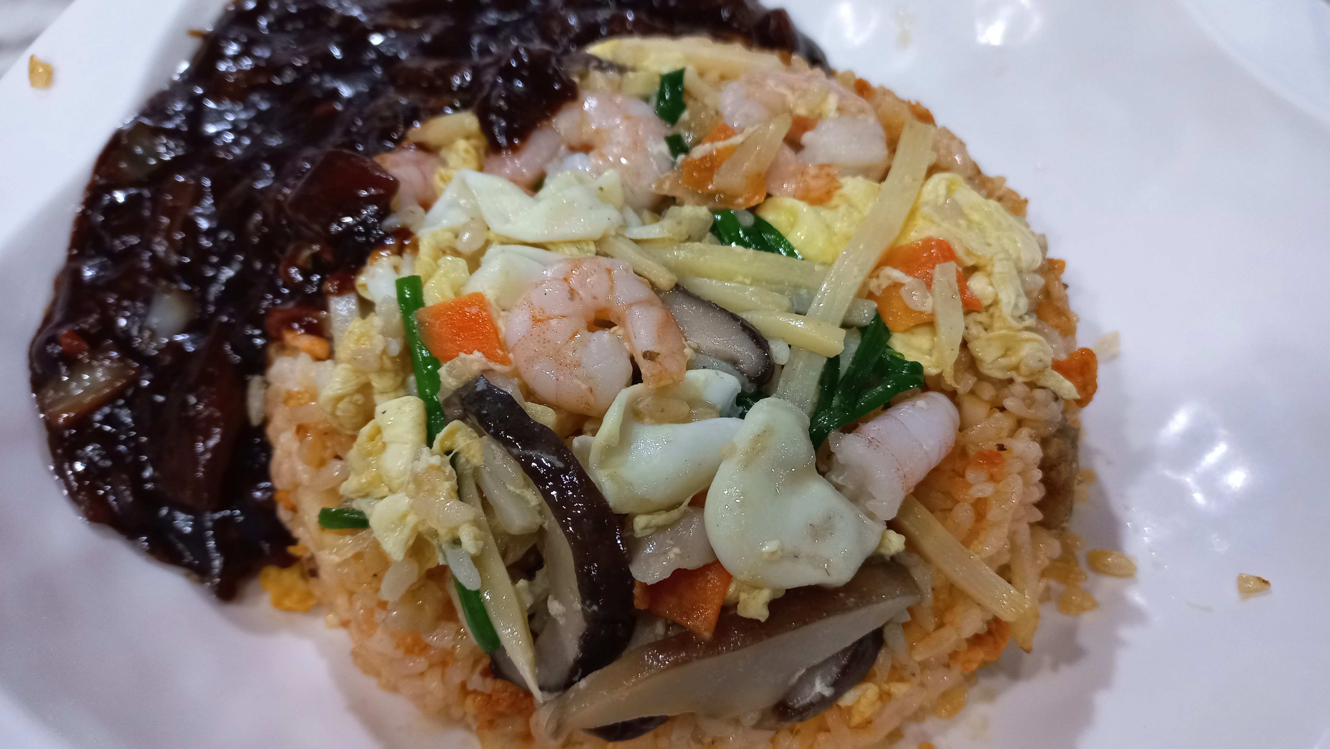 새우, 오징어, 각종 야채를 볶아 짜장 소스를 첨가했는데 고소하고 맛있는 볶음밥이었습니다.