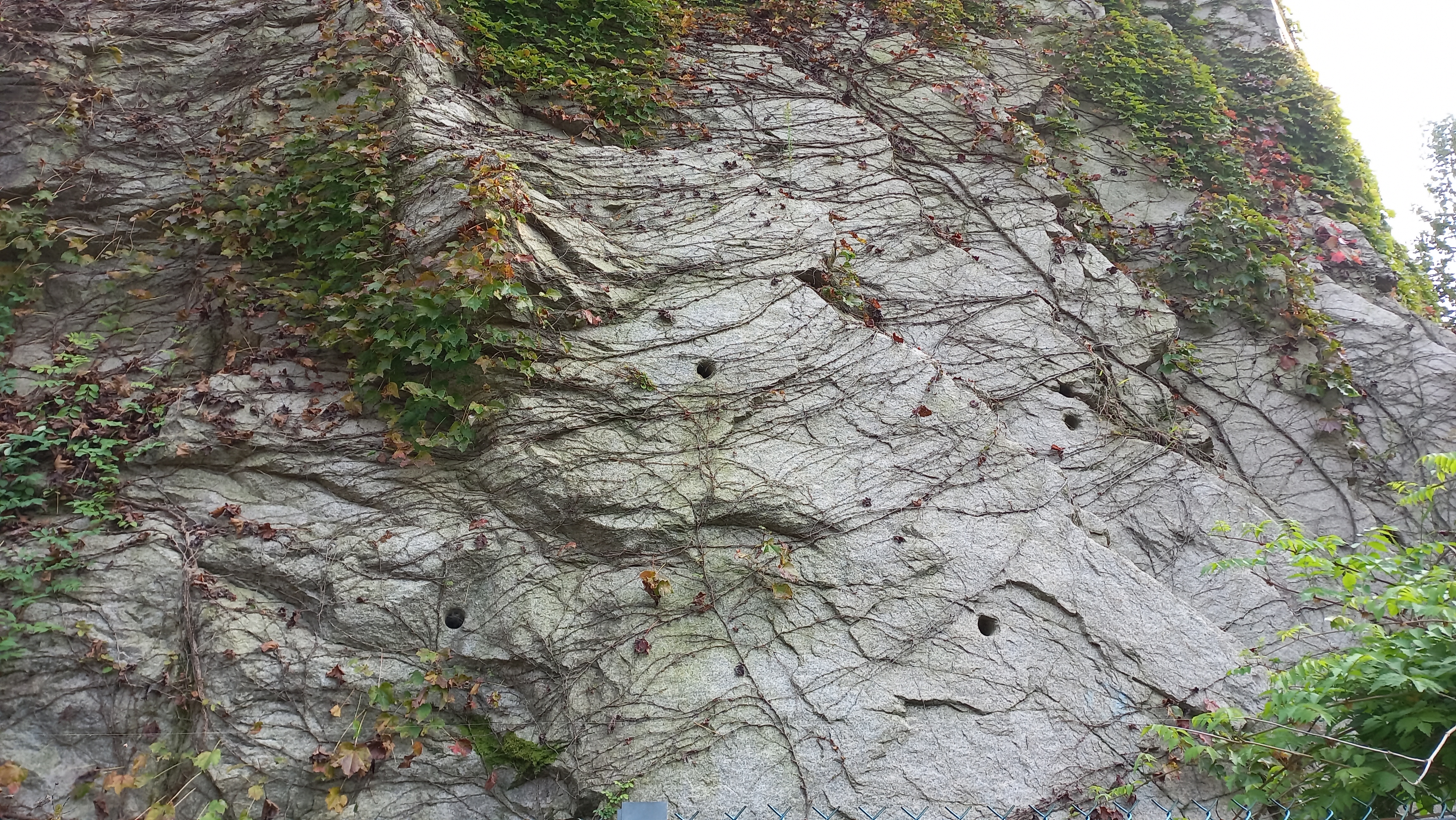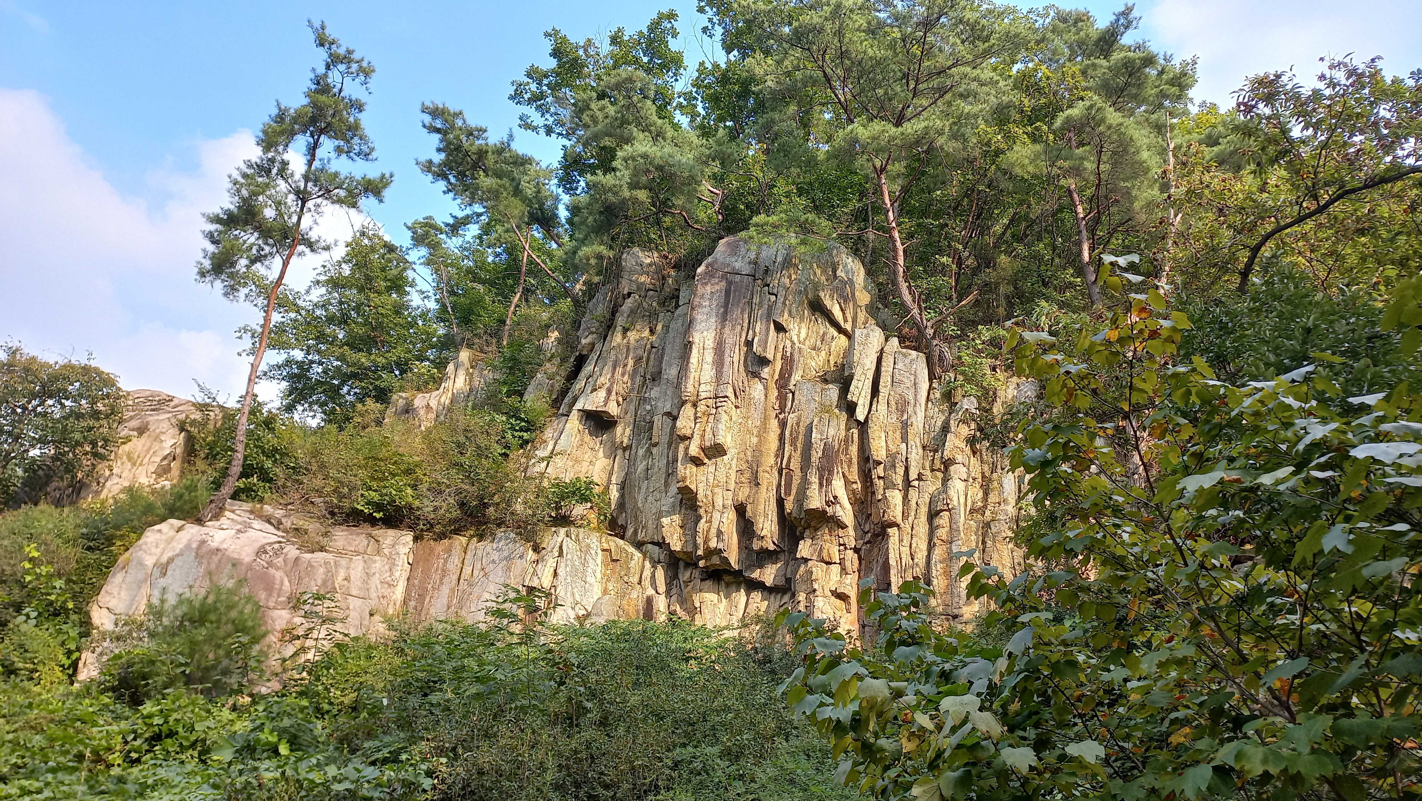 천주산 아래 50미터 높이의 화강암 수직절벽