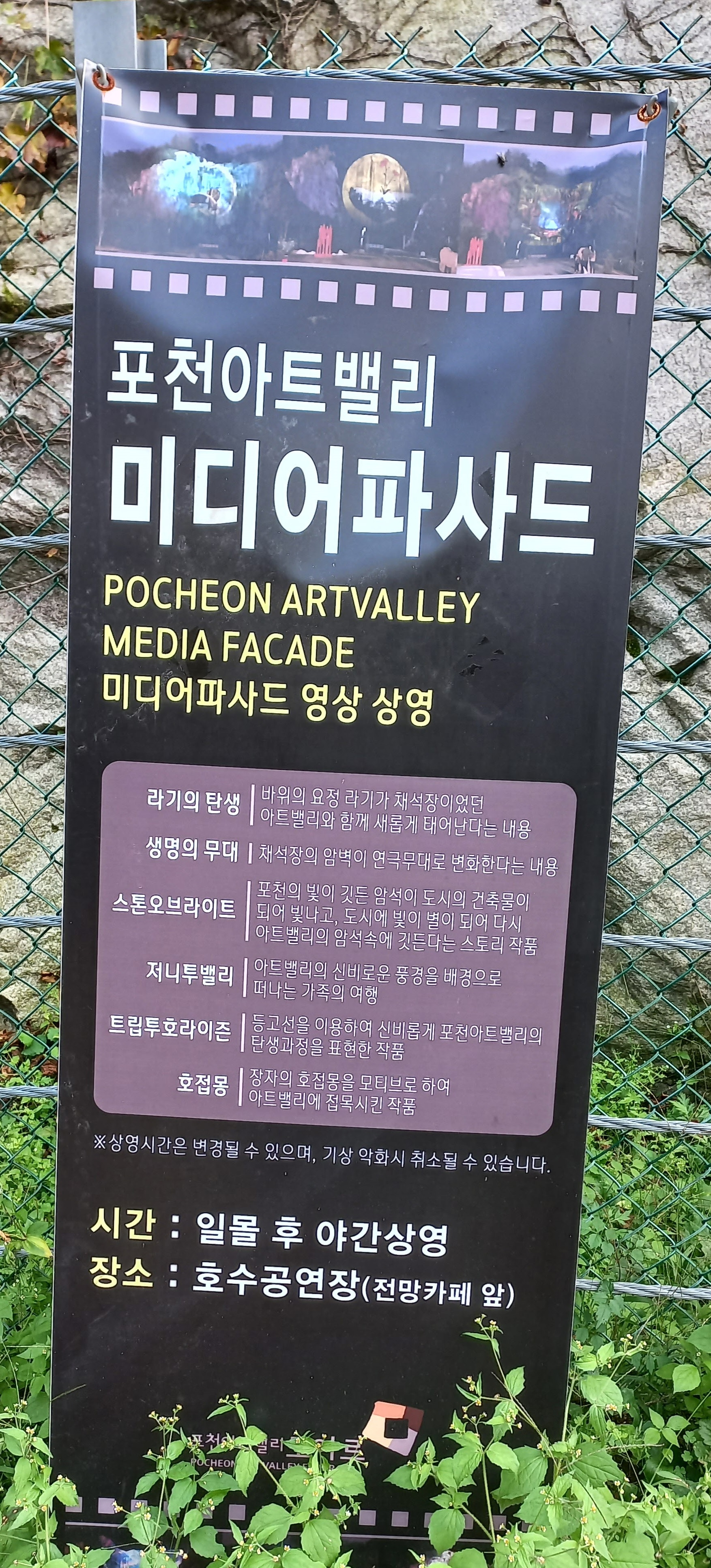밤이되면 이곳 호수공연장 화강암 절벽에서는 미디어파사드가 상영된다고 합니다.
