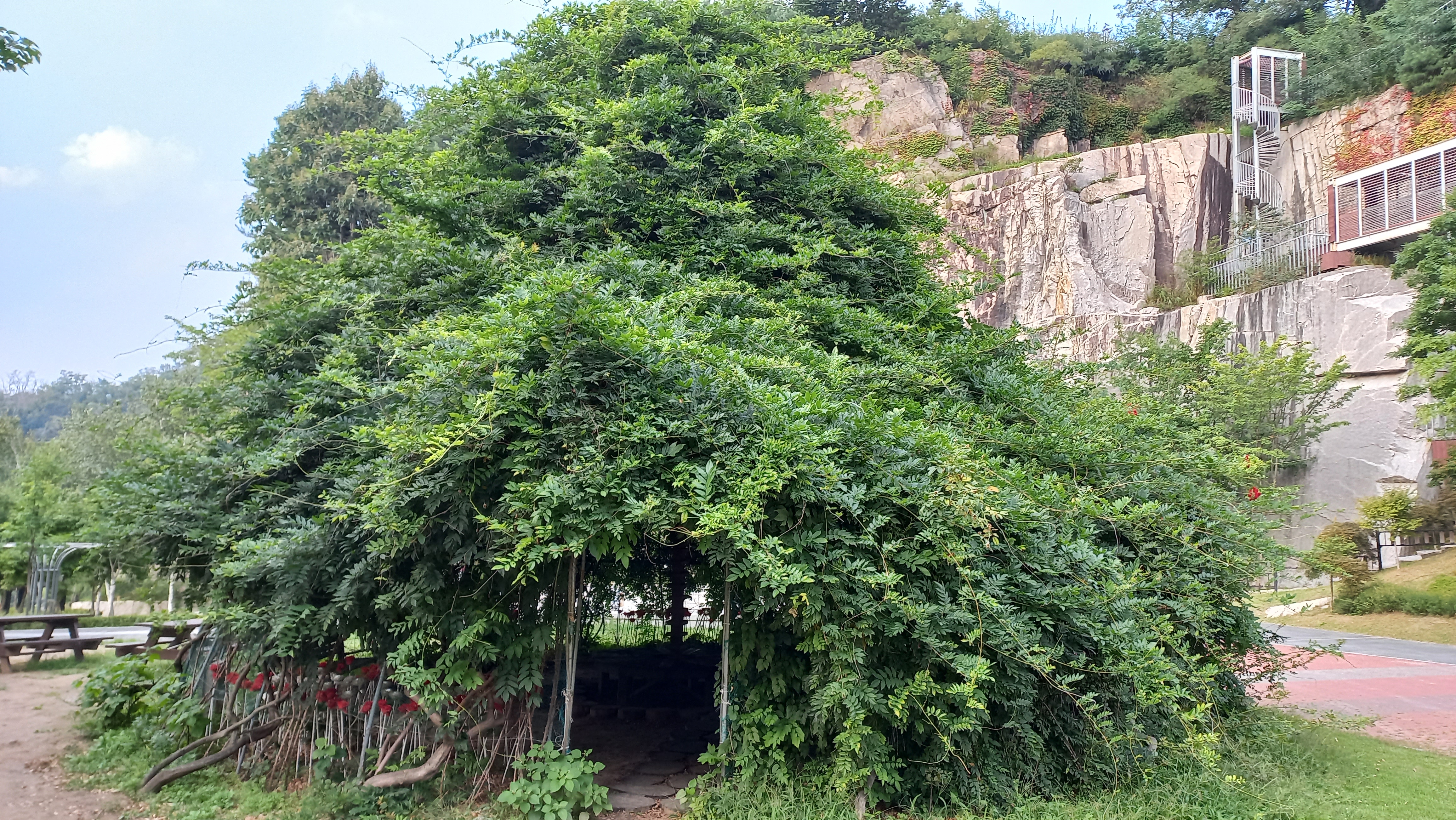 등나무 같은 식물을 이용하여 사방이 막힌 쉼터가 만들어진 곳입니다.