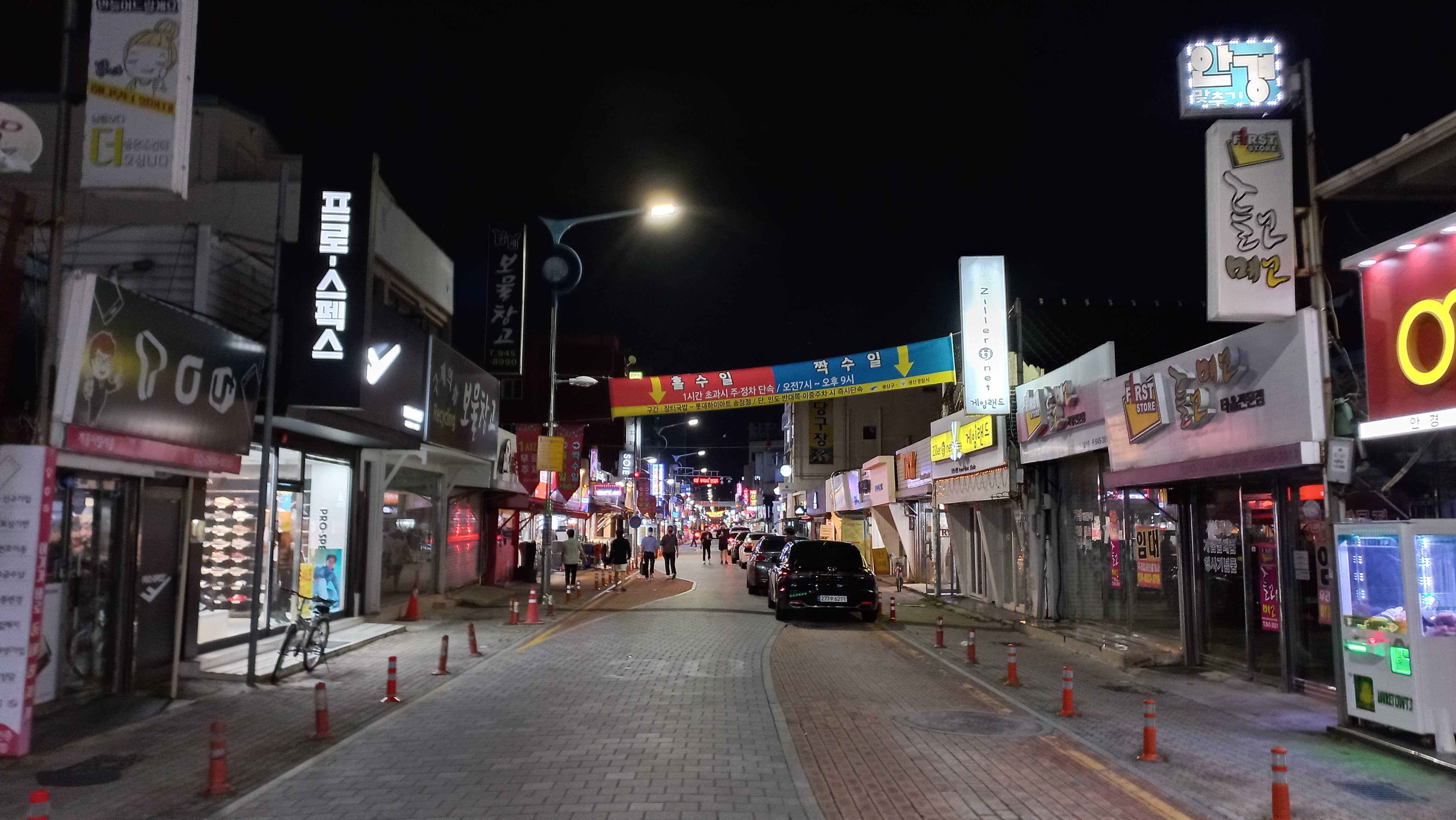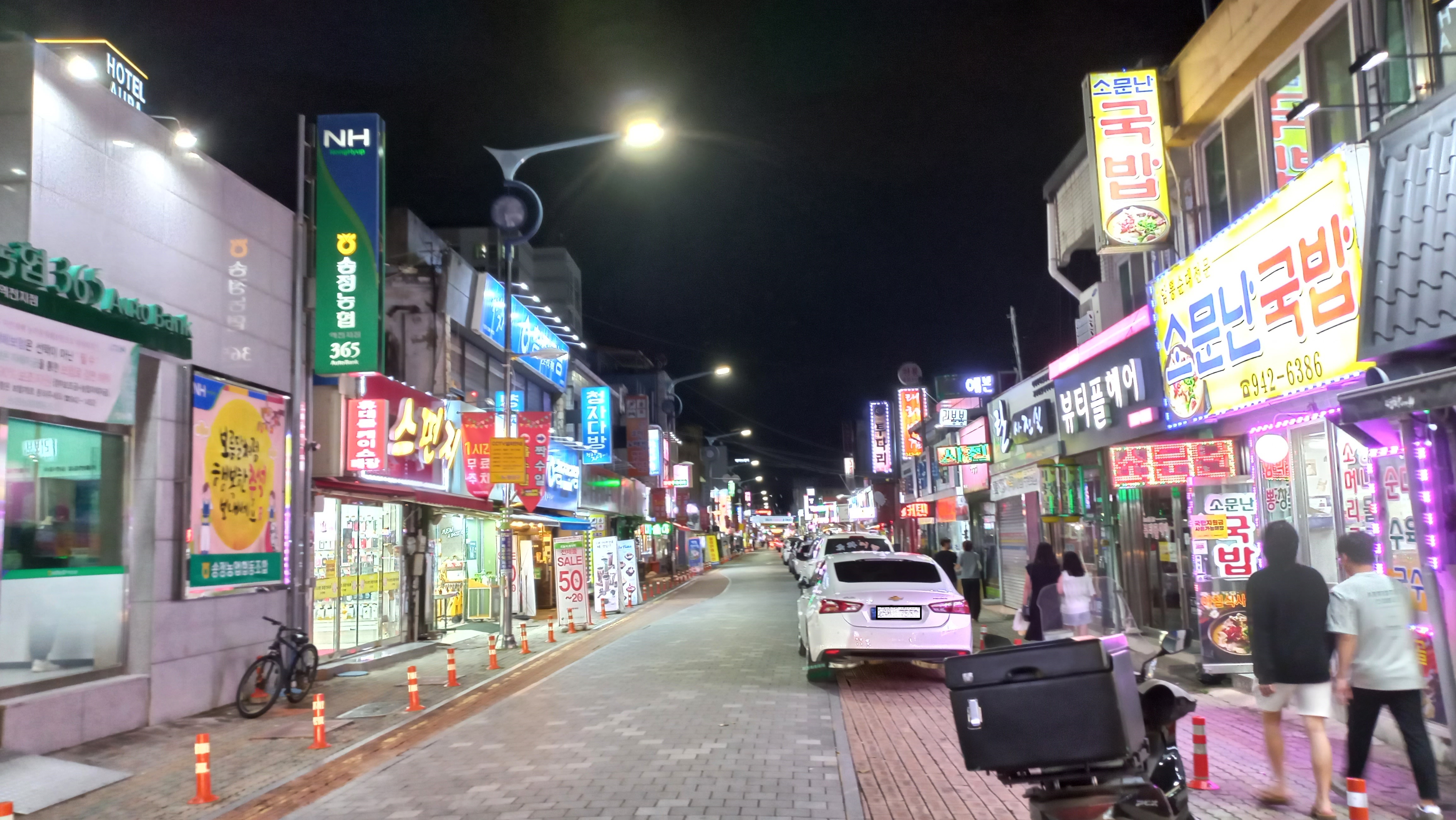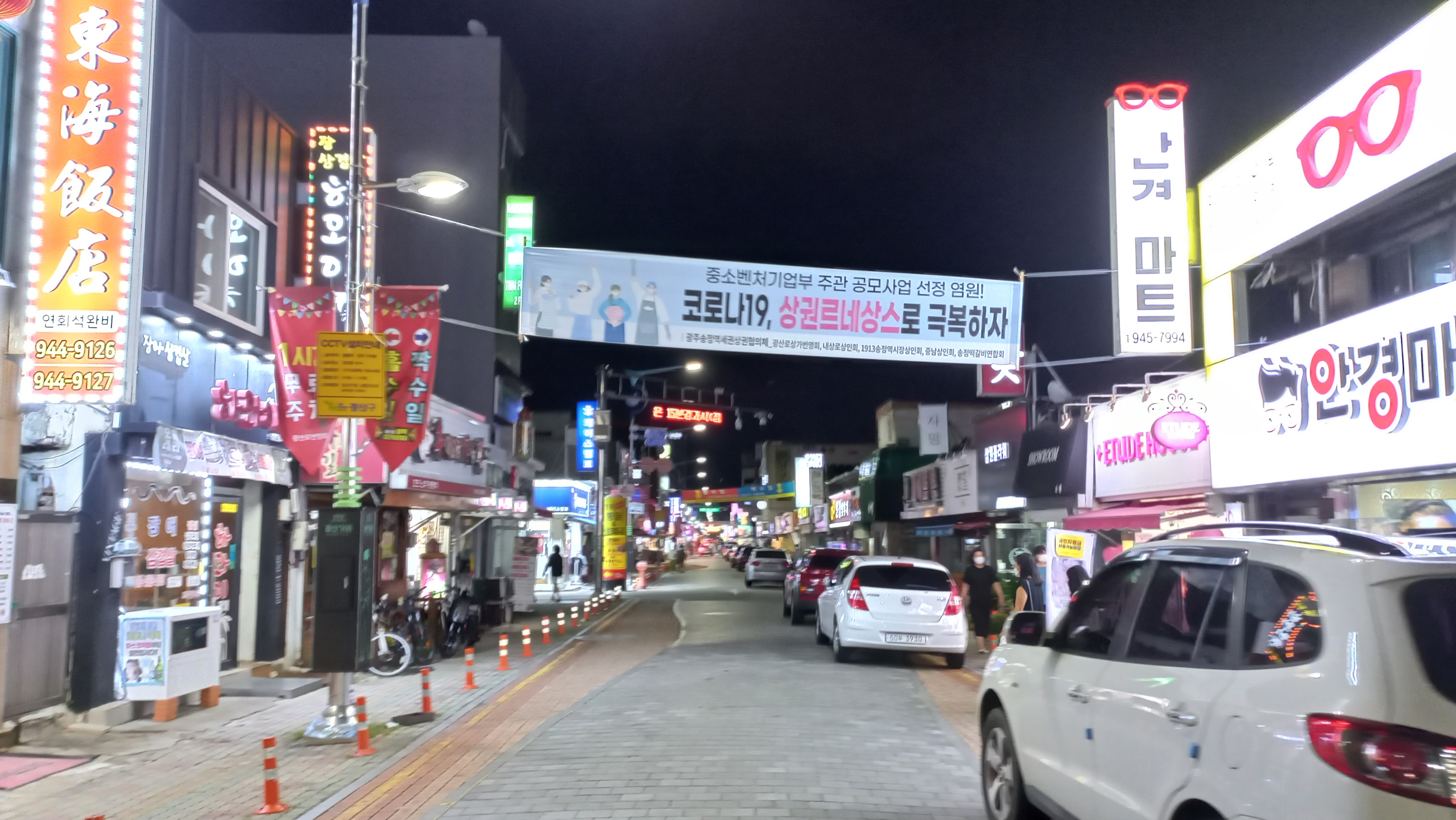 명절 연휴 밤 8시 정도 되는 시각인데 상가들은 많은데 생각보다 인파가 없는 모습입니다.