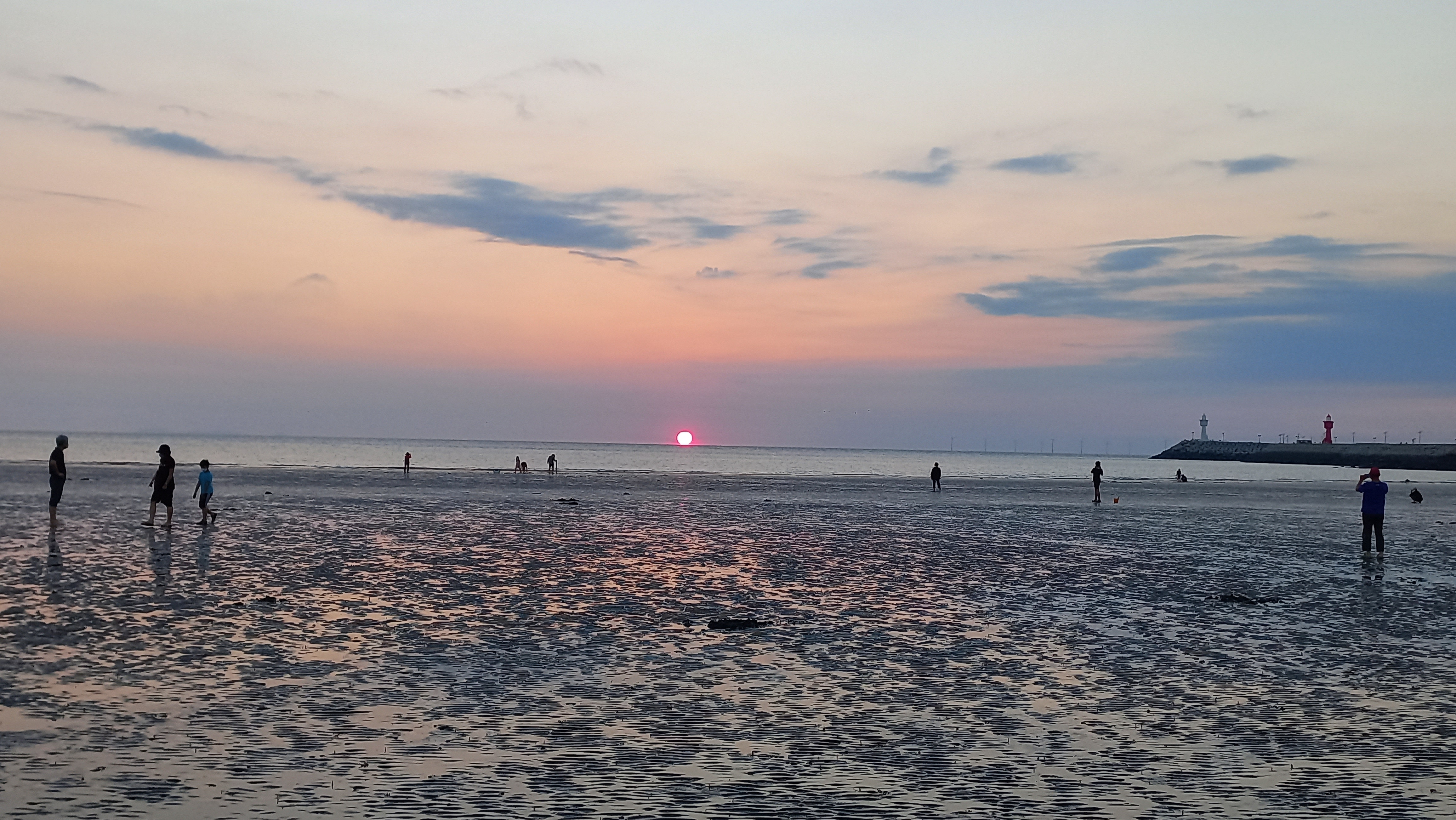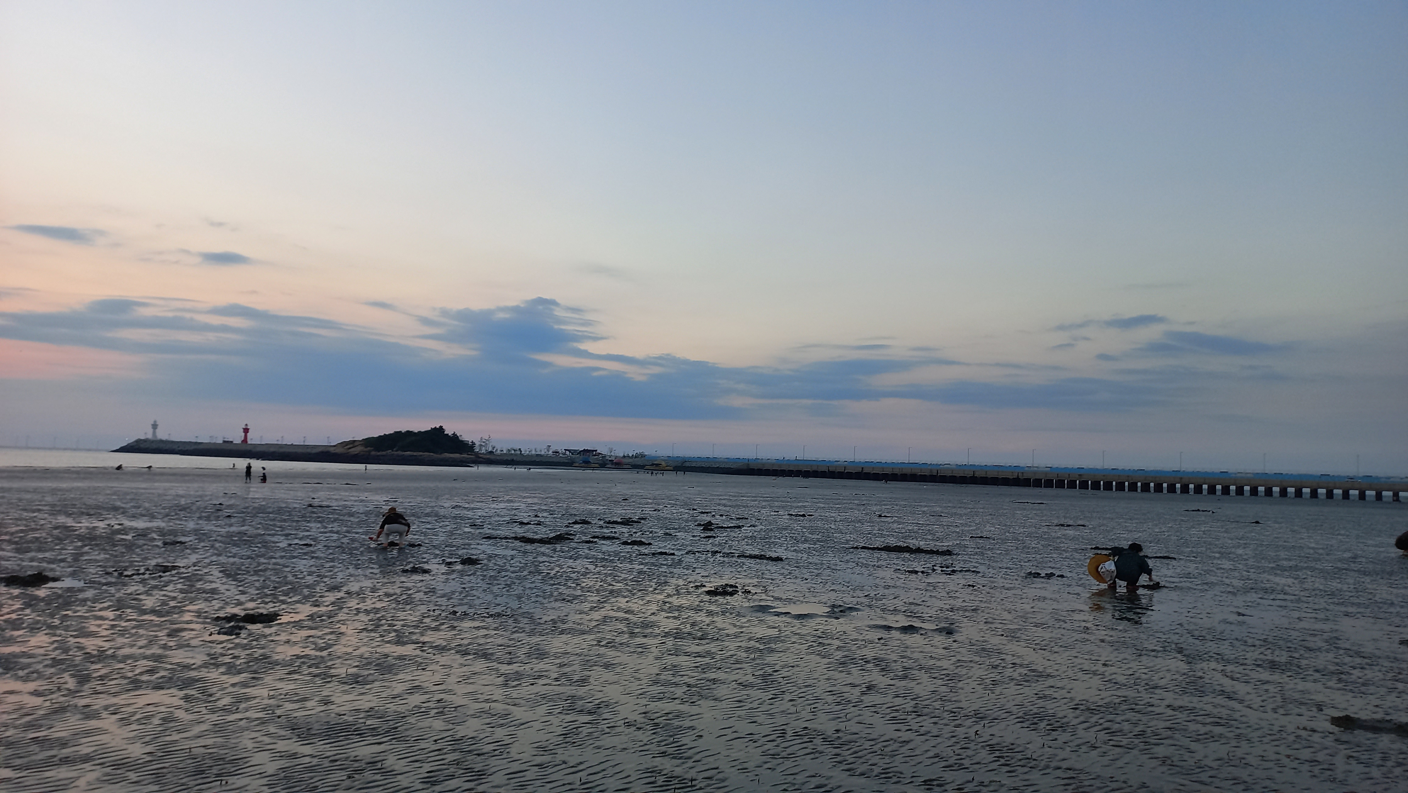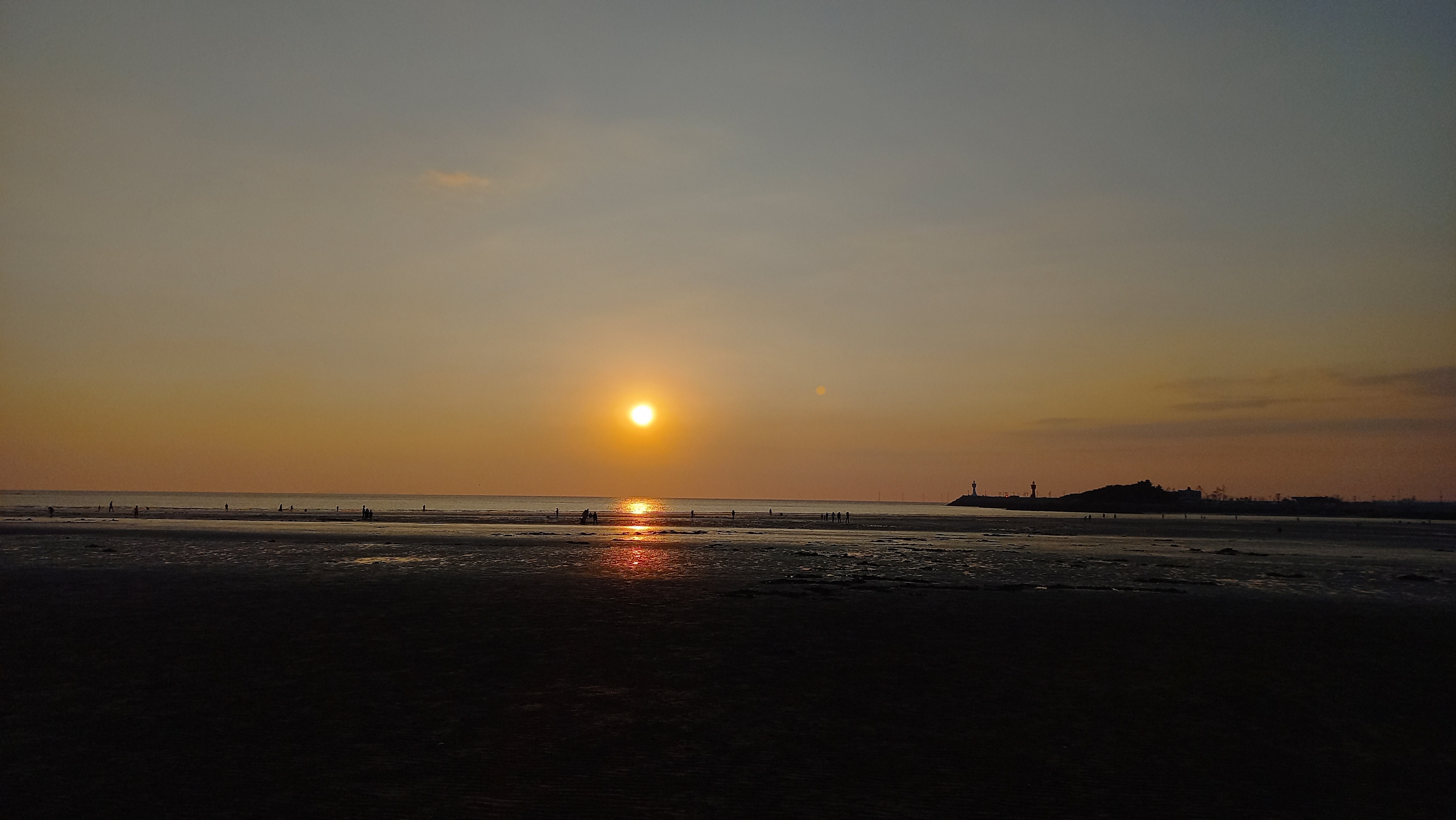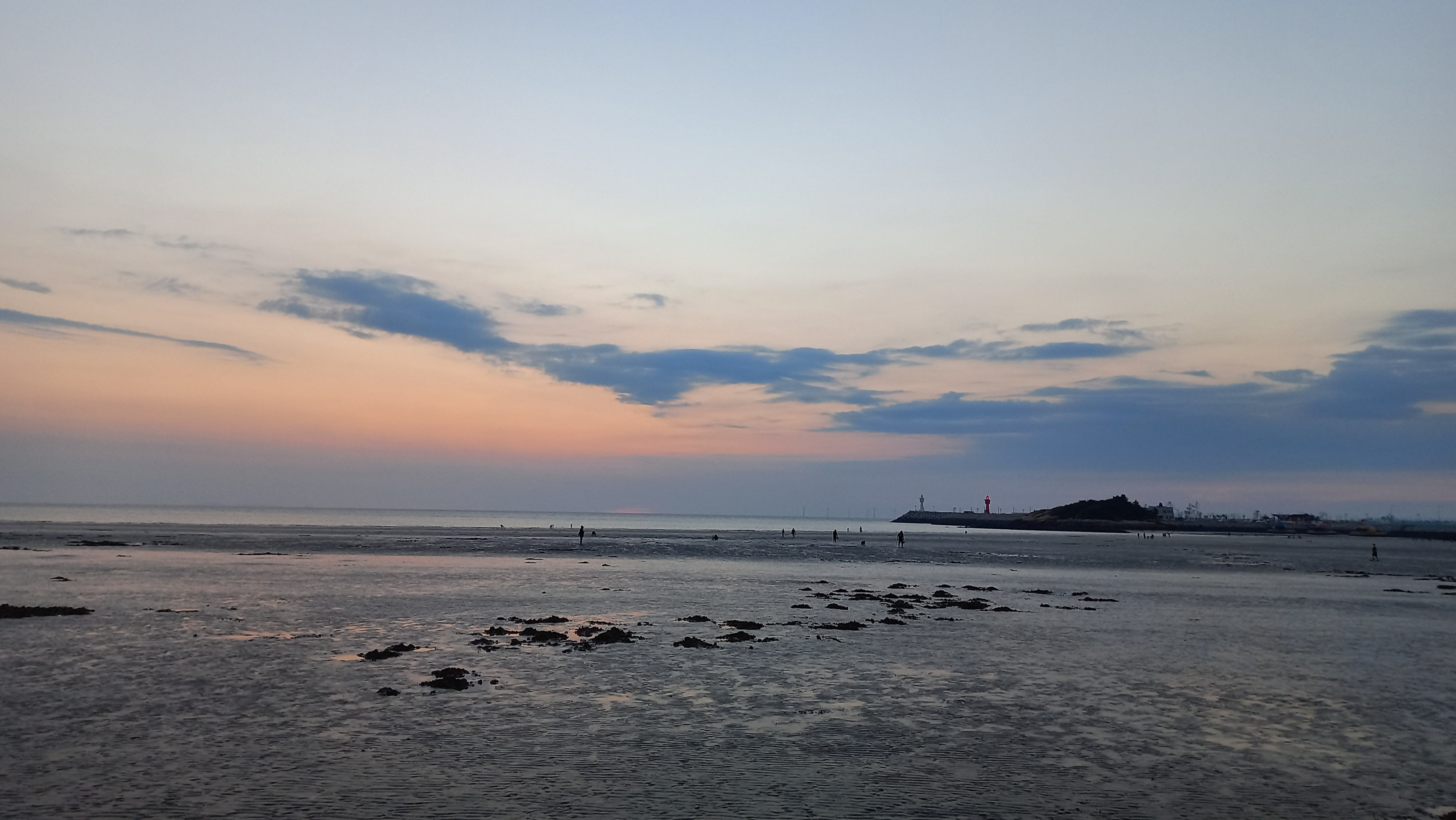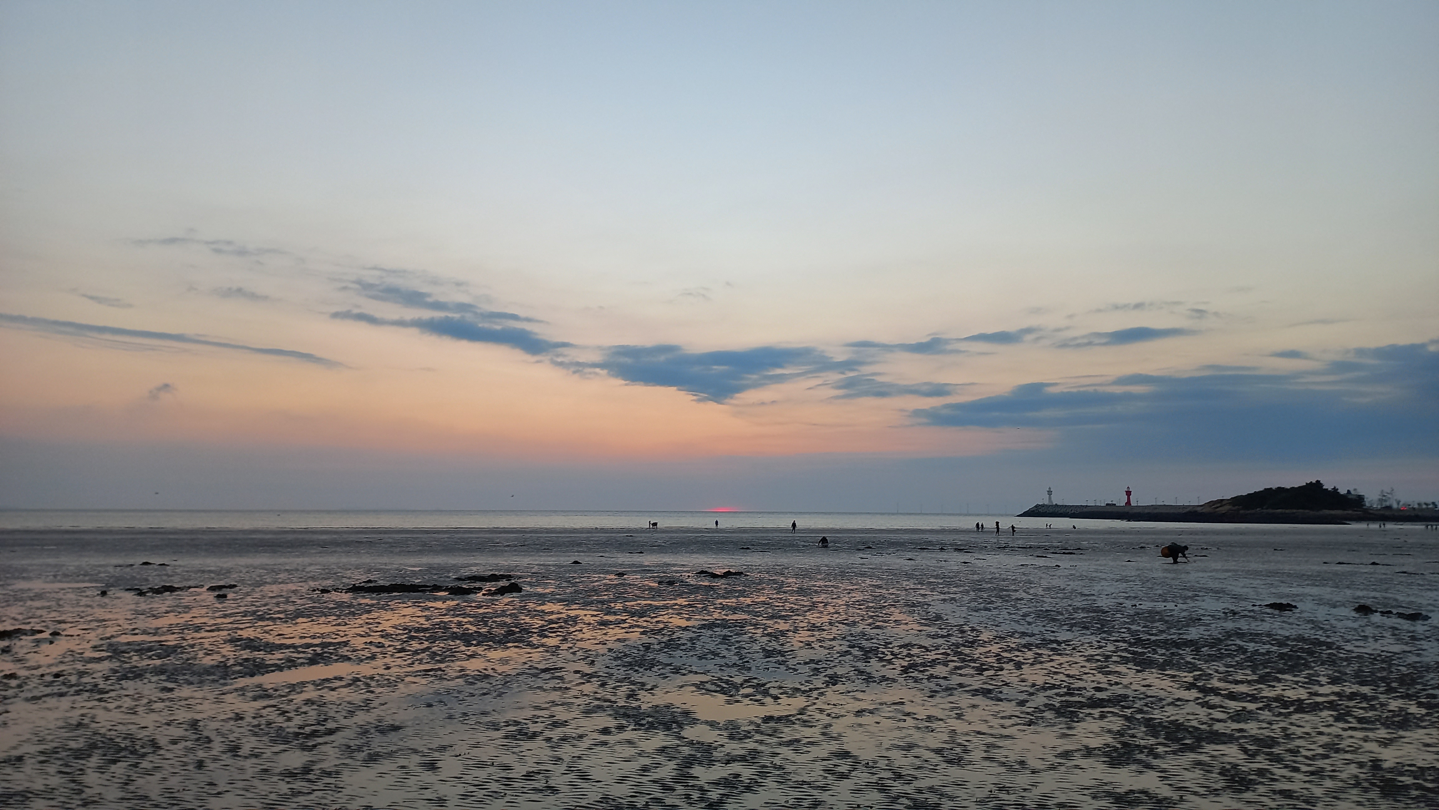 물이 빠진 갯벌을 걸어 들어가며 찍었네요.