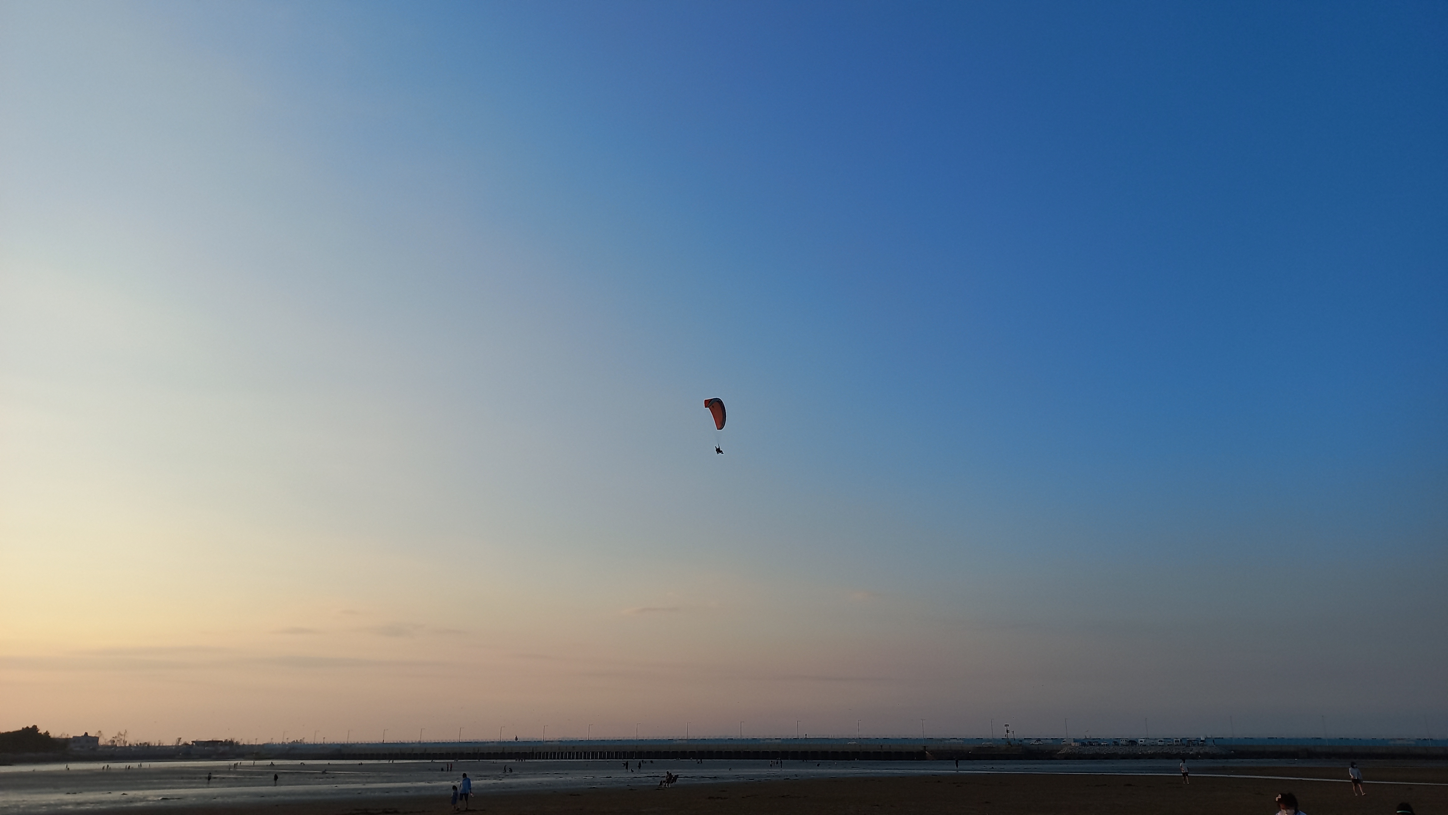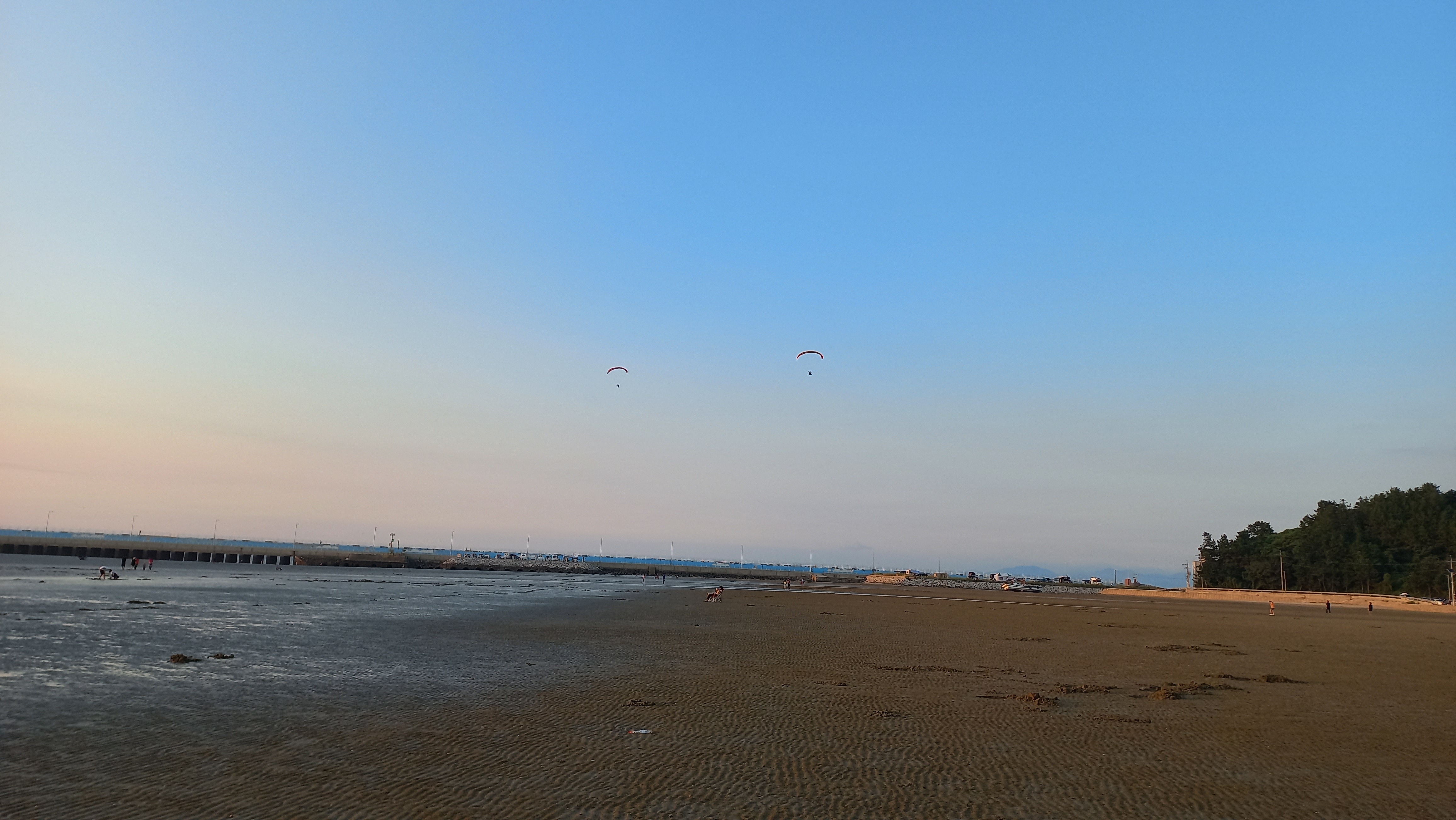 구시포 해수욕장 해변 위로 날아오르는 패러글라이딩
